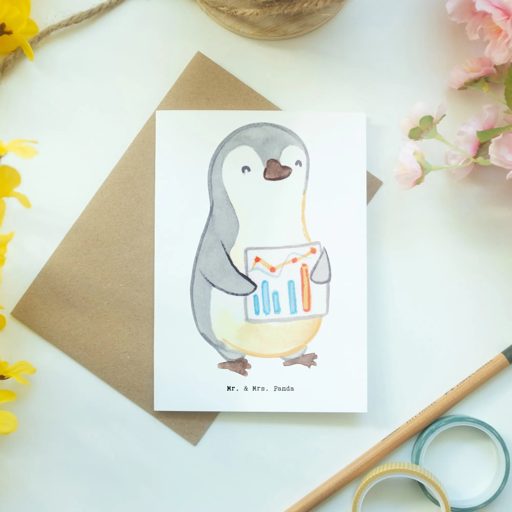 Introducing the perfect greeting card for financial controllers, brought to life by the whimsical artistry of Mr. & Mrs. Panda! This beautifully illustrated card features a charming penguin holding a financial chart, capturing the essence of the profession in the most delightful way. Whether you’re celebrating a passing exam, an anniversary, a job start, or simply want to spread some cheer, this card is an exceptional choice.