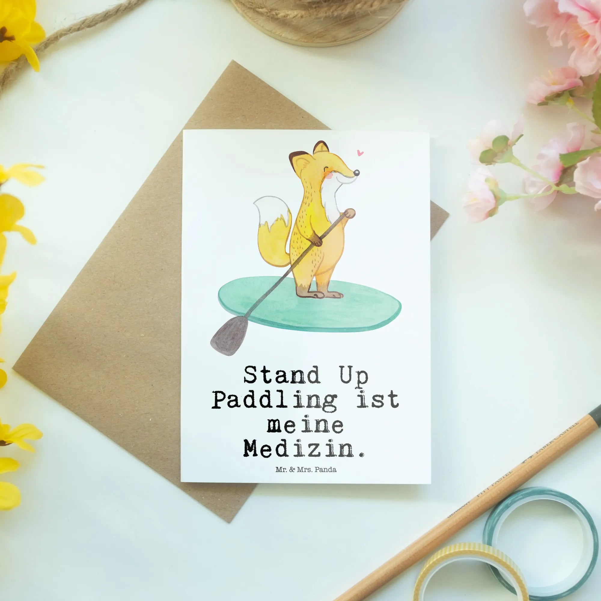 Greetings card Fox Stand up paddling