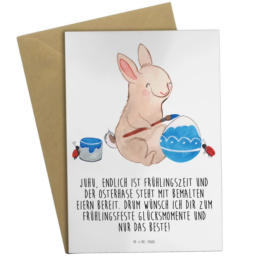Welcome the vibrant joy of spring with this heartwarming motif of our spirited Easter bunny painting lovely eggs, with delightful ladybugs assisting him in their tiny, cheerful ways. This image encapsulates the essence of renewal and togetherness, perfectly summed up in the saying, 'Juhu, endlich ist Frühlingszeit und der Osterhase steht mit bemalten Eiern bereit. Drum wünsch ich dir zum Frühlingsfeste Glücksmomente und nur das Beste!' Embrace the joy that Easter brings as we gather for fun picnics, share laughter, and indulge in the favorite tradition of egg painting. From colorful eggs to the cheerful buzz of ladybugs, this motif inspires us to celebrate the precious moments in life, reminding us to cherish each tick of the clock spent with our loved ones. Dive into the spirit of spring and let it guide you toward happiness and connection every day.