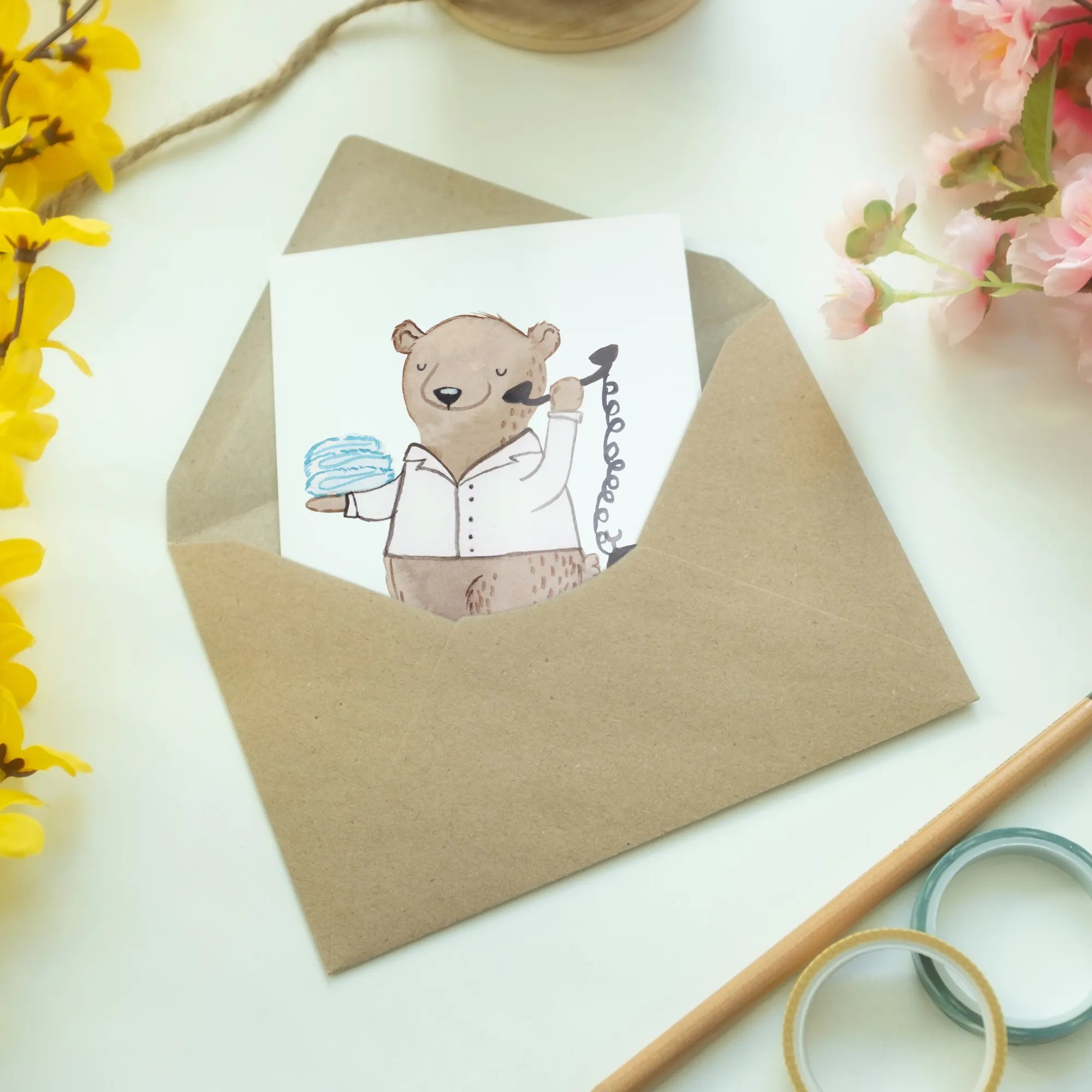 Adorned with a charming illustration of a bear dressed as a hotel employee, this card captures the essence of the hospitality profession. The bear is shown juggling a telephone in one hand and fresh towels in the other, humorously embodying the essence of a busy hotel worker! Inside, you’ll find a blank space just waiting for your personal message, allowing you to express your heartfelt wishes, be it for a birthday, a promotion, a retirement, or simply to say "thank you" for their hard work.