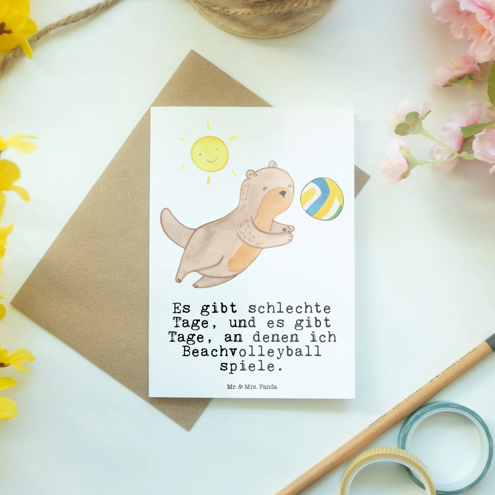 Greetings card otter beach volleyball