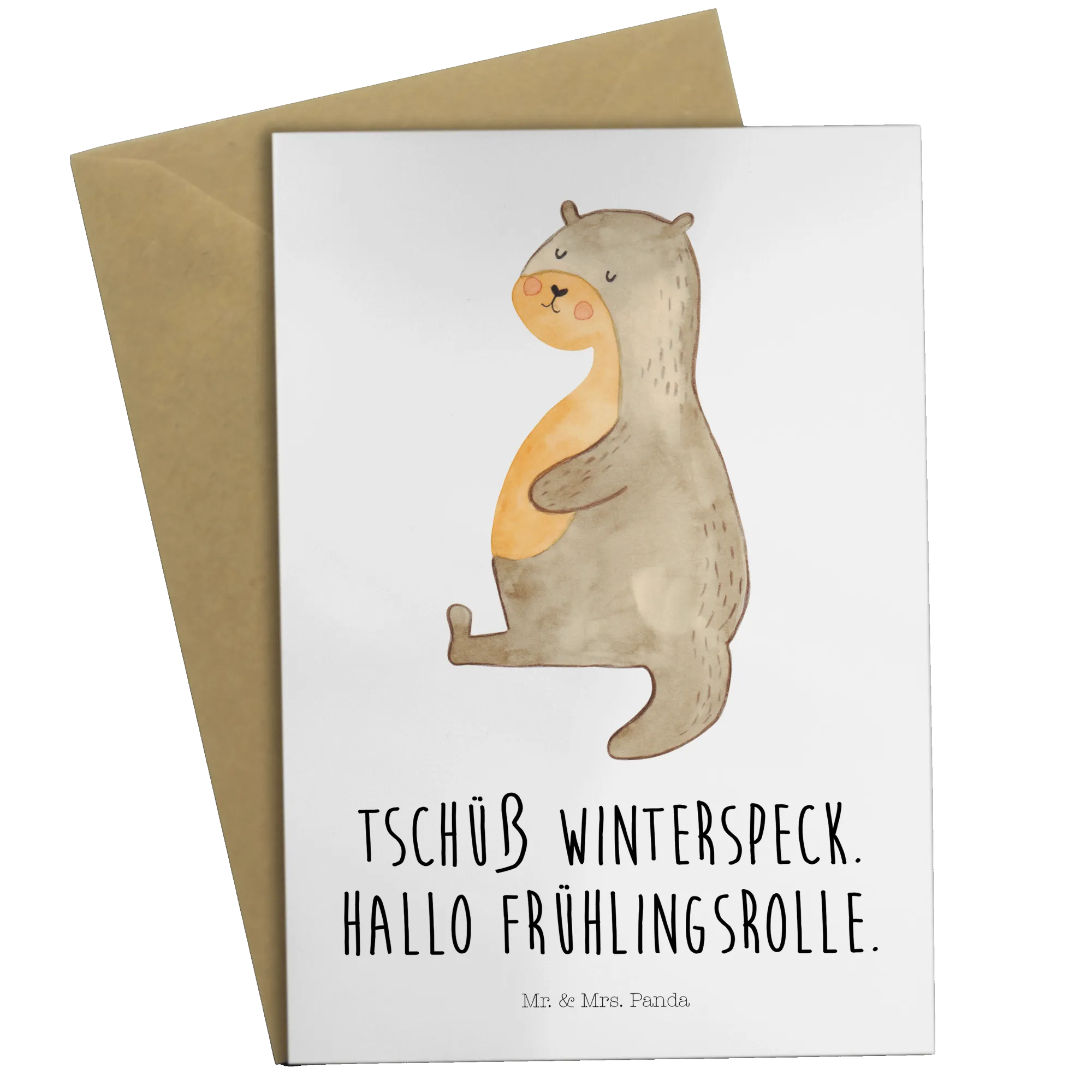 Looking for the perfect greeting card that radiates love and cuteness? Meet our delightful "Otter Belly" greeting card from the marvelous Otter - Collection by Mr. & Mrs. Panda! This unique card features an irresistible design of a chubby otter lounging in absolute bliss, lovingly hand-drawn by Mrs. Panda herself. It's an absolute go-to for those who adore aquatic animals and especially for otter lovers!