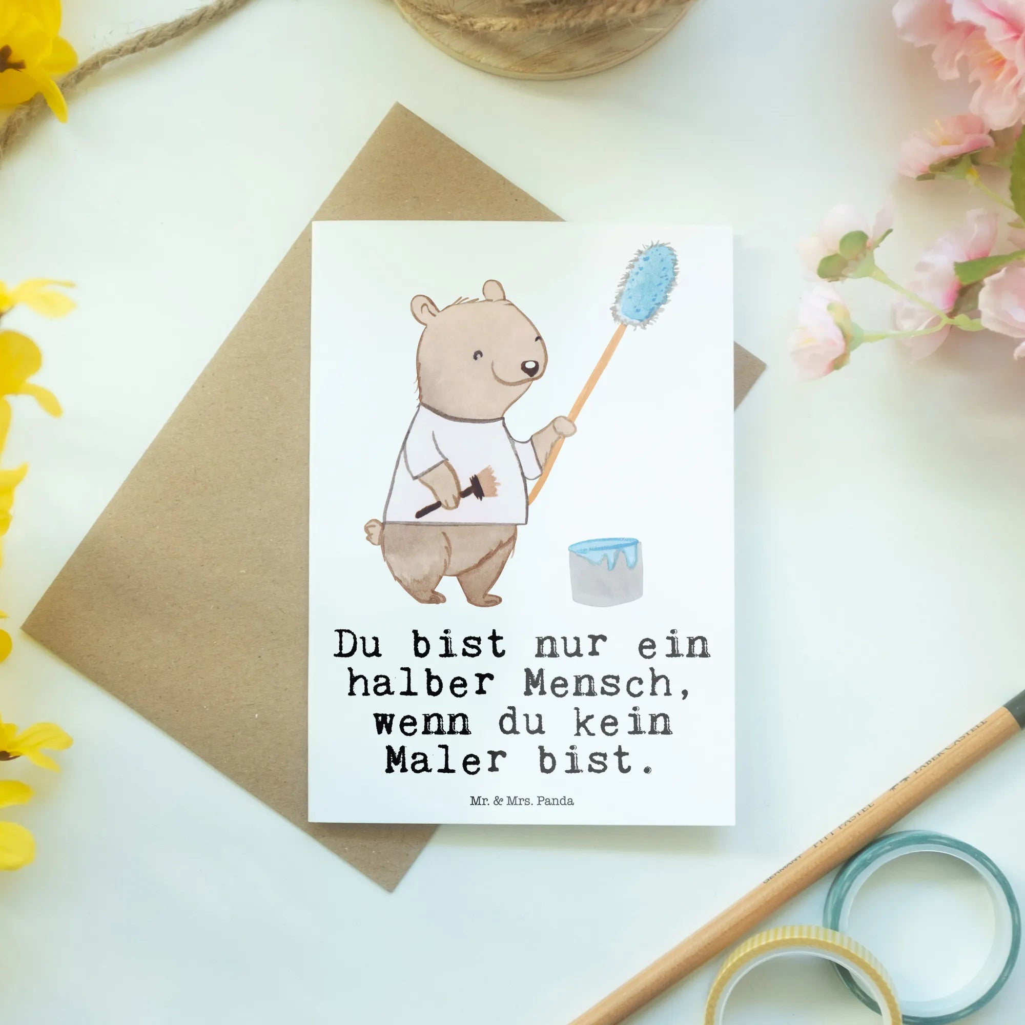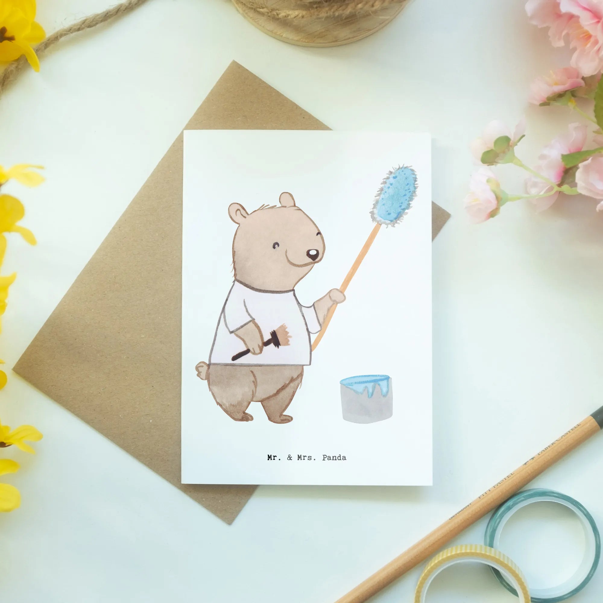 Introducing the delightful Greetings Card featuring a charming painter motif from the unique Professions collection by Mr. & Mrs. Panda! This beautifully designed greeting card is the perfect gift for anyone in the painting profession, including painters, painting masters (Malermeister), and those celebrating milestones such as passing their journeyman's (Gesellenprüfung) or master’s exams (Meisterprüfung).