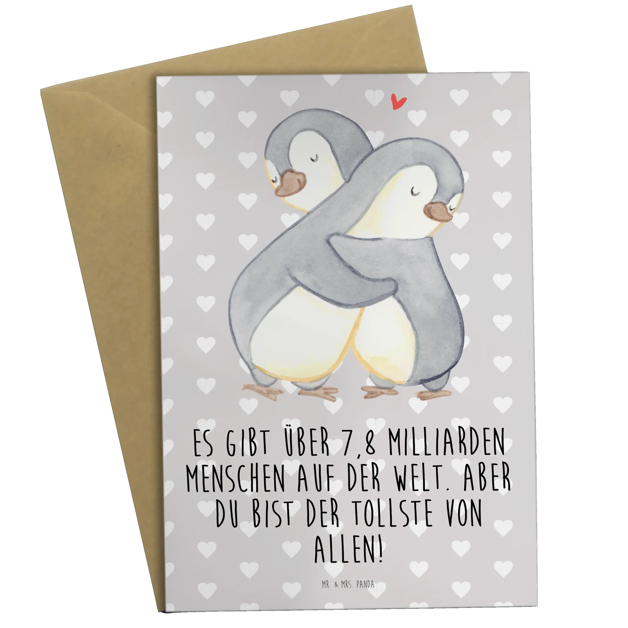 Greetings card penguins Cuddle - Grey Pastel