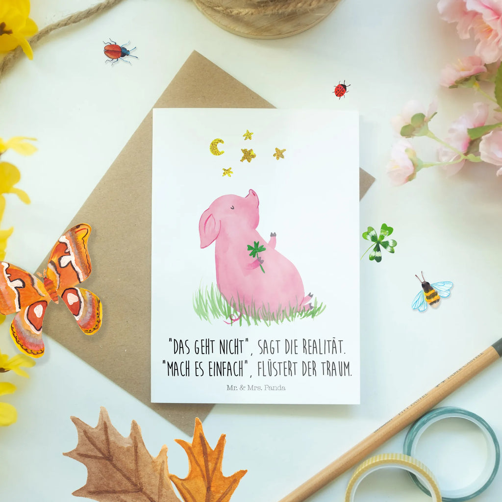 But that’s not all! The Lucky Pig card isn’t just an ordinary card; it also carries a whimsical message that reads: “Reality says: ‘That’s impossible!’ But my dreams tell me: ‘Just go for it!’” This playful quote is a reminder to embrace dreams and chase after your goals, making it a fantastic gift for those in need of a bit of motivation.