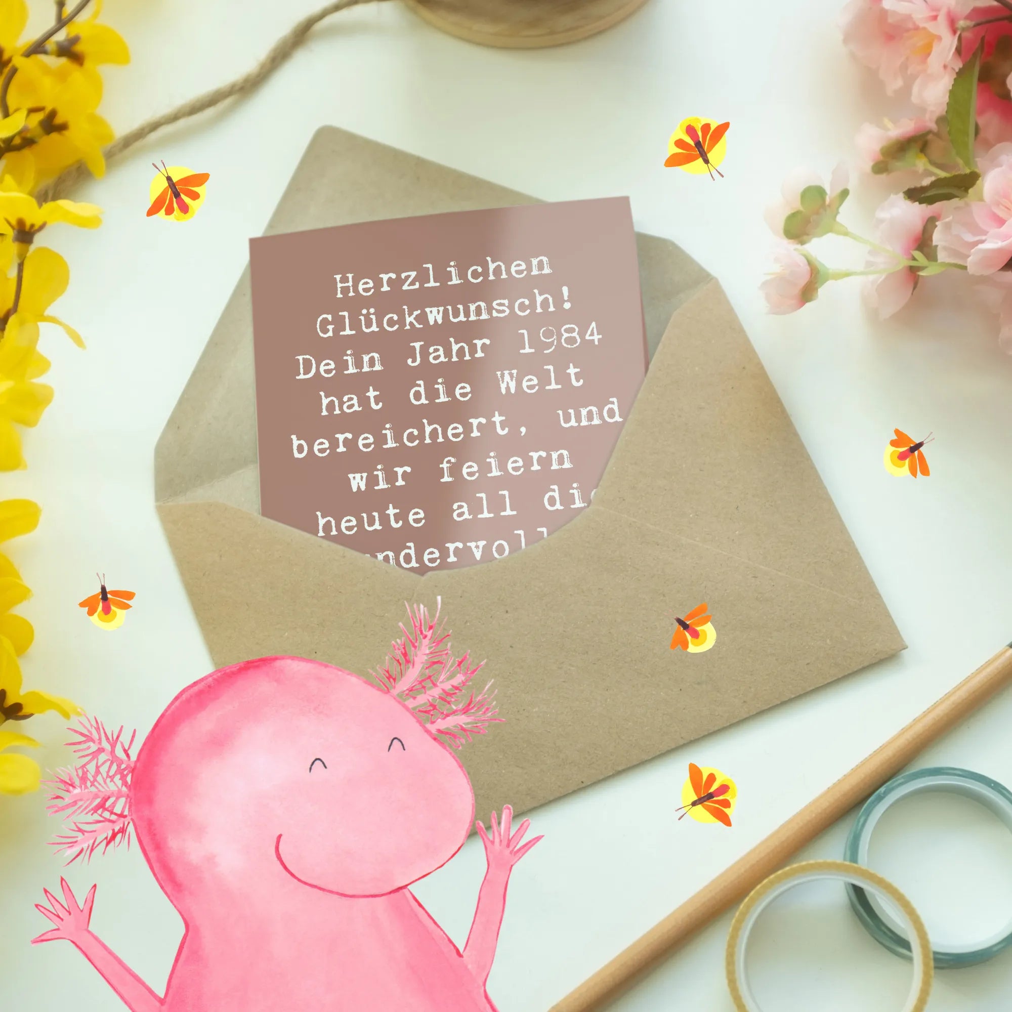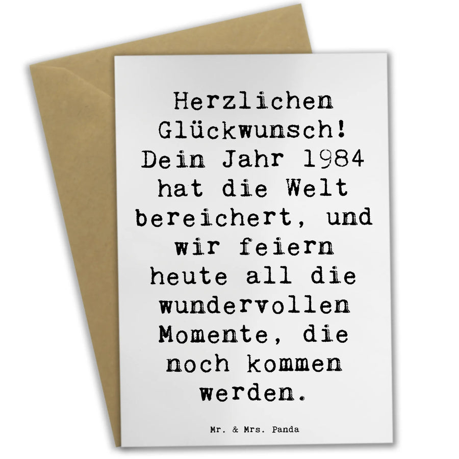 Greetings card Saying Herzlichen Glückwunsch! Dein Jahr 1984 hat die Welt bereichert, und wir feiern heute all die wundervollen Momente, die noch kommen werden. - White