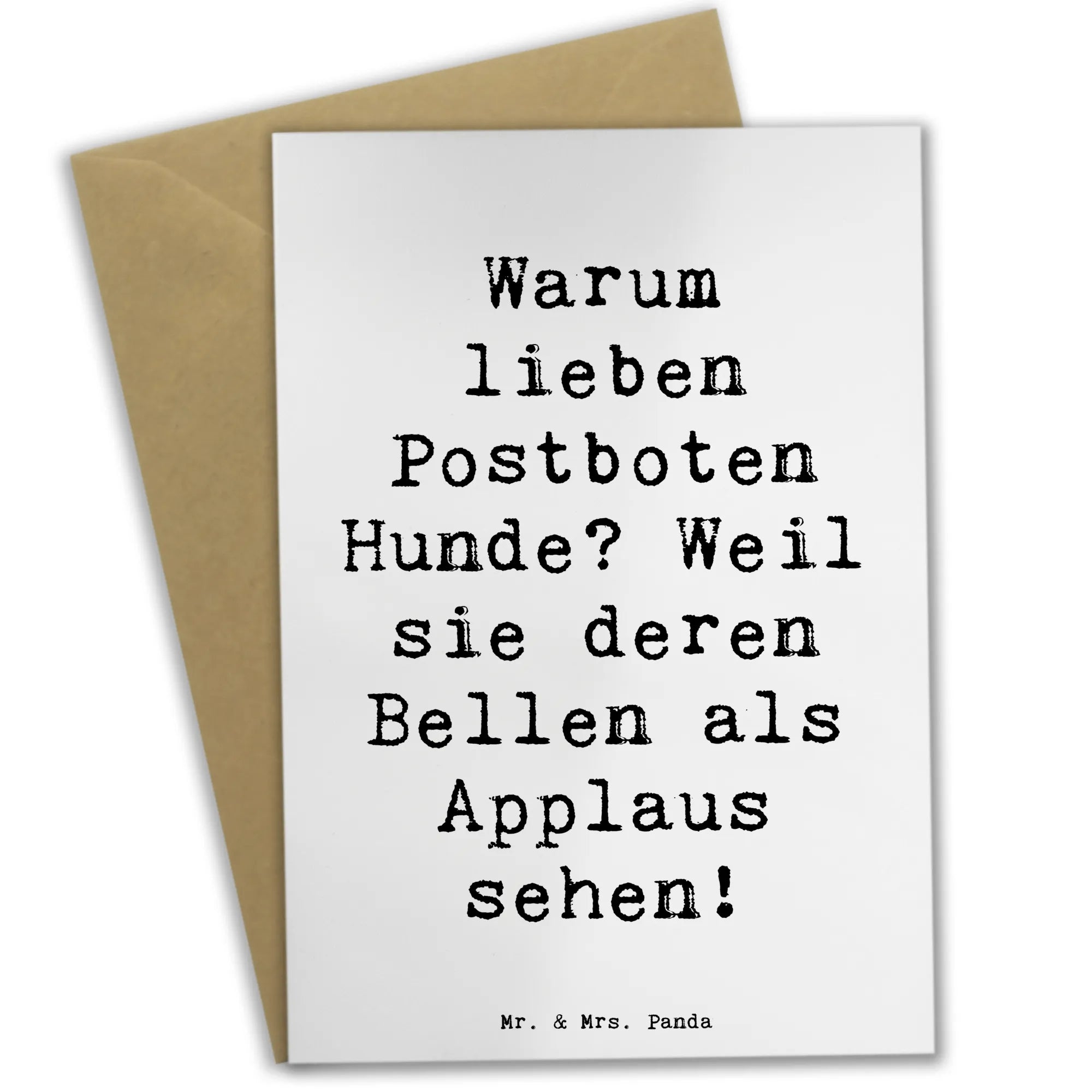 Greetings card Saying Warum lieben Postboten Hunde? Weil sie deren Bellen als Applaus sehen! - White