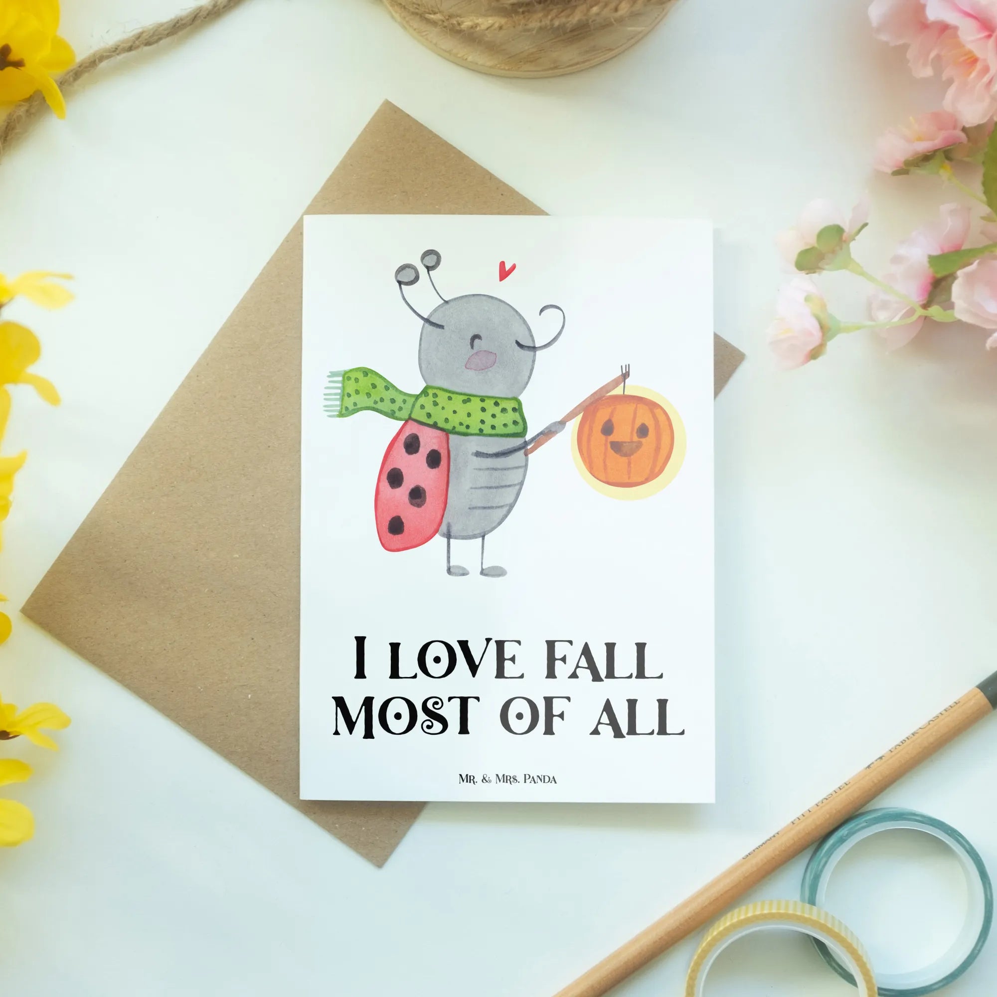 Introducing our delightful Smörle Lantern, encapsulating the essence of autumn! This charming motif features a ladybug in a chic green scarf, joyfully holding an orange lantern that mirrors the spirit of Halloween cheer. Floating above is a sweet little heart, radiating warmth and affection that autumn days bring. Our delightful saying, 'I love fall most of all', perfectly sums up the magic of the season, encouraging you to enjoy the colorful surroundings and cozy moments spent with family and friends. It’s a gentle nudge to savor the sweetness of fall and let it fill your heart with joy and love.