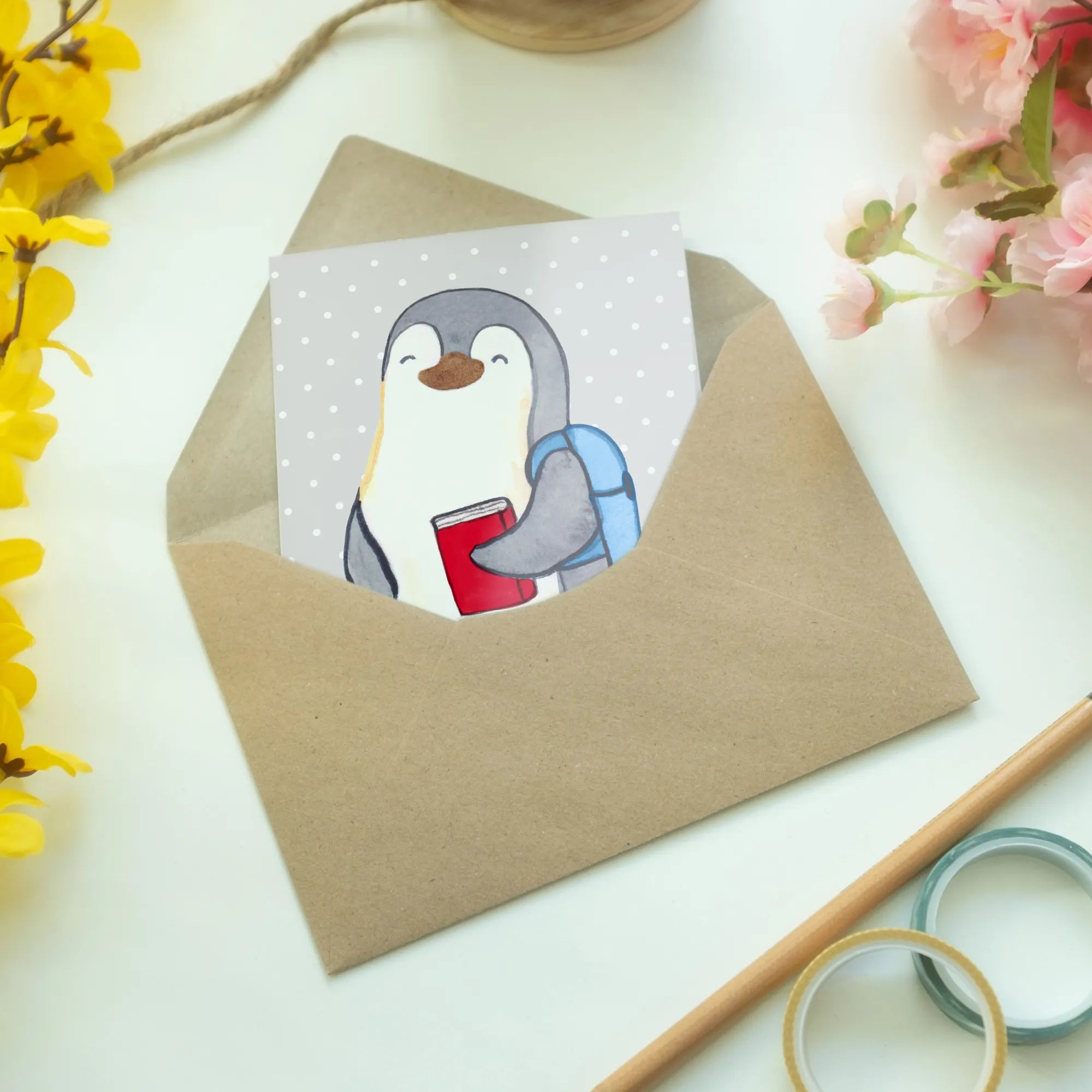 Looking for the perfect way to celebrate a student in your life? Our charming Greetings Card from the collection Professions by Mr. & Mrs. Panda is just what you need! With its delightful motif of a cute penguin donned with a backpack on its way to university, this card is ideal for occasions like graduations, exam pass celebrations, or simply to say "Well done!" to your favorite student.