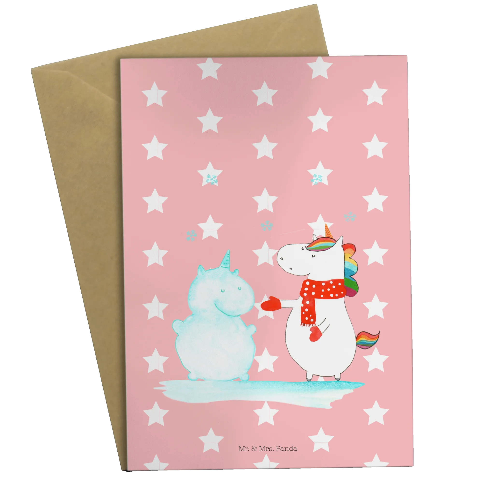 Greetings card unicorn snowman - with a saying - Pastel Red