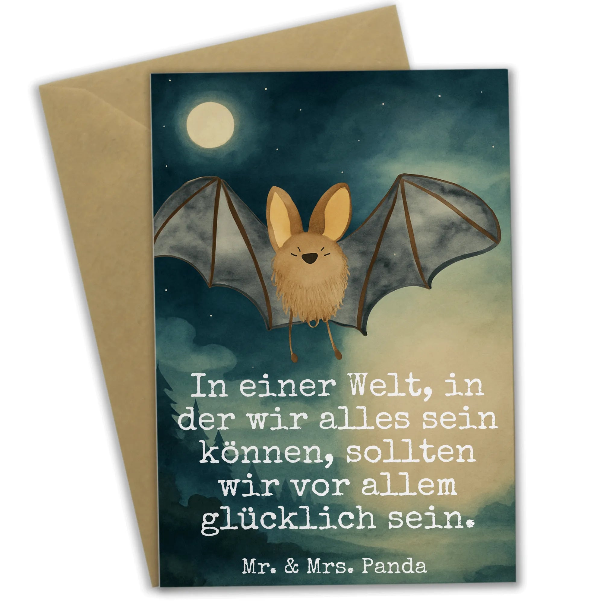 Unsere Grußkarte „Fledermaus Flügel“ aus der liebevollen Small World-Kollektion bringt Nachtzauber und gute Laune zusammen. Mit einem zarten Aquarell von Mrs. Panda zeigt die Vorderseite eine fröhliche Fledermaus und trägt den inspirierenden Spruch: „In einer Welt, in der wir alles sein können, sollten wir vor allem glücklich sein.“