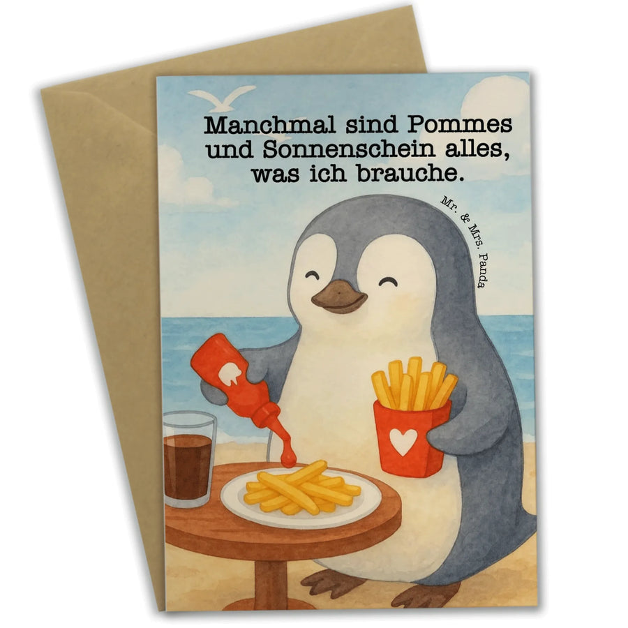 Grußkarte Pinguin Pommes Design - mit Spruch