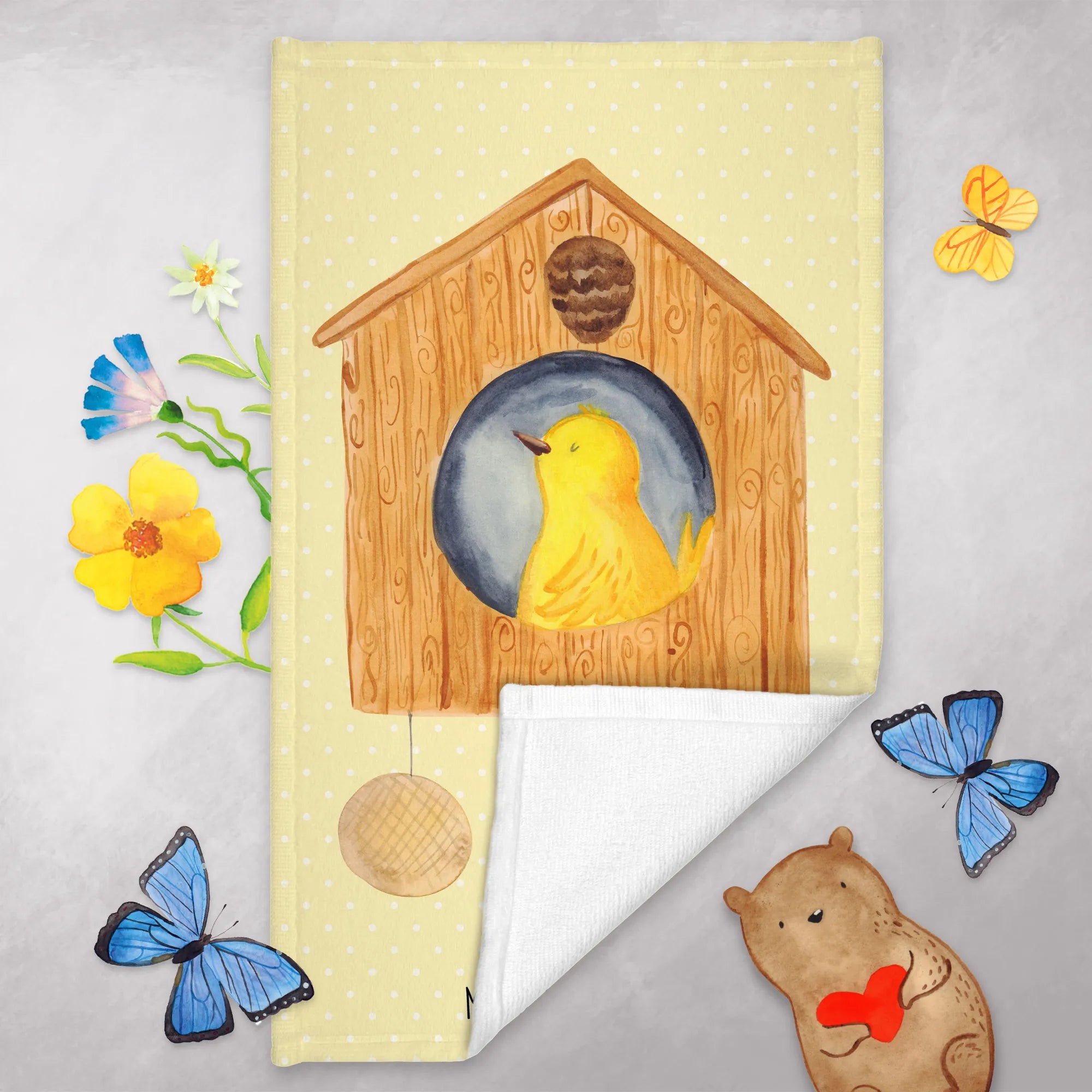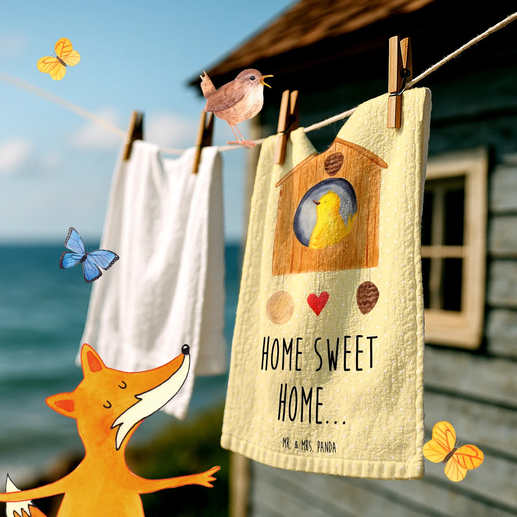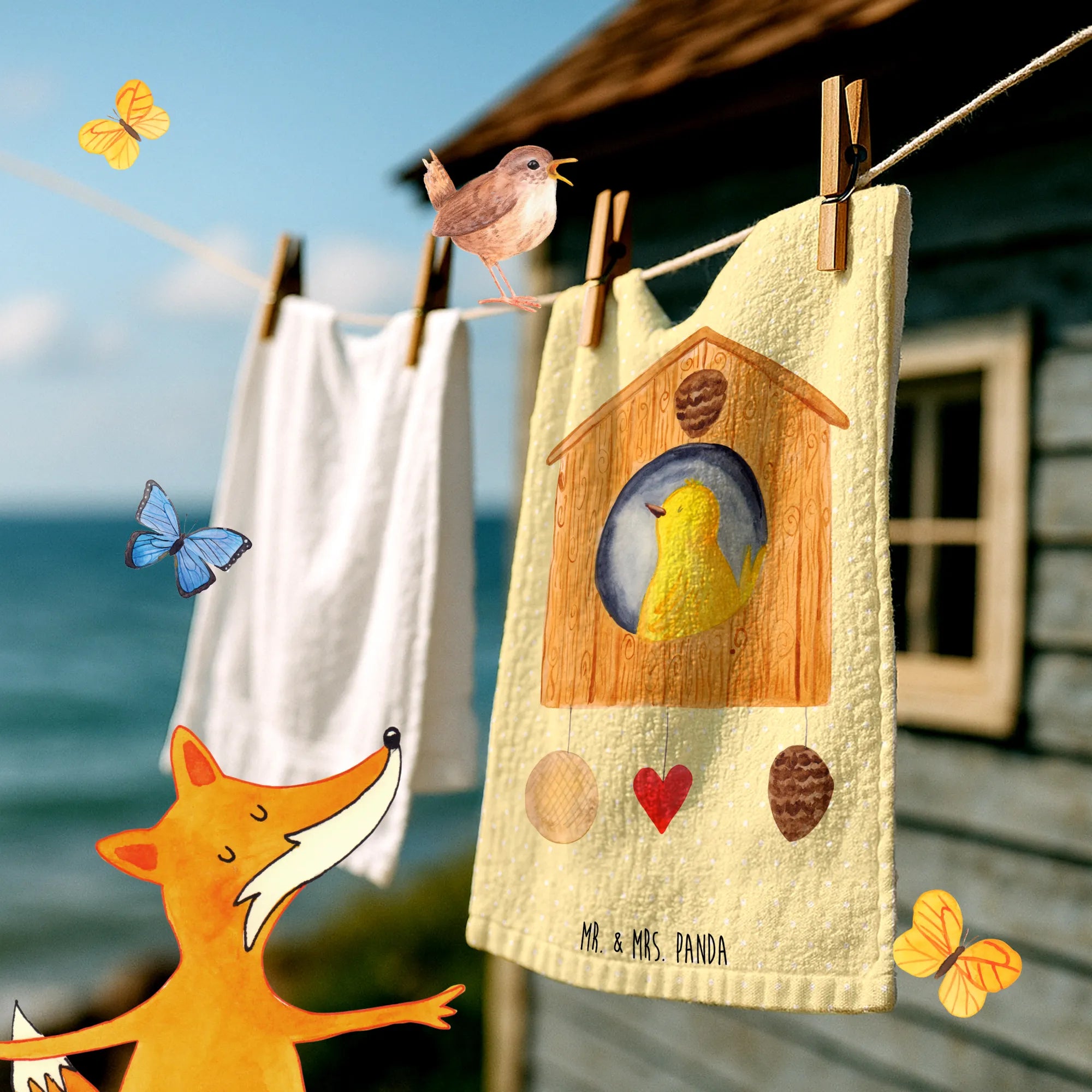 Guest towel birdhouse Home - with saying - Pastel Yellow