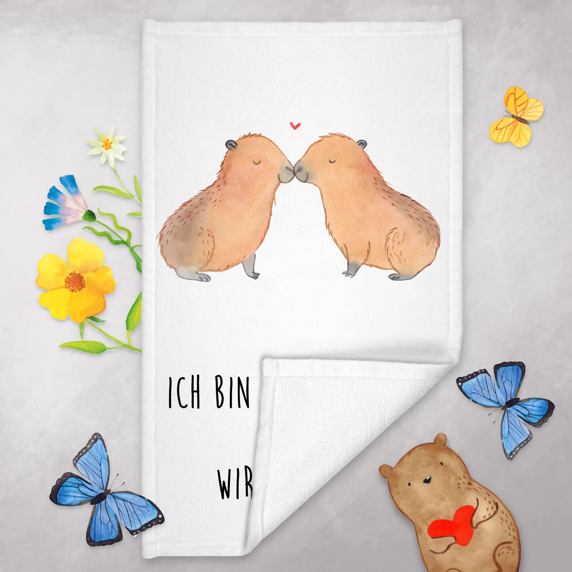 Experience a heartwarming moment captured in our delightful motif where two capybaras lovingly touch noses, forming a perfect heart. Their soft, brown fur, carefully illustrated, reflects all the warmth and affection that love can bring. Just above, a bright red heart floats — a symbol of their enduring love and connection. With the words 'Ich bin deins, du bist meins, wir sind eins,' we are reminded of the beauty found in unity and companionship. This charming scene is an ideal romantic gift for couples, ideal for celebrating anniversaries or even as a sweet gesture on Valentine's Day. Whether you are celebrating your love with someone special or simply appreciating the beauty of animal friendships, this motif is designed to bring smiles and warmth to the heart.