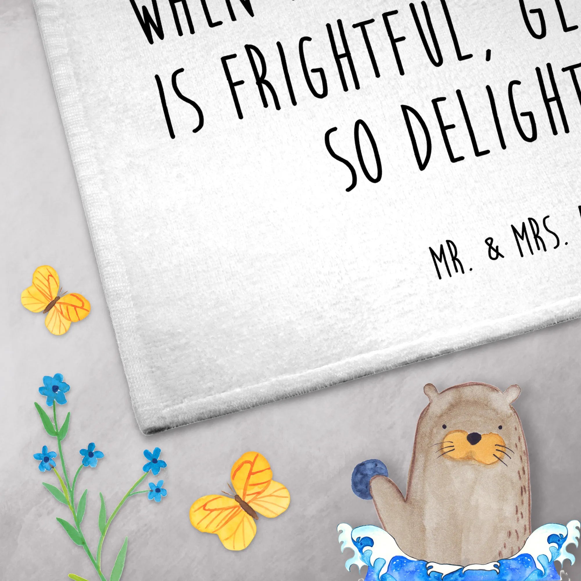 Entdecke unser wunderschönes Gästehandtuch von Mr. & Mrs. Panda! Mit einer Größe von 300 mm x 500 mm ist dieses flauschige Frotteehandtuch ein wahres Highlight für dein Badezimmer. Hochwertig bedruckt mit süßen Motiven und Sprüchen bringt es Farbe und Freude in jede Gästetoilette. Die spezielle Baumwollmischung sorgt dafür, dass das Handtuch extra weich und angenehm auf der Haut ist. Mit einem Gewicht von nur 60 g ist es leicht und doch sehr saugfähig. Das Gästehandtuch ist perfekt für deinen Besuch und wartet nur darauf, in einem stilvollen Badezimmer verwendet zu werden. Es ist allseitig umsäumt und besitzt eine doppelte Naht, was die Langlebigkeit und Qualität unterstreicht. Pflegeleicht kannst du es bei bis zu 30°C in der Waschmaschine waschen und im Trockner bei niedriger Temperatur trocknen. Bringe ein Stück Wellness in dein Zuhause und erfreue dich an den fröhlichen Designs, die dir und deinen Gästen garantiert ein Lächeln ins Gesicht zaubern werden.