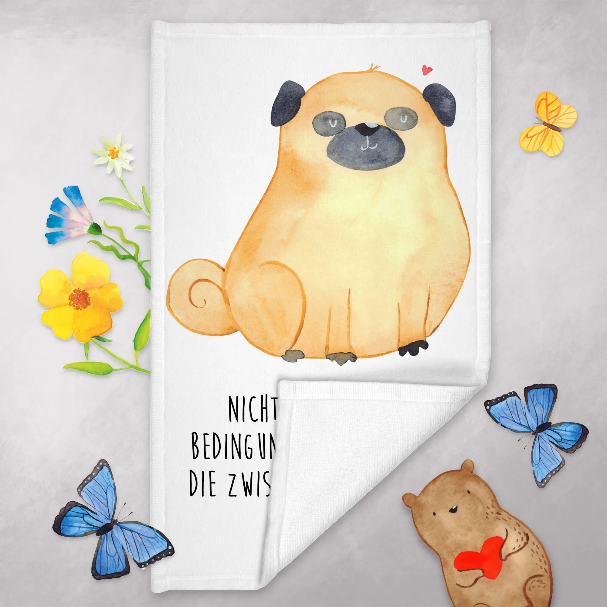 Guest towel Pug - with saying - White