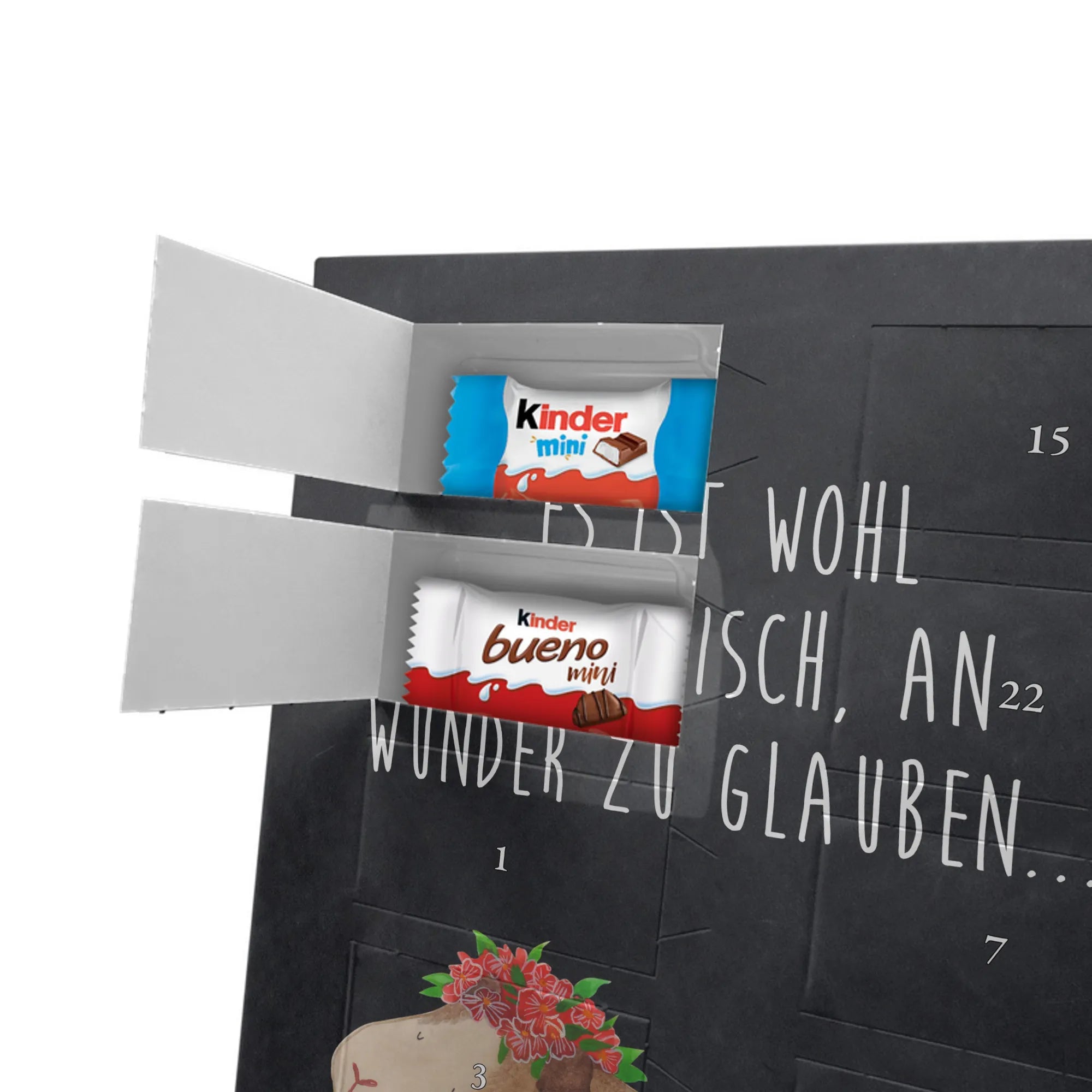 Gefüllt mit kinder® Schokolade: Eine liebevolle Mischung aus kinder® Schoko-Bons, kinder® Bueno mini und kinder® Schokolade mini macht das Öffnen jeden Türchens zu einem Geschmackserlebnis. Perfekt als Adventskalender personalisiert für Familien, Kinder und Naschkatzen.
