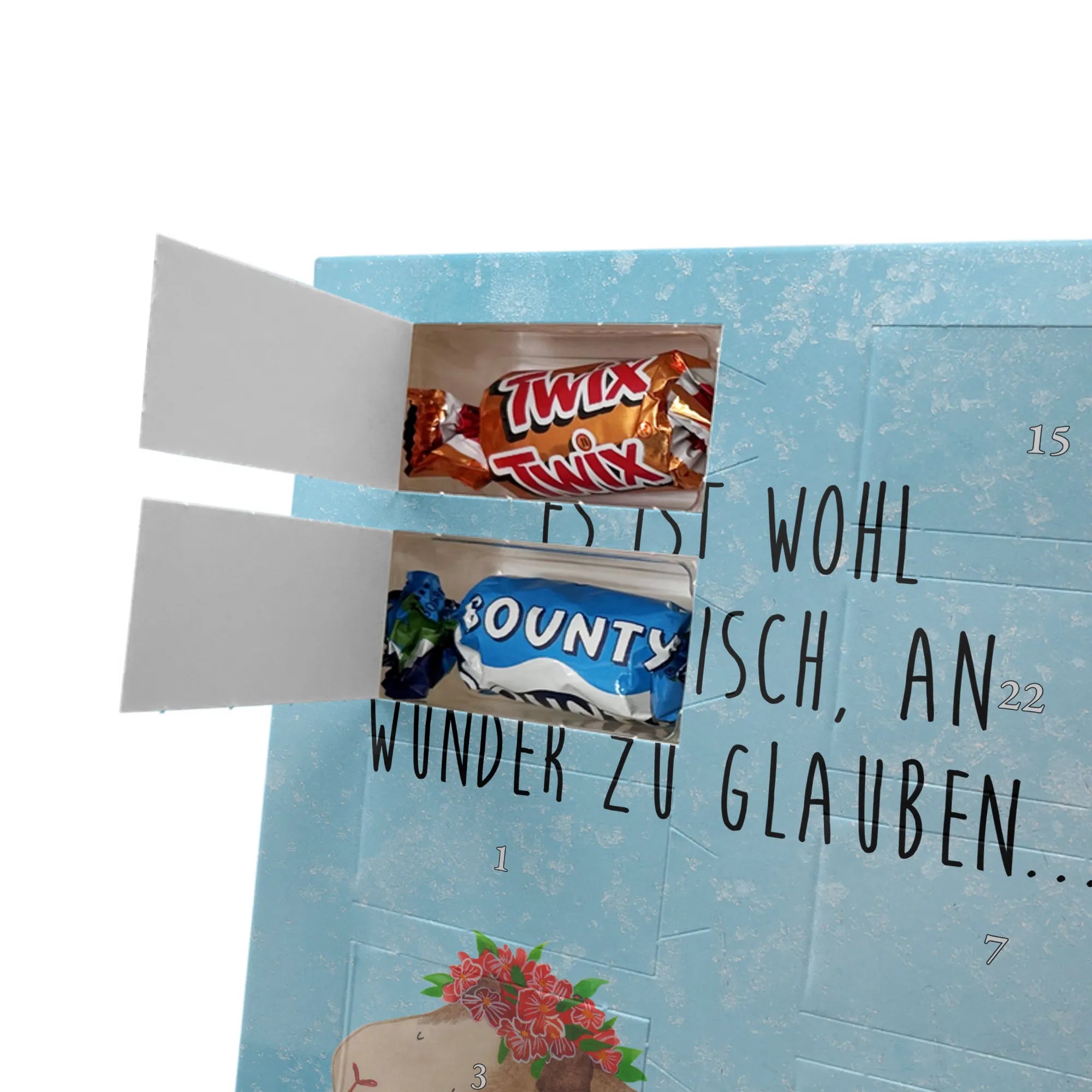 Personalisierter Schoko-Adventskalender mit Foto – das kleine Weihnachtswunder von Mr. & Mrs. Panda! Verschenke jeden Tag Vorfreude: Der Kalender ist liebevoll gestaltet mit unseren herzlichen Illustrationen und Sprüchen, während dein Foto die persönliche Mitte bildet. Bitte lade ein hochauflösendes Foto hoch und prüfe den Bildausschnitt, damit nichts Wichtiges verloren geht. Nutze nur Bilder, für die du die Rechte hast. Die hochwertige, seidenmatte Veredelung und die bedruckten Seitenflächen garantieren ein edles Erscheinungsbild. Maße: 355 mm x 245 mm x 11 mm; lässt sich sowohl aufhängen als auch aufstellen. Achtung: Fotos werden nicht nachbearbeitet oder zugeschnitten; personalisierte Artikel sind vom Rückgaberecht ausgeschlossen. Gefüllt mit 24 einzeln verpackten Schokoladentäfelchen aus den vier Geschmacksrichtungen Vollmilch, Nougat, Zartbitter und Haselnuss – von Sarotti® und Confiserie Heidel®. Insgesamt enthält der Kalender 107 g Markenschokolade. Ein persönliches Geschenk mit süßem Inhalt, ideal für Partner, Familie und Freunde, verpackt mit der typischen Mr. & Mrs. Panda Liebe zum Detail.