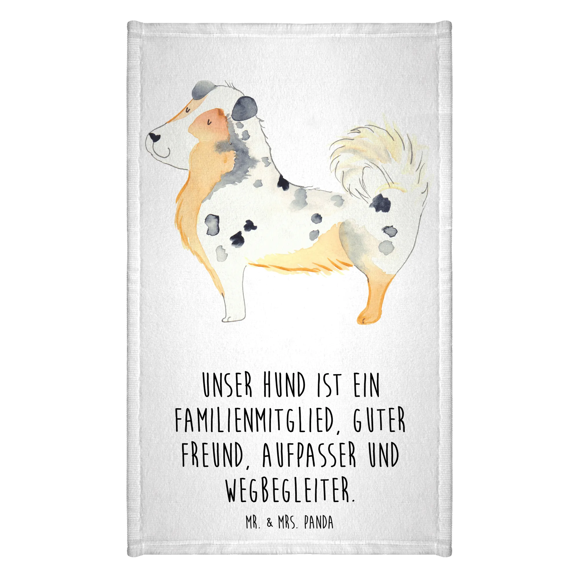 In summary, if you want to express love, joy, and humor with a thoughtful gift for dog lovers, this Australian Shepherd guest towel from Mr. & Mrs. Panda is the way to go. It beautifully ties together the theme of family and the special bond we share with our dogs. Make a dog lover's day special with this lovely and practical gift!