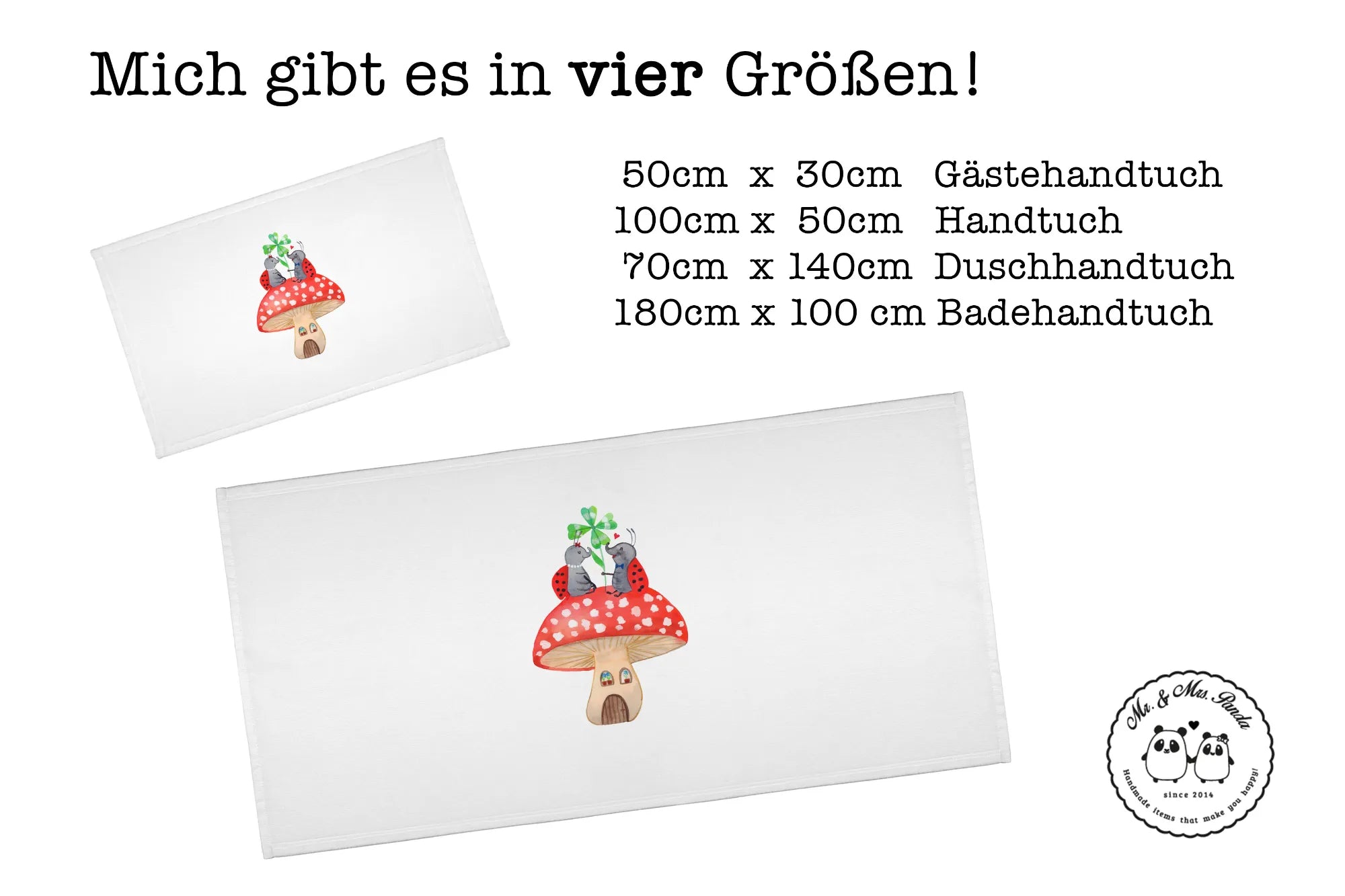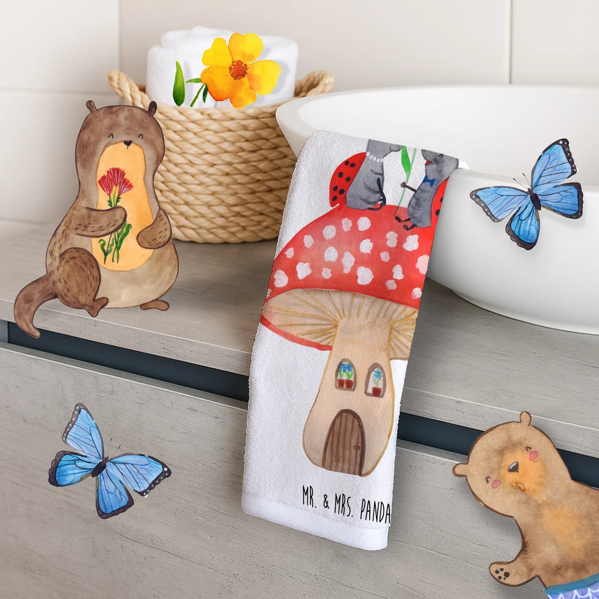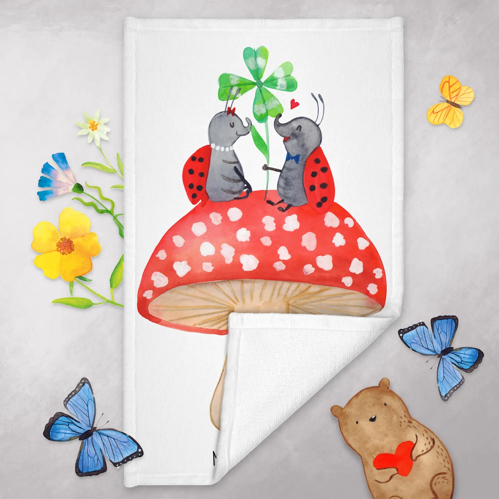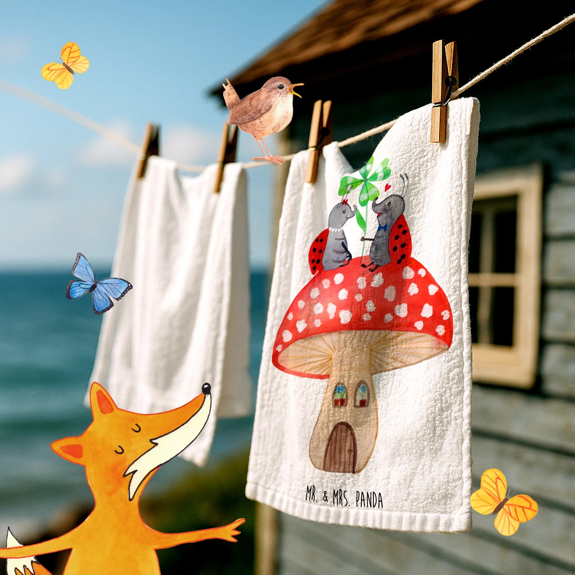 Introducing the delightful Mr. & Mrs. Panda Hand Towel featuring an enchanting motif of a Ladybug couple resting on a mushroom! This towel is not just an essential addition to your bathroom, but also a whimsical piece that can brighten up any home. Crafted from a plush cotton blend, it measures a generous 50 x 100 cm, making it perfect for everyday use or as a charming bathroom accessory.