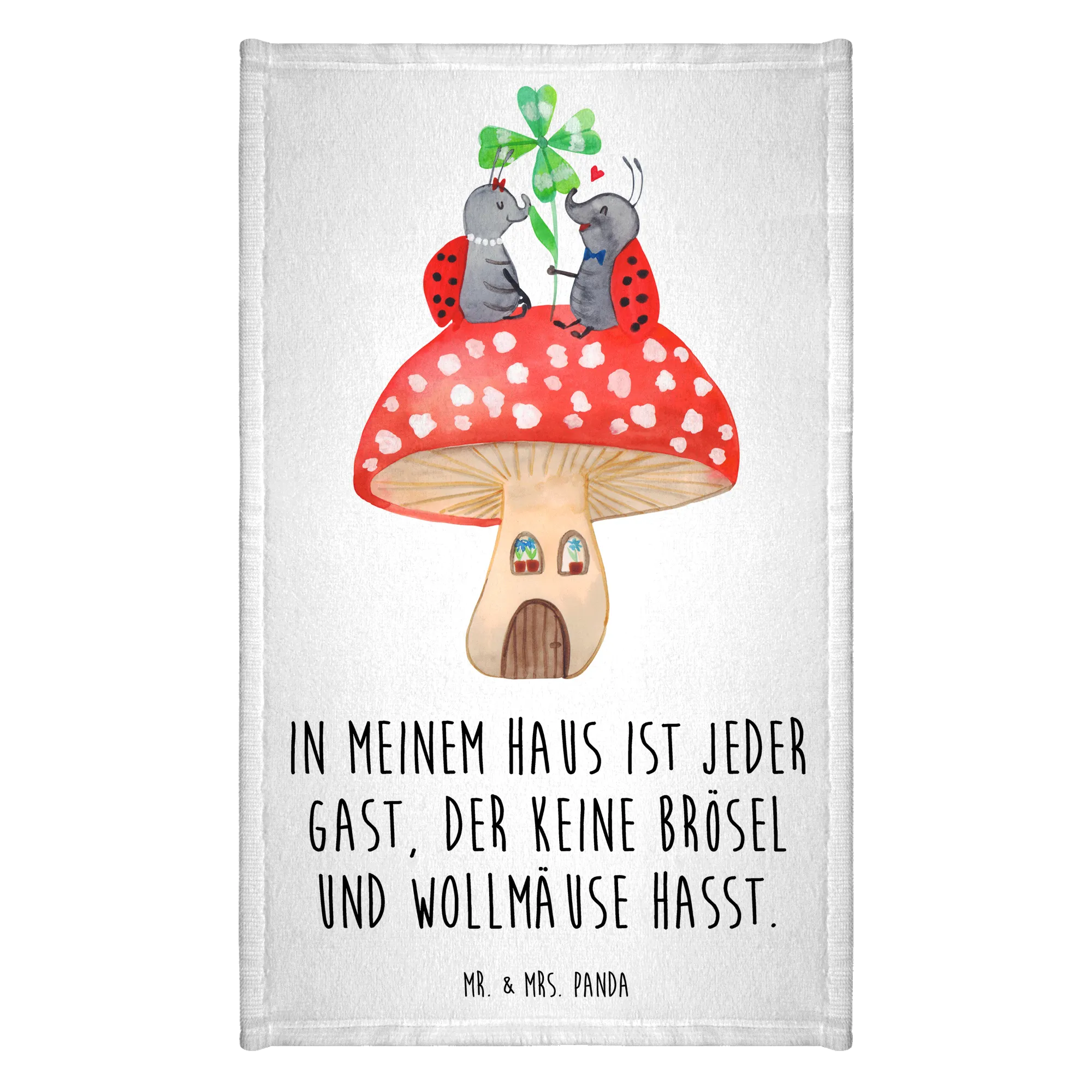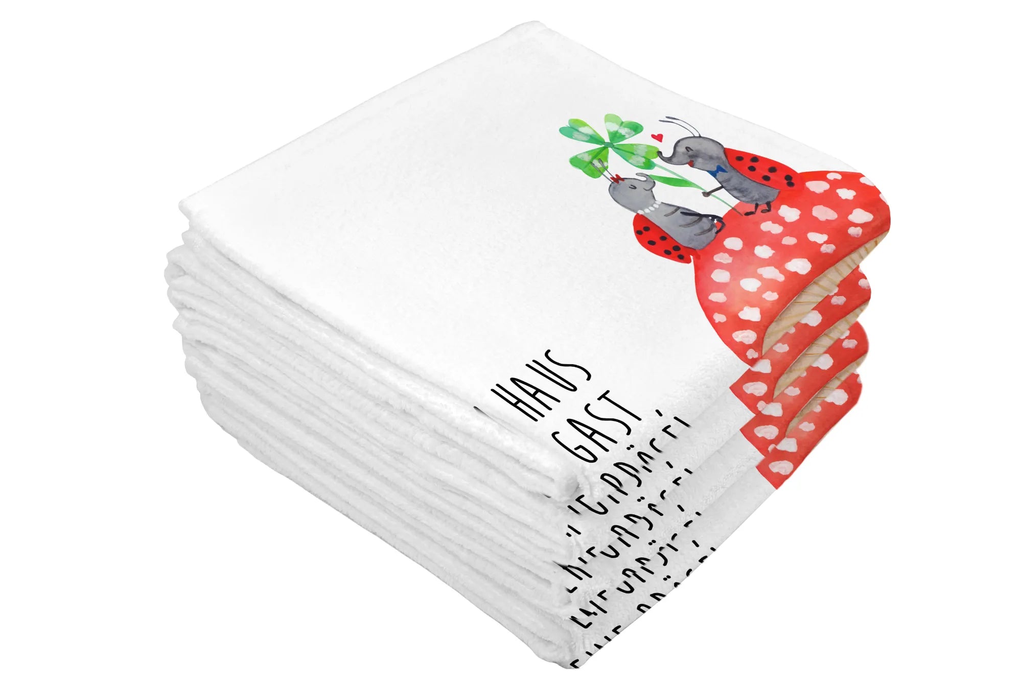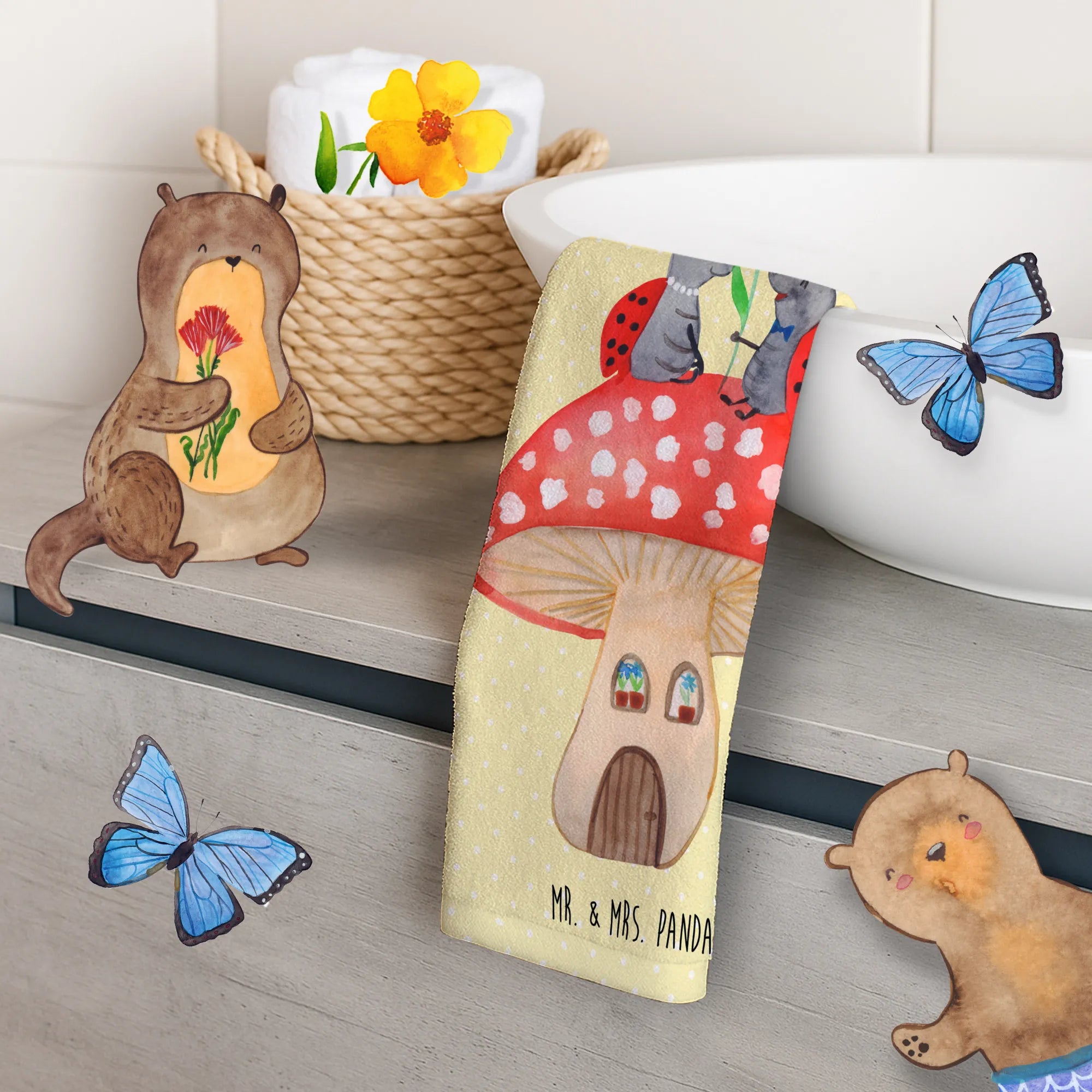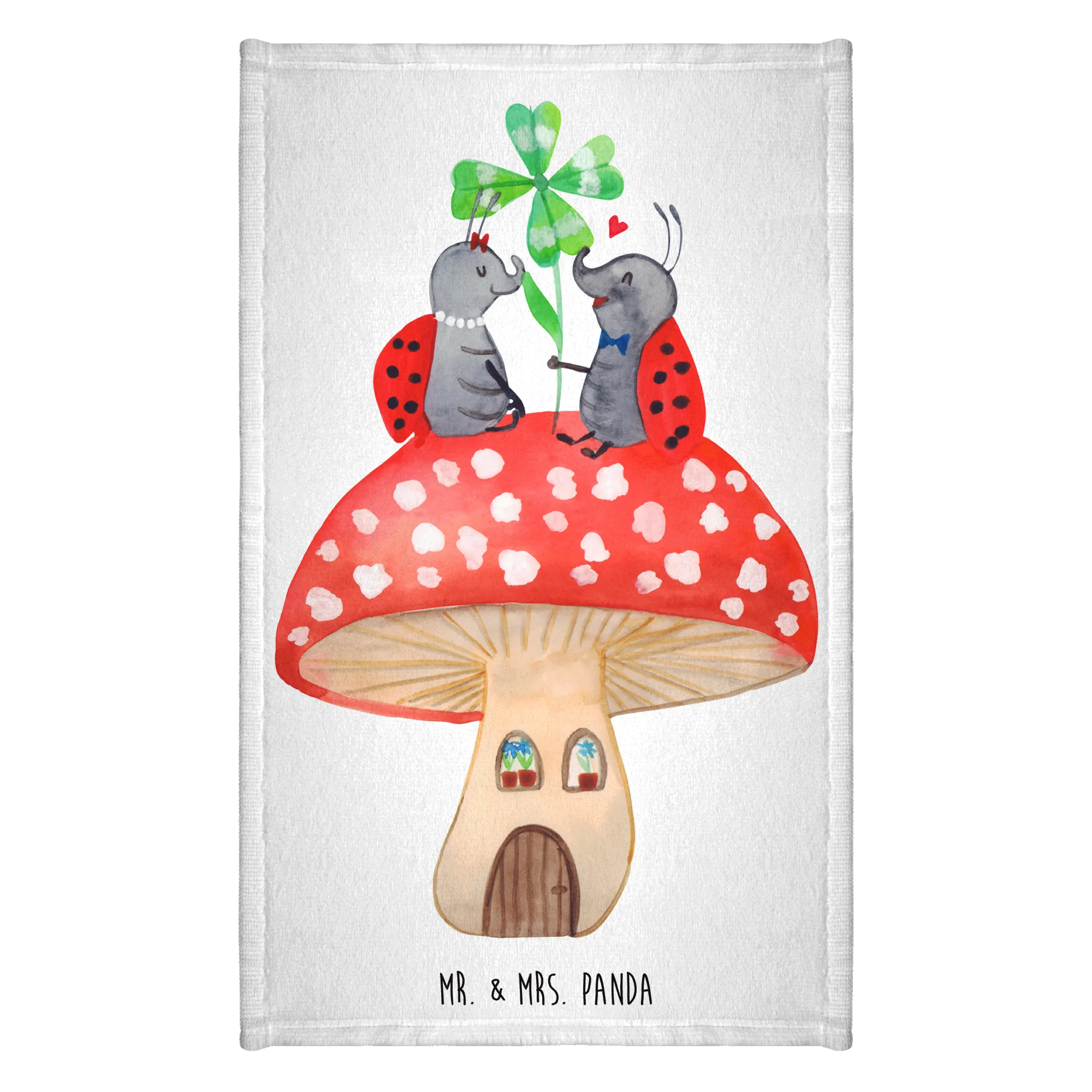 Introducing the delightful Mr. & Mrs. Panda Hand Towel featuring an enchanting motif of a Ladybug couple resting on a mushroom! This towel is not just an essential addition to your bathroom, but also a whimsical piece that can brighten up any home. Crafted from a plush cotton blend, it measures a generous 50 x 100 cm, making it perfect for everyday use or as a charming bathroom accessory.