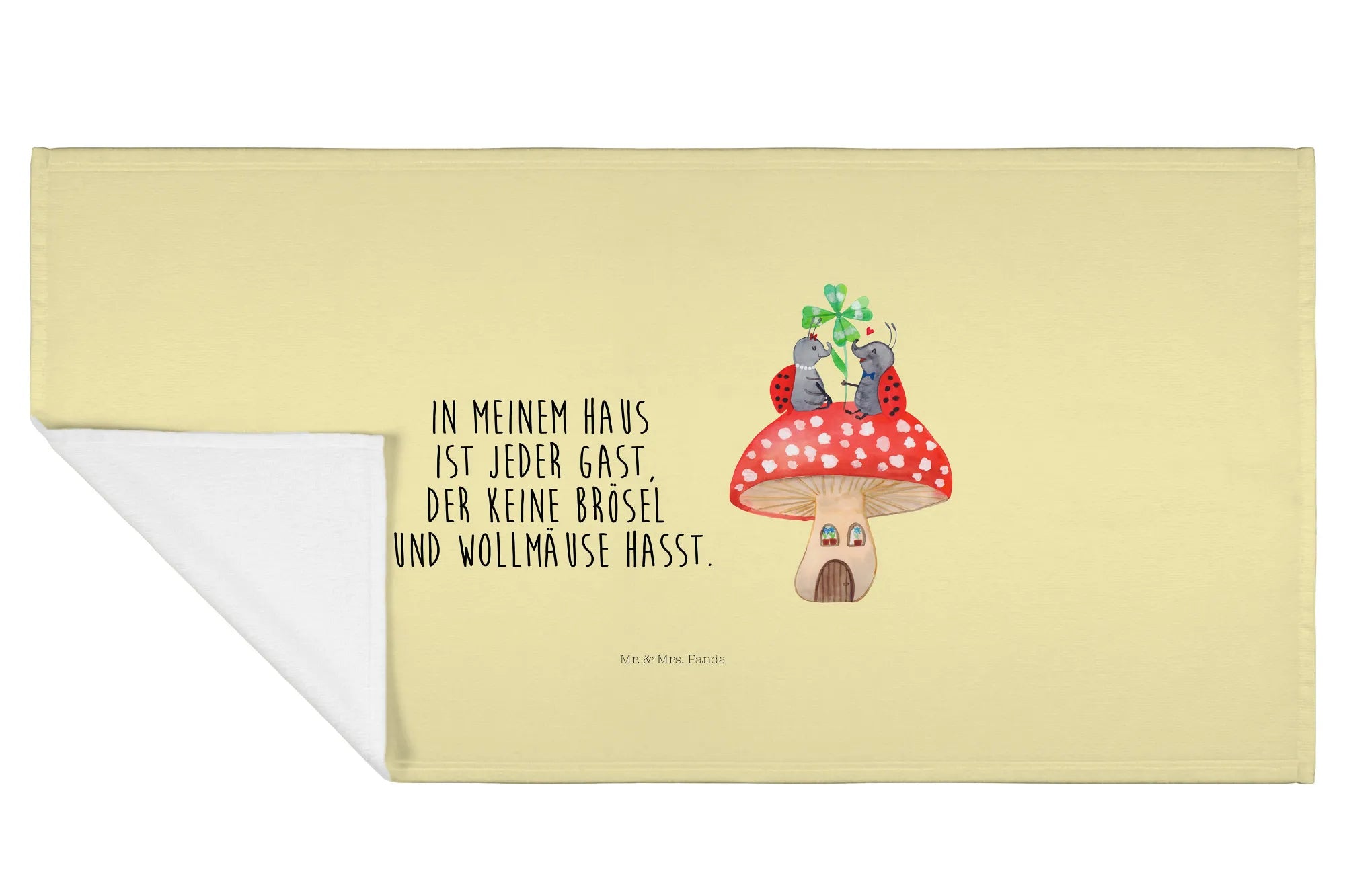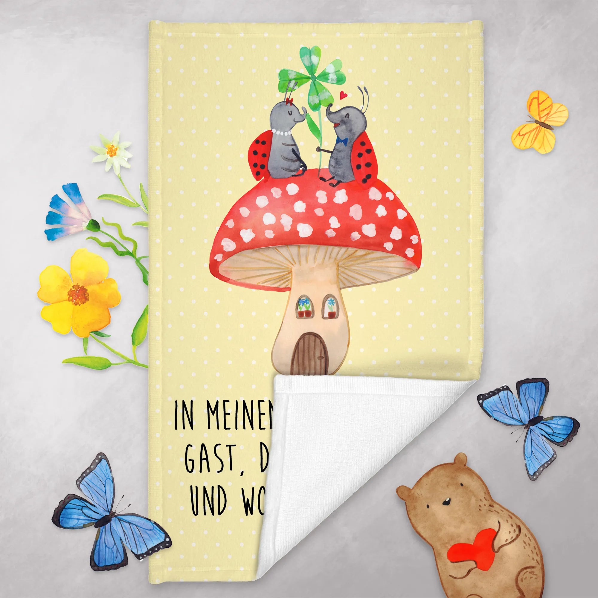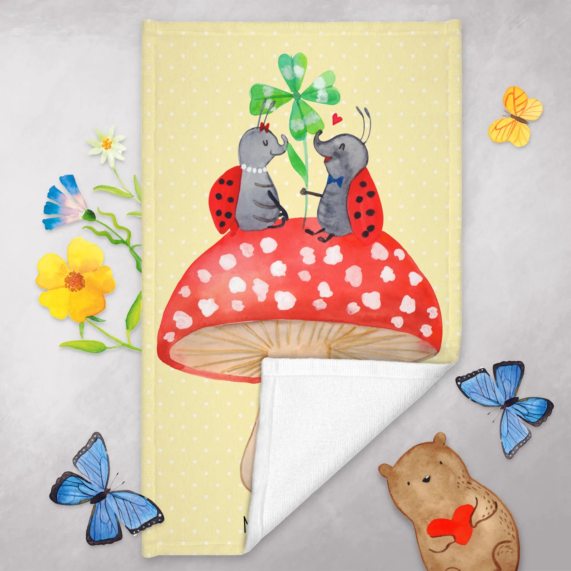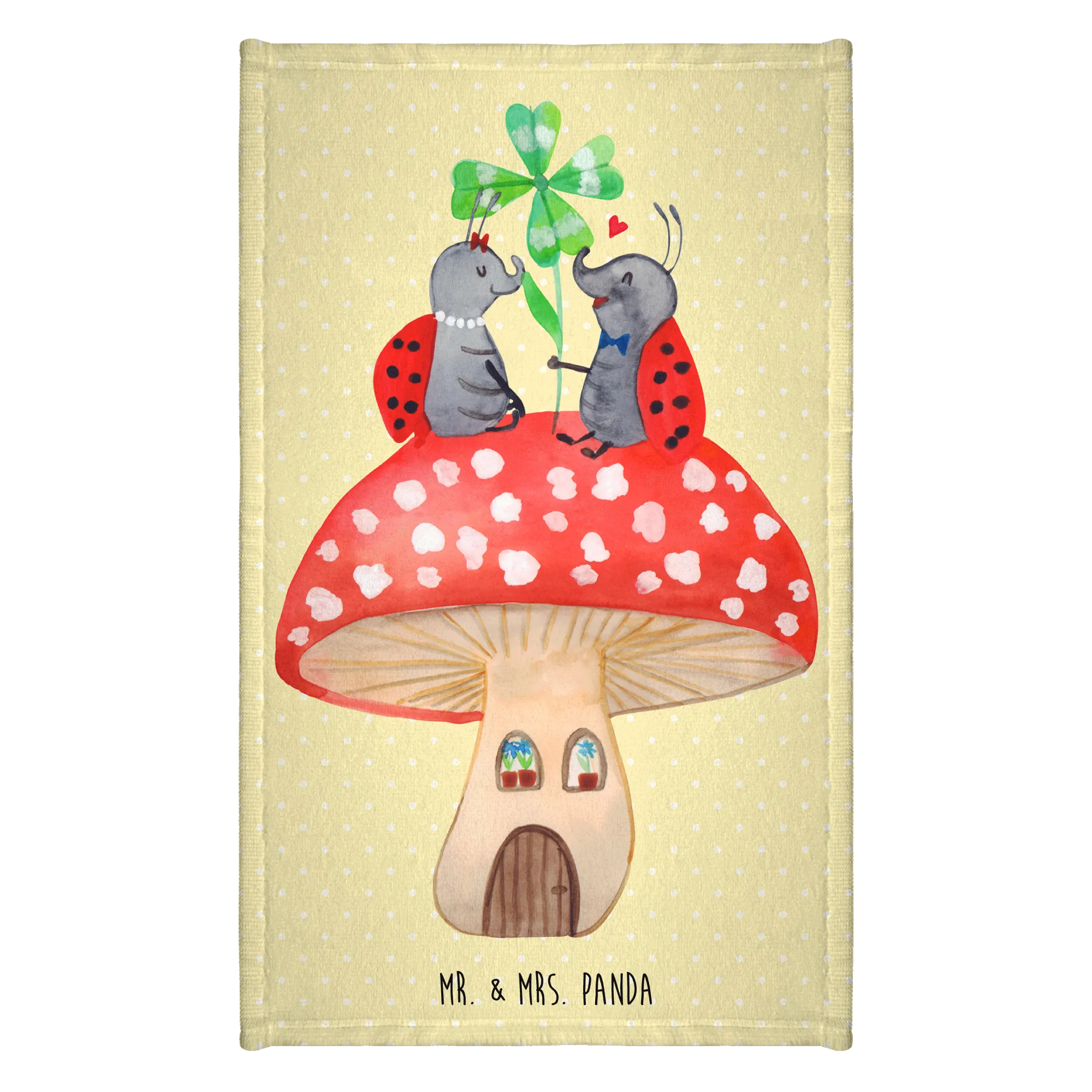 Introducing the delightful Mr. & Mrs. Panda Hand Towel featuring an enchanting motif of a Ladybug couple resting on a mushroom! This towel is not just an essential addition to your bathroom, but also a whimsical piece that can brighten up any home. Crafted from a plush cotton blend, it measures a generous 50 x 100 cm, making it perfect for everyday use or as a charming bathroom accessory.