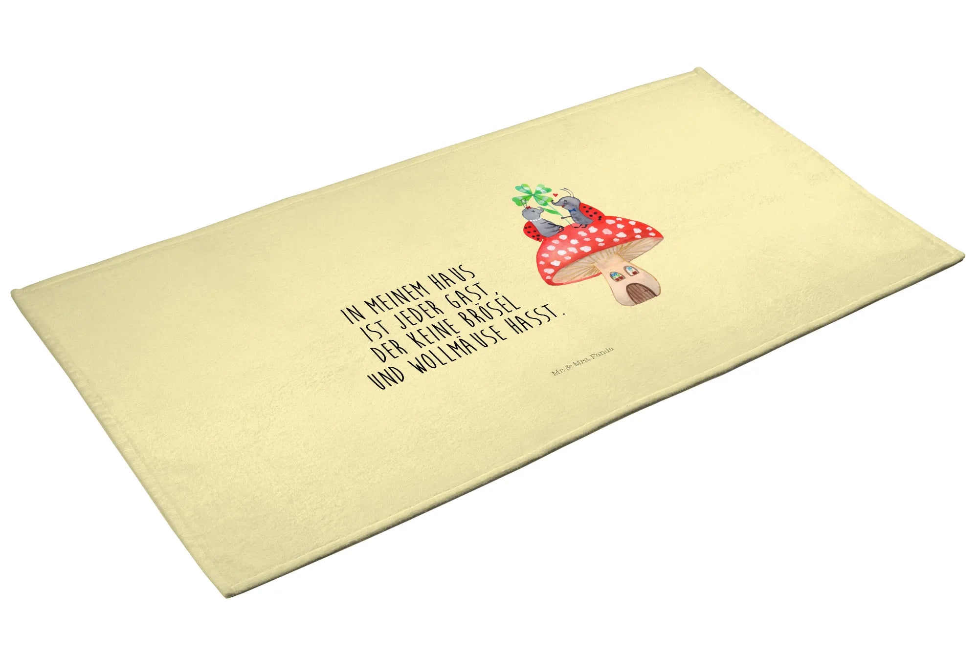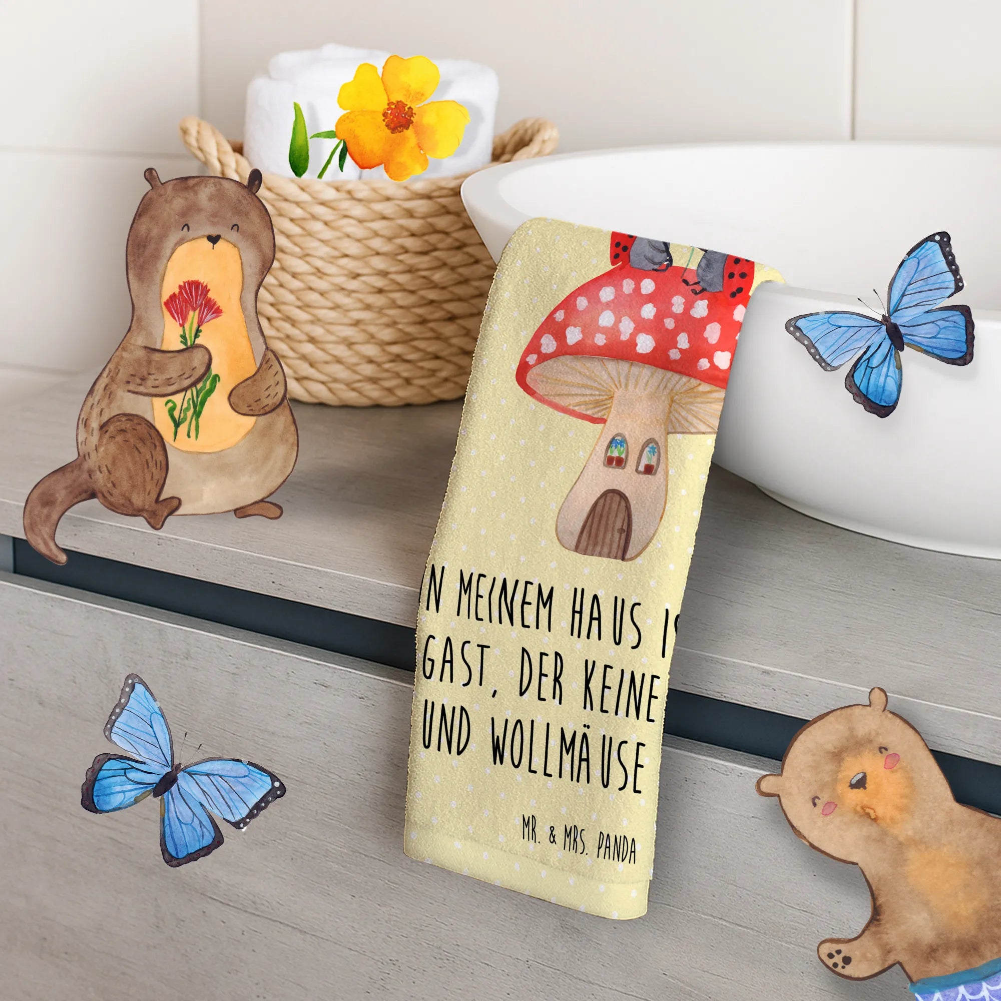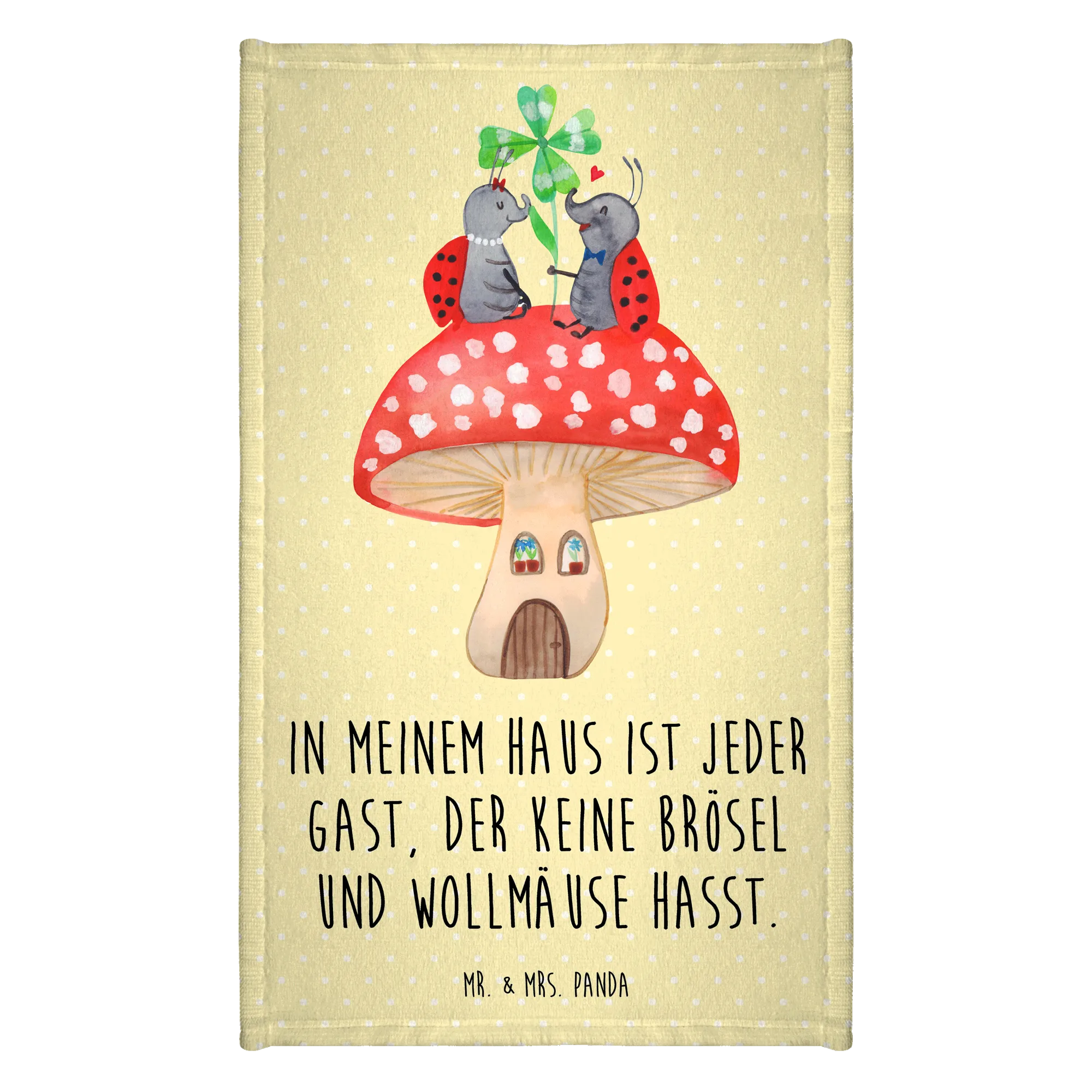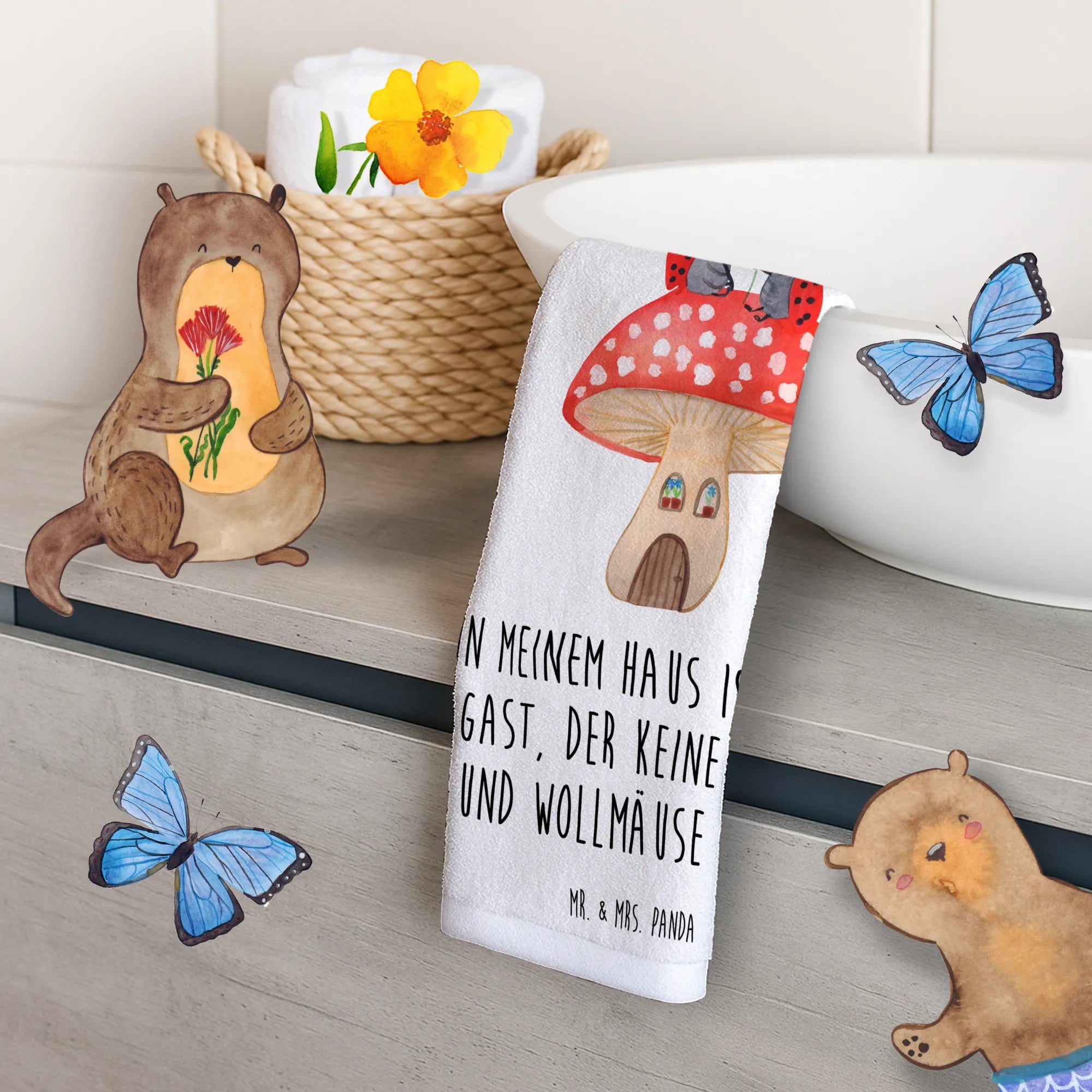 Introducing the delightful Mr. & Mrs. Panda Hand Towel featuring an enchanting motif of a Ladybug couple resting on a mushroom! This towel is not just an essential addition to your bathroom, but also a whimsical piece that can brighten up any home. Crafted from a plush cotton blend, it measures a generous 50 x 100 cm, making it perfect for everyday use or as a charming bathroom accessory.