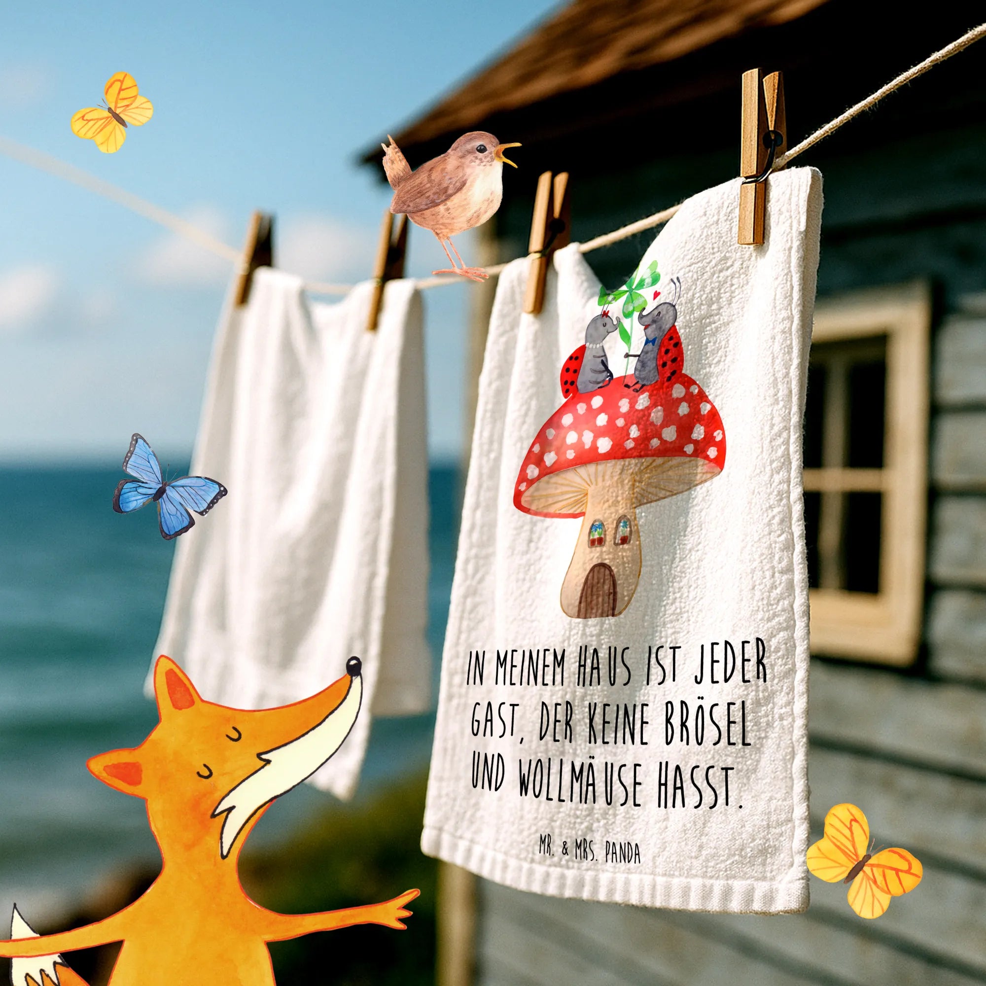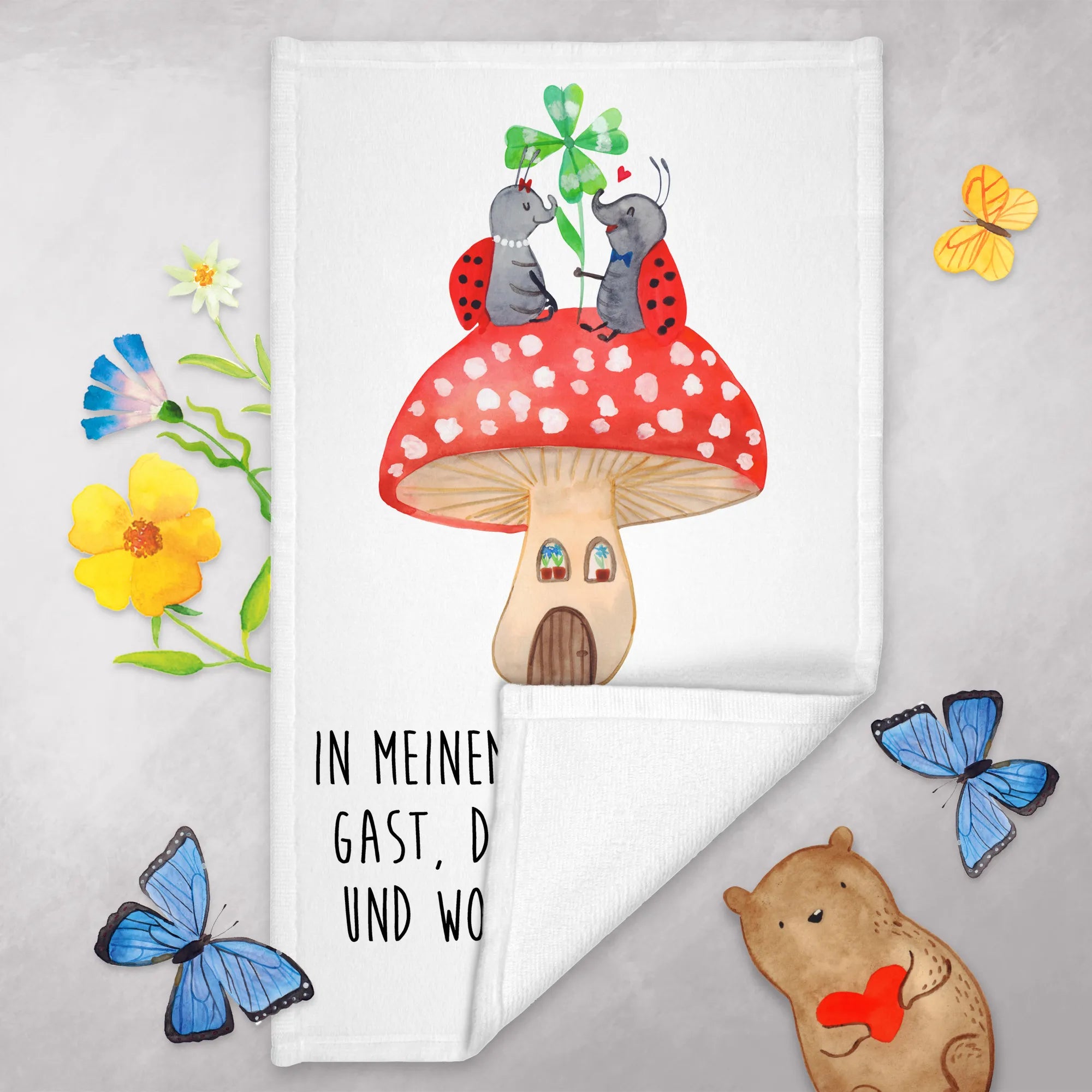 Hand towel ladybug toadstool - 50 x 100 Towel - with a saying - White