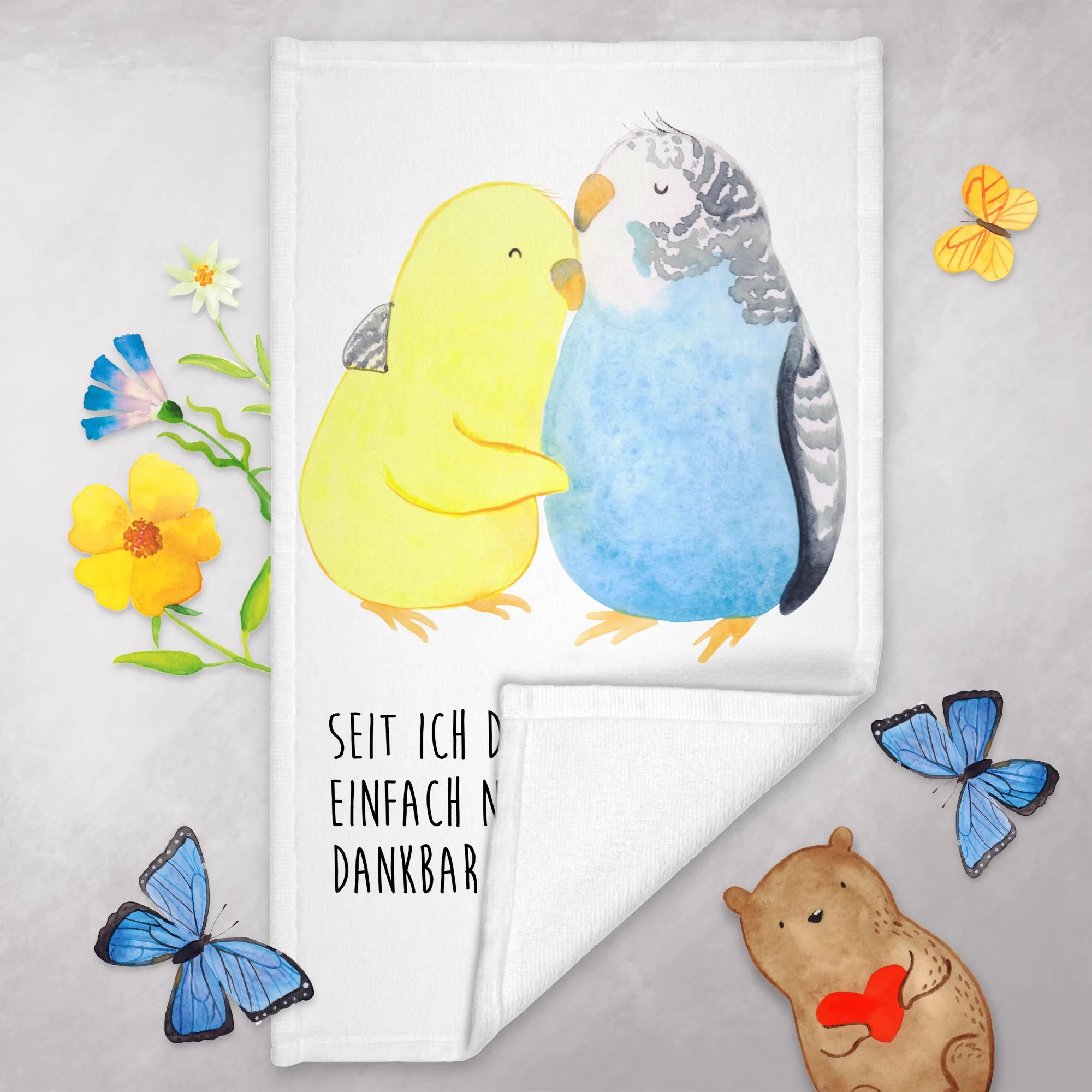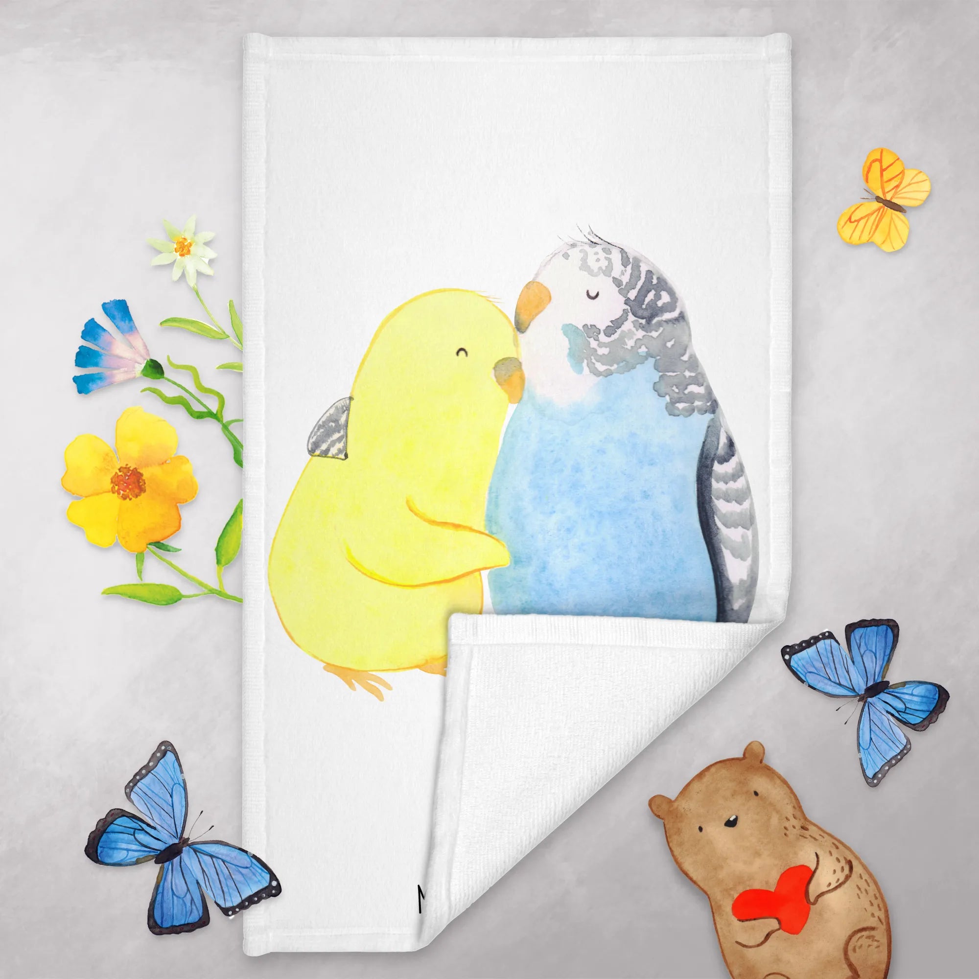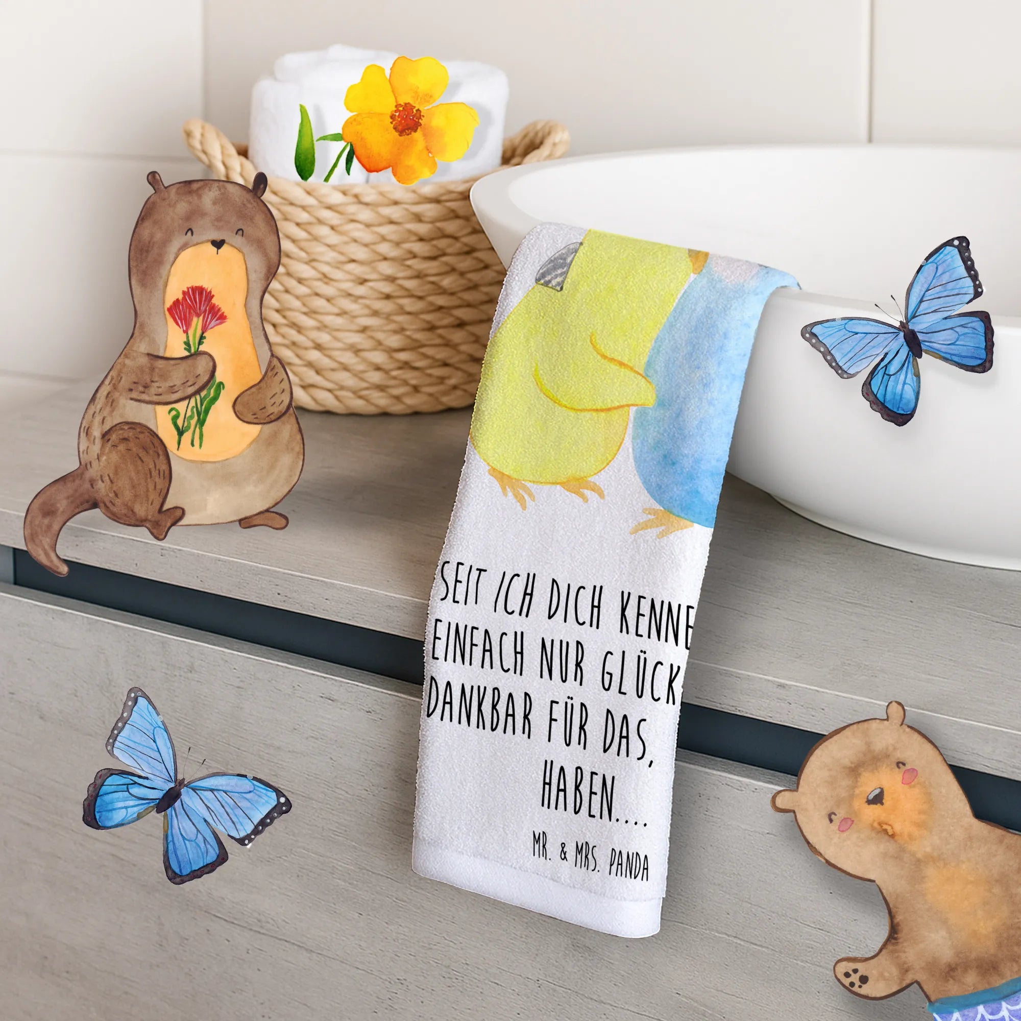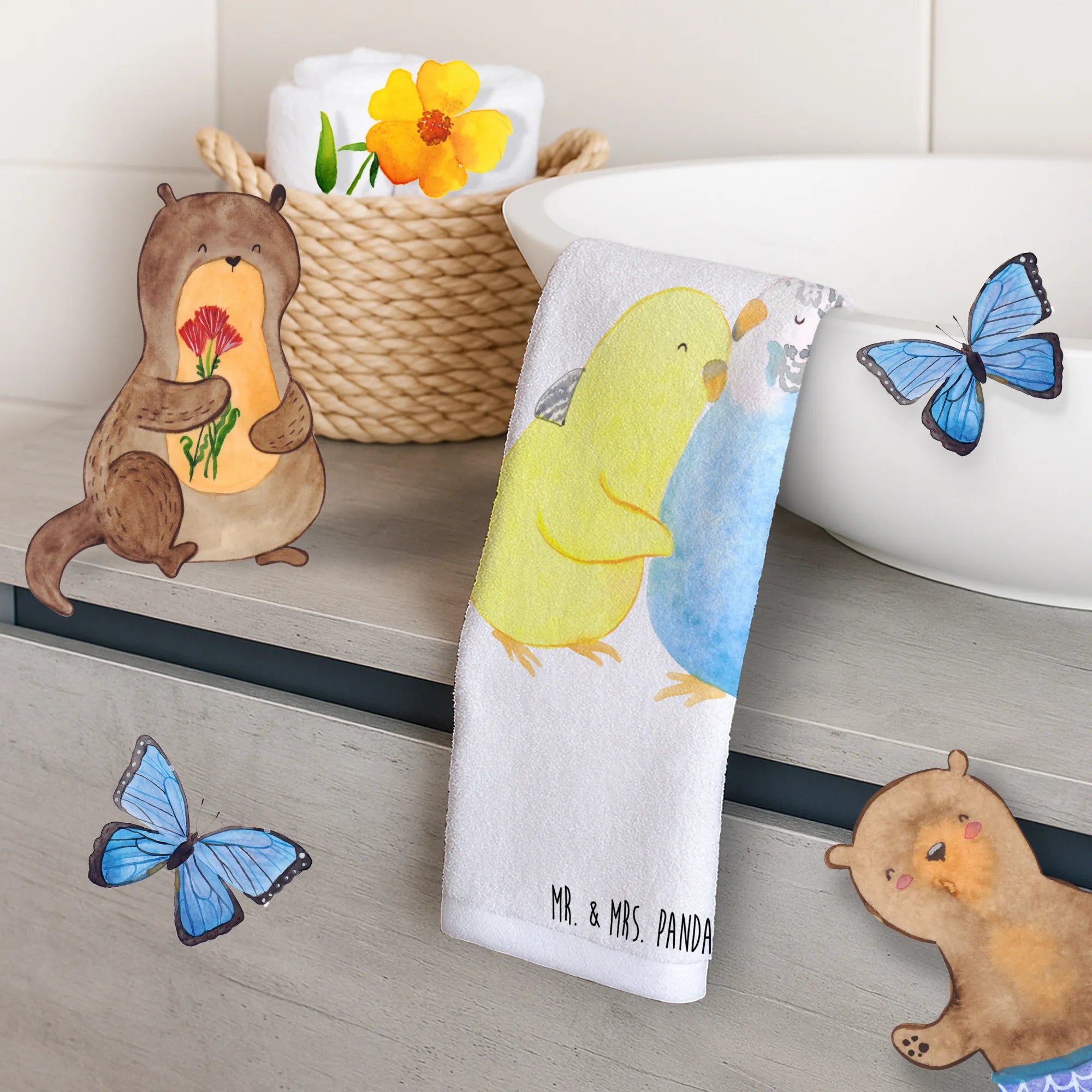 Hand towel Parakeets in love - 50 x 100 Towel - with saying - White