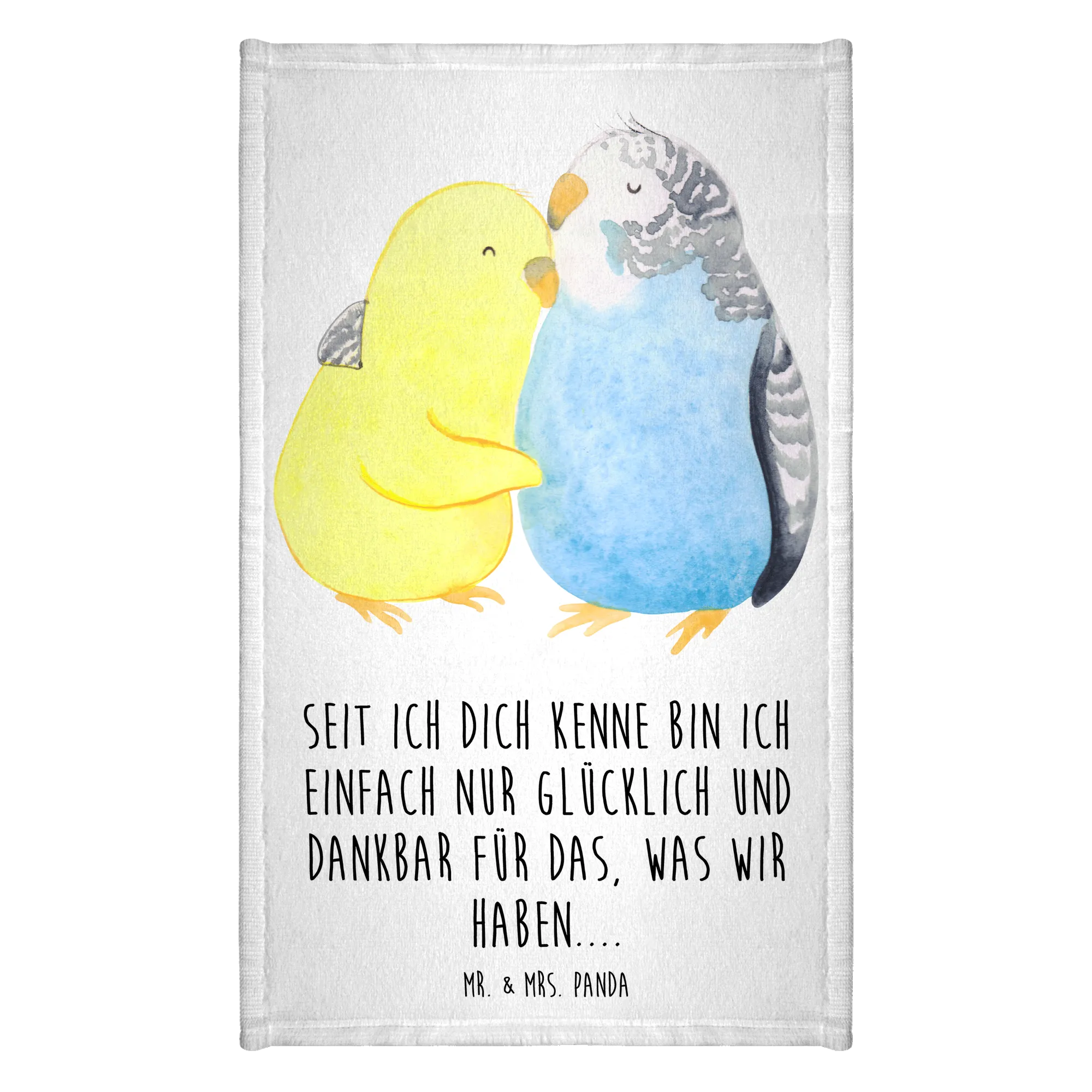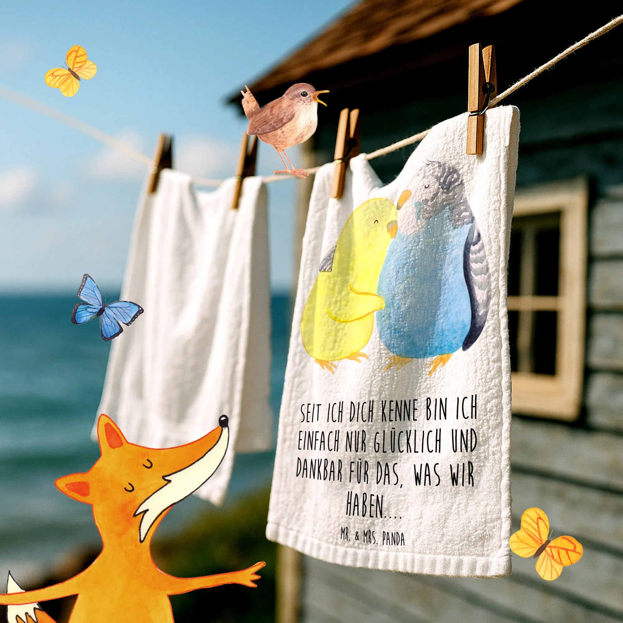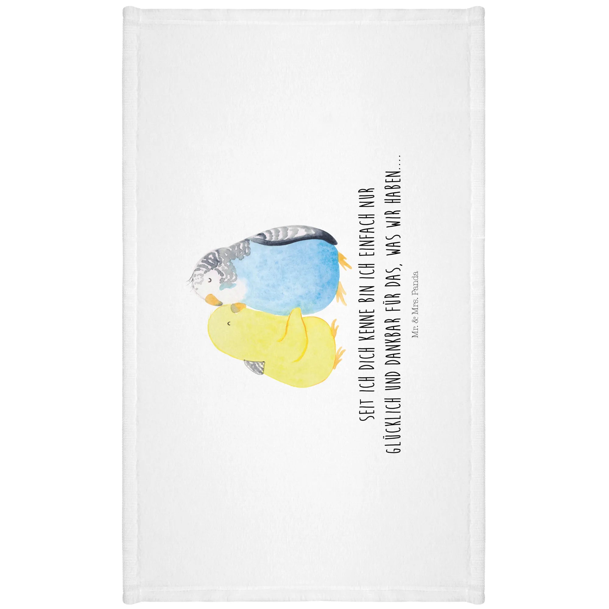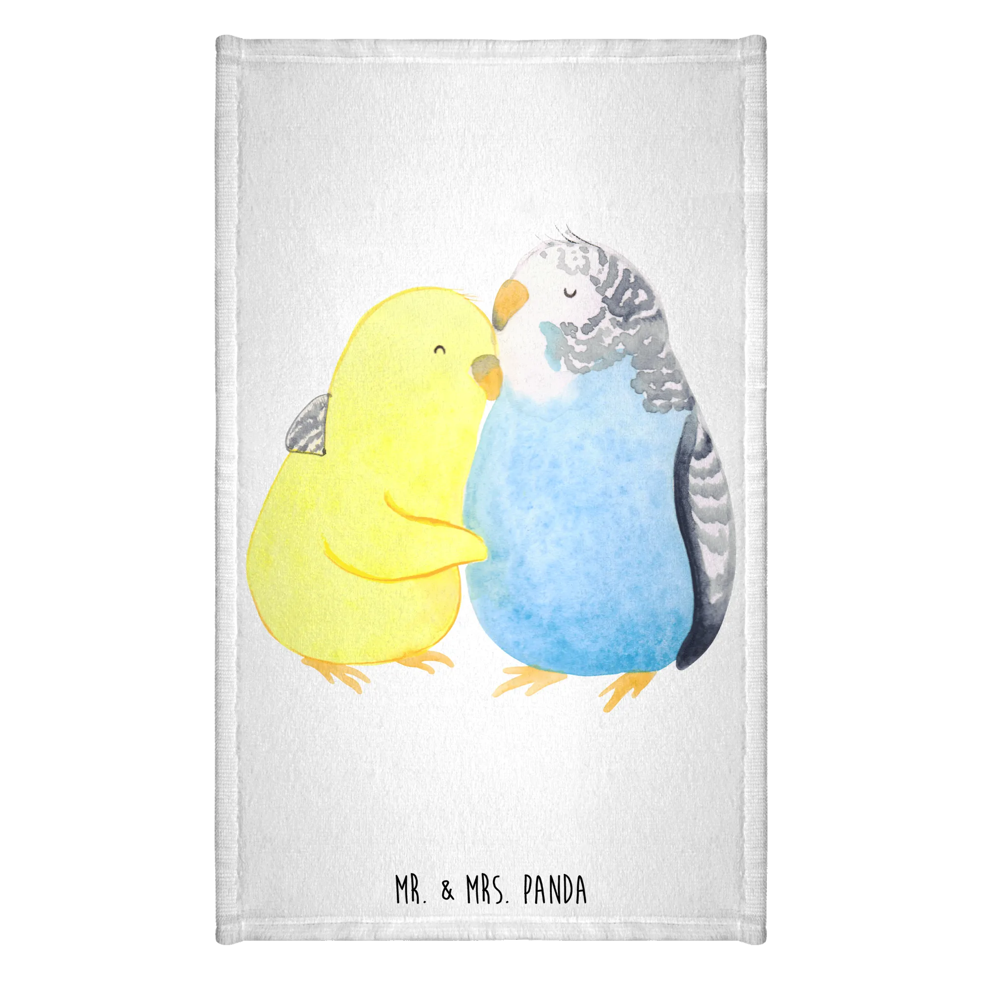 Hand towel Parakeets in love - 50 x 100 Towel - with saying - White