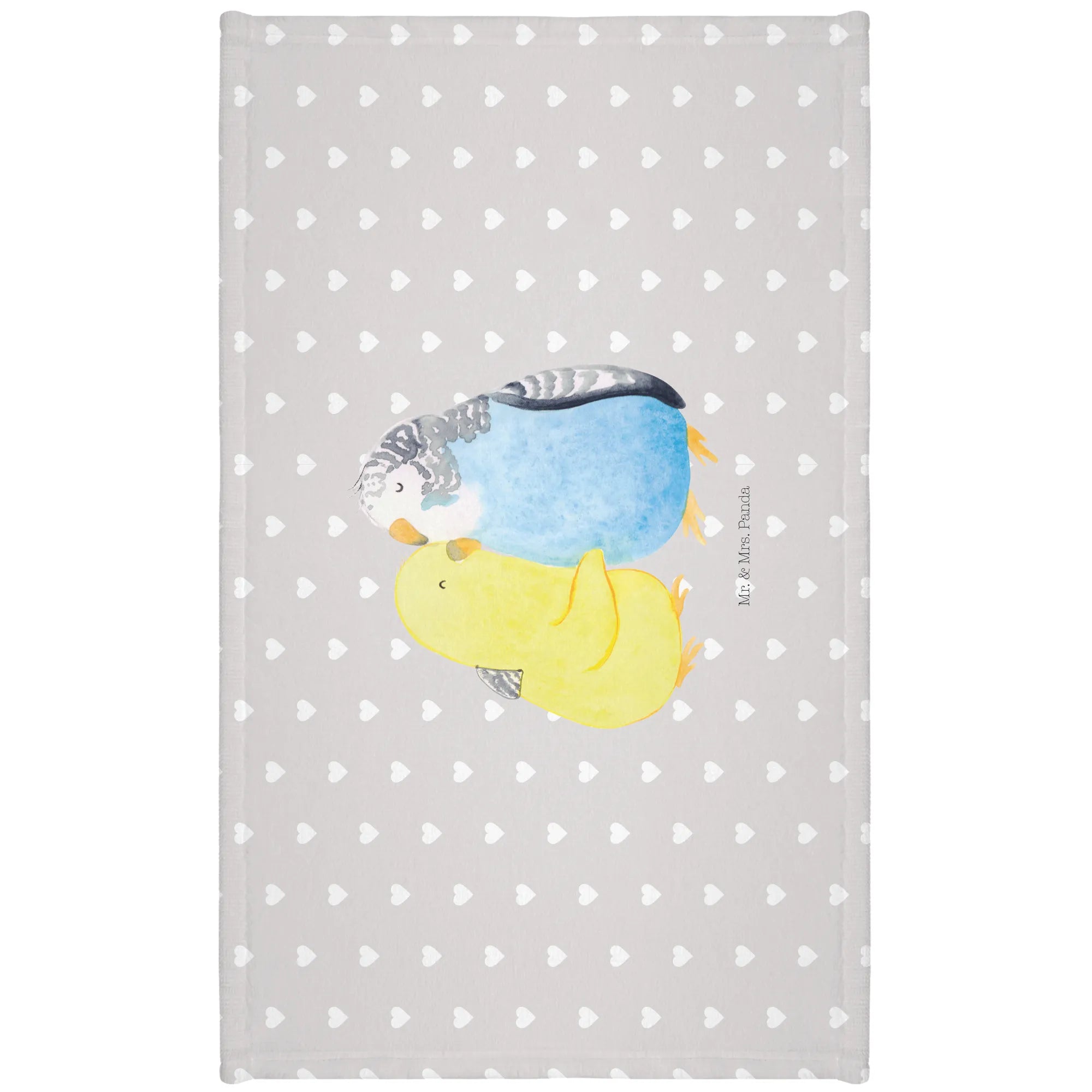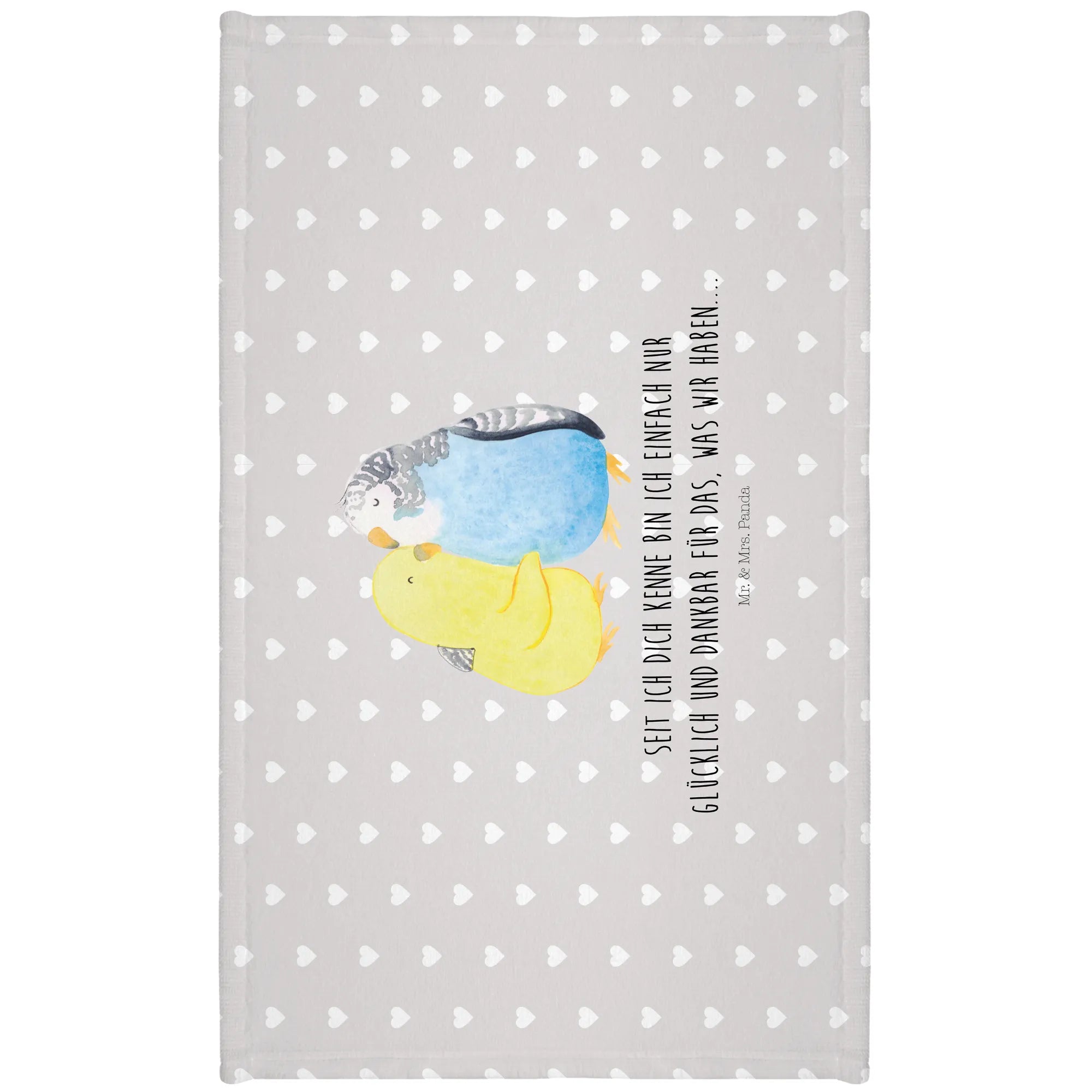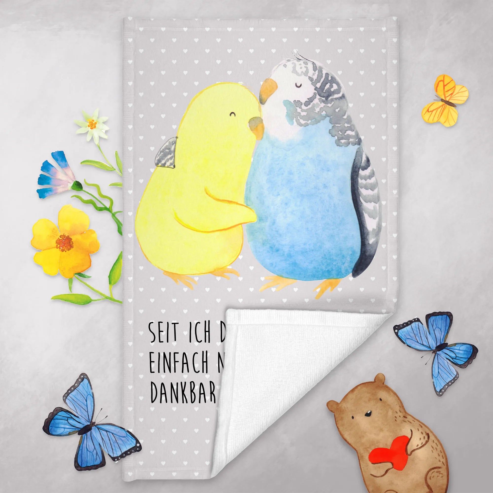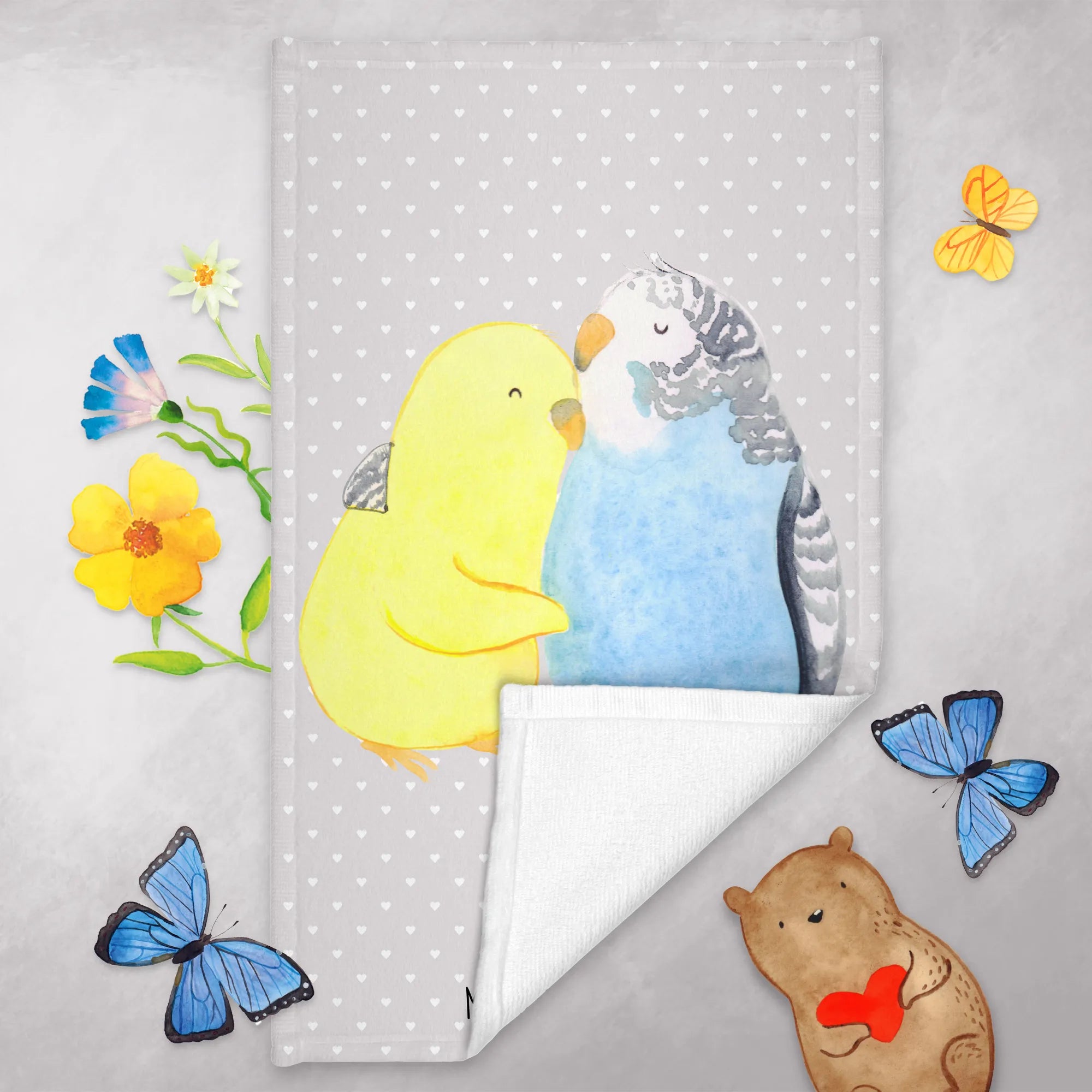 Picture a pair of vibrant budgies, one a gentle hue of yellow and the other a lovely blue with gray patterns, snuggling together in a heartwarming embrace. Their sweet connection reflects trust, closeness, and unconditional love, making this towel not only a practical item but also a heartfelt reminder of affection.