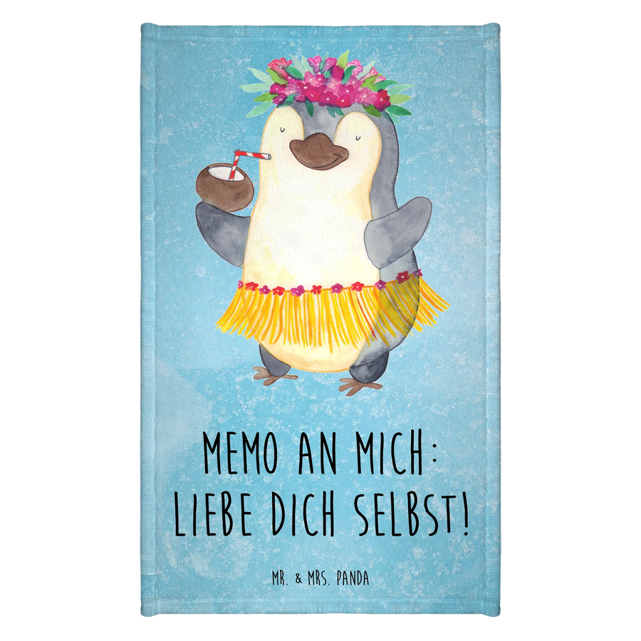 Hand towel Penguin coconut - Guest Towel - with a saying - Ice blue