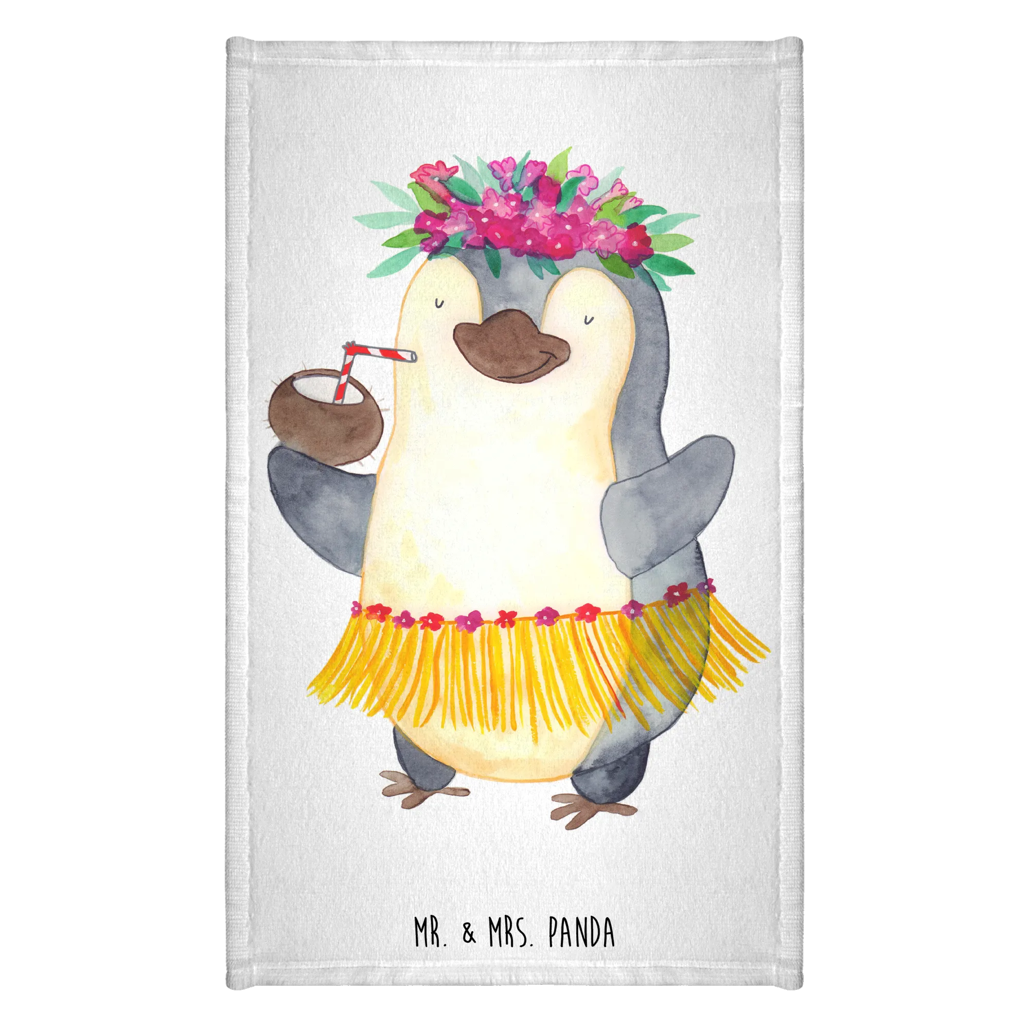 Introducing the delightful Hand Towel with Penguin Coconut design from the charming Mr. & Mrs. Panda Penguin Collection! This isn’t just any ordinary towel – it’s a splash of joy, perfect for brightening up your bathroom experience. Imagine the cute little penguin with its flowy skirt and coconut drink, dancing under the sun, bringing sunshine into your life even on the cloudiest of days.