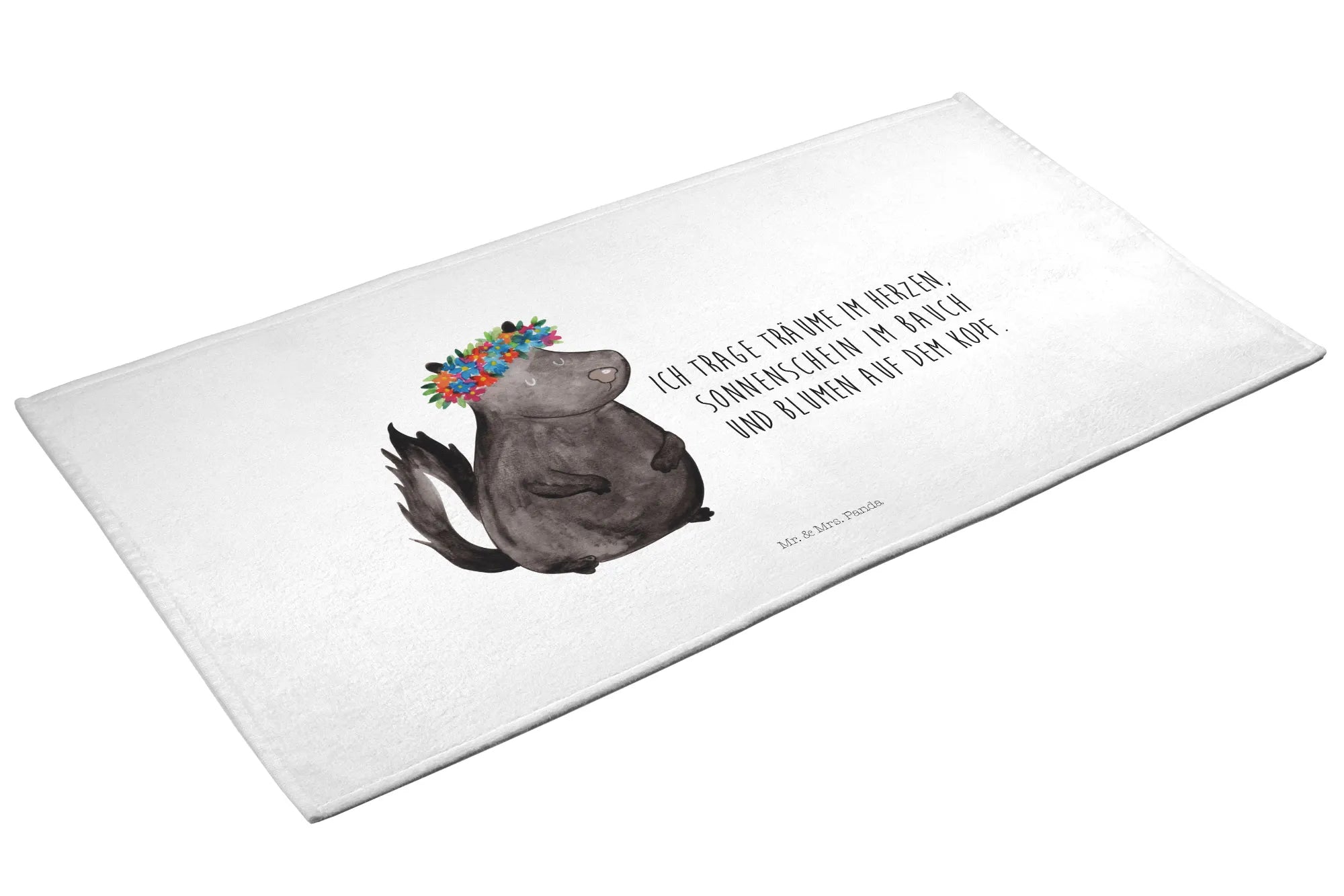 Introducing the delightful Guest Towel featuring our adorable Skunk flower girl, designed by the creative minds at Mr. & Mrs. Panda. This charming 50 x 30 cm towel isn't just functional; it's a lovely touch that brightens up any guest bathroom or personal space. Perfectly soft and highly absorbent, it’s made from a fluffy cotton blend that feels fantastic against your skin—ideal for quick hand-drying or freshening up after a relaxing yoga session.
