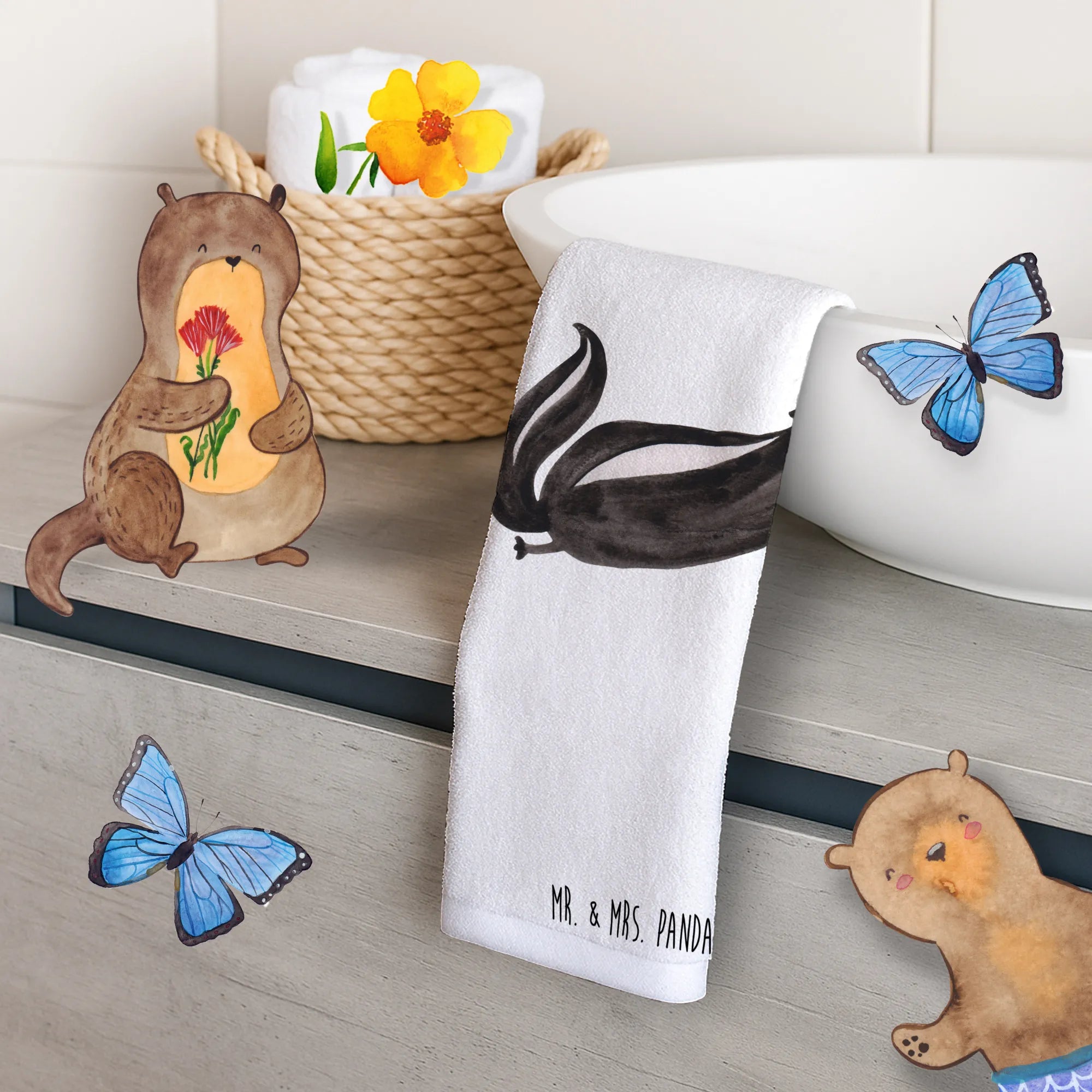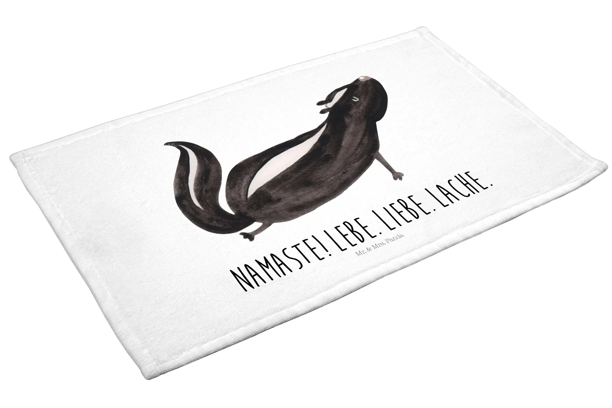 Looking for the perfect addition to your bathroom that combines cuteness and functionality? Meet our delightful Hand Towel featuring a charming Skunk yoga motif from the exclusive Skunk Collection by Mr. & Mrs. Panda! This high-quality towel is not just a practical item but also a delightful decor piece that will surely brighten up your space.