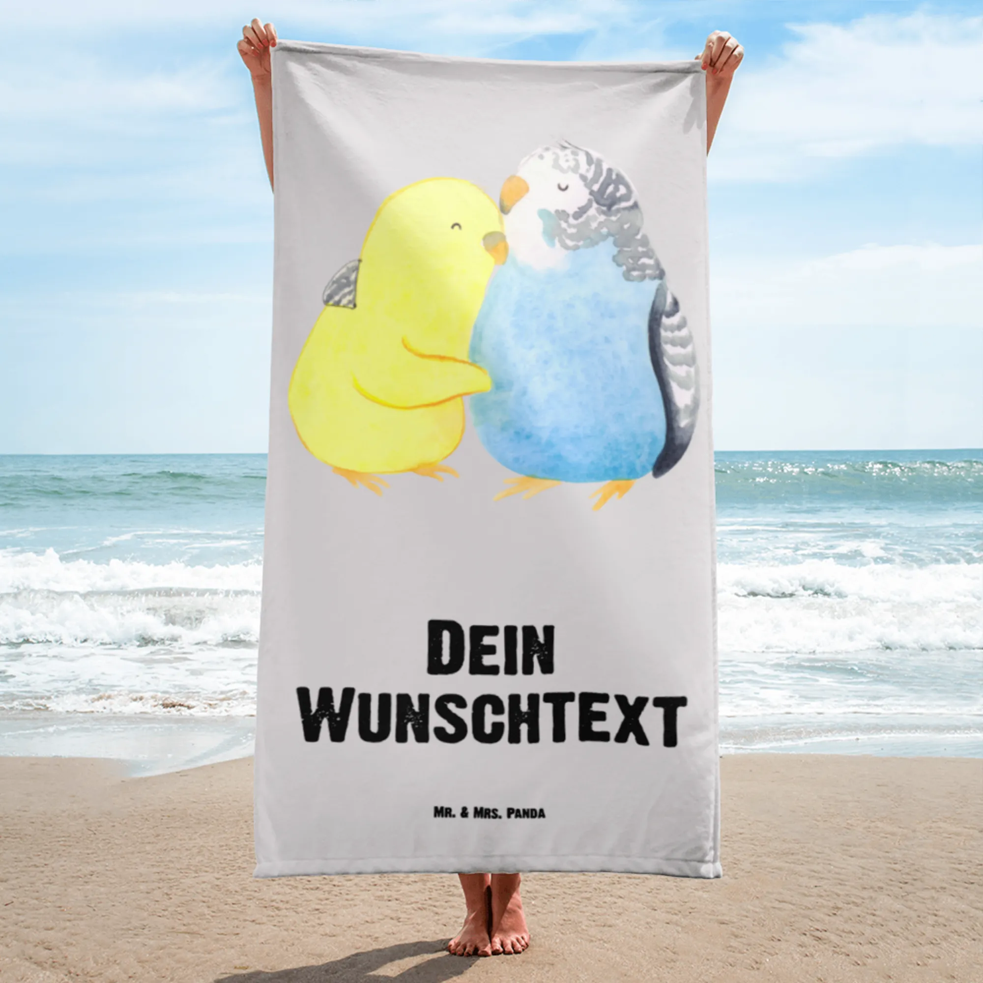 Hand towel with name Parakeets in love – Mr. & Mrs. Panda