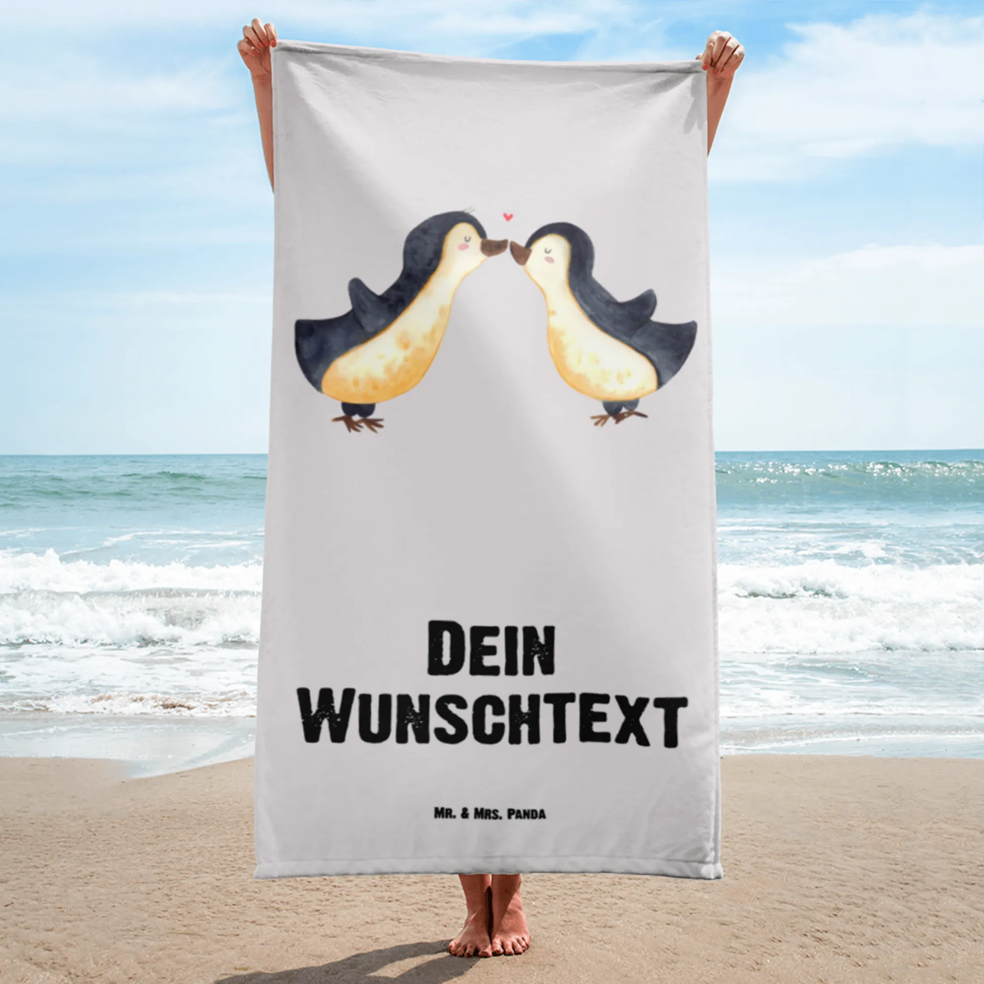 Hand towel with name penguins kiss – Mr. & Mrs. Panda