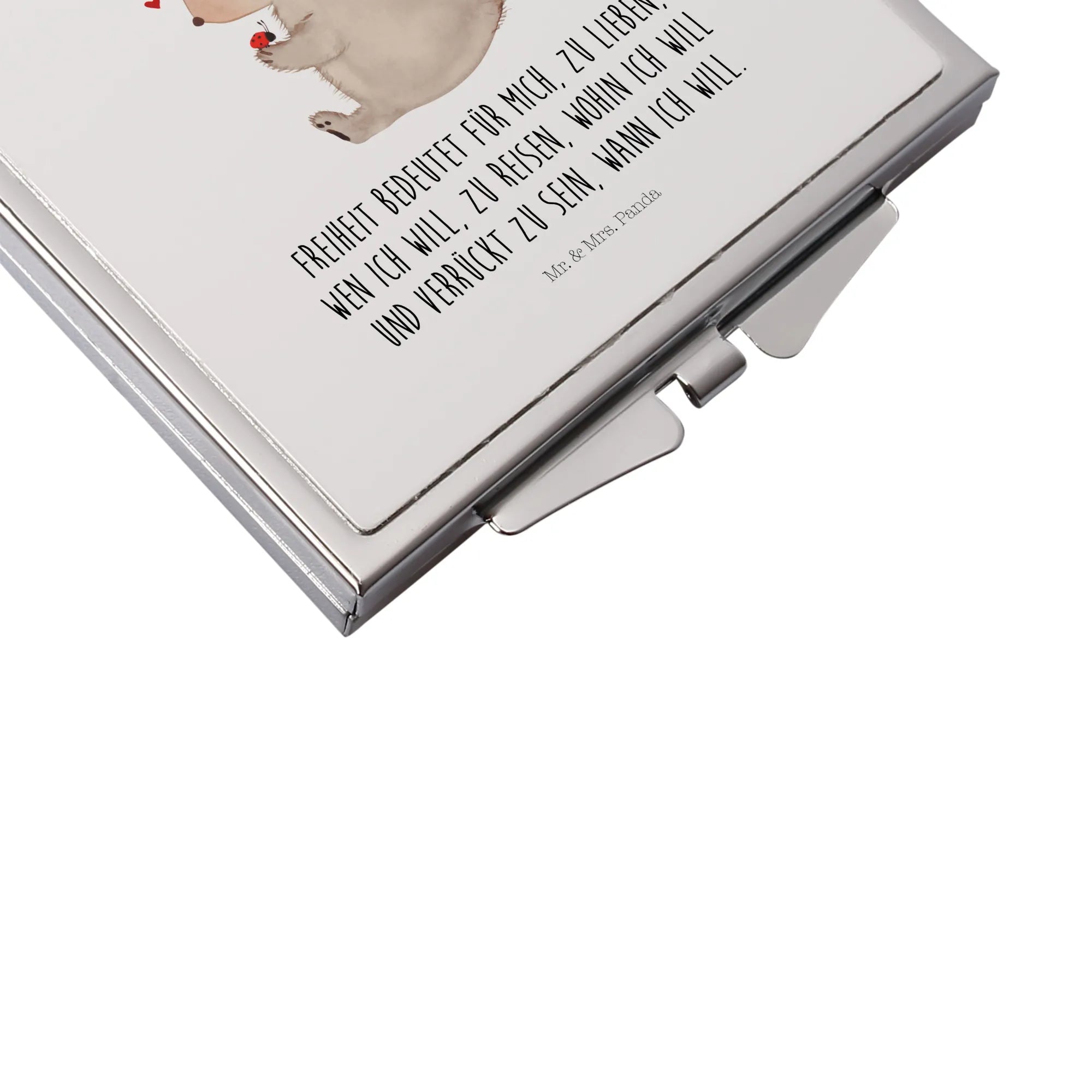 Step into elegance with the enchanting Handbag Mirror from Mr. & Mrs. Panda! This square mirror, sized 60 mm x 60 mm x 8 mm, features delightful motifs and cheerful quotes that elevate any moment. Crafted from top-quality glass with an aluminum metal frame, this durable yet graceful piece is adorned with a shiny silver plating for a classy finish. Its compact, square design means it easily fits into your handbag or backpack, making it the ideal accessory for your on-the-go lifestyle. The secure folding closure prevents scratches and damages, keeping your mirror pristine. Whether it's for a quick touch-up, a spontaneous selfie, or as a thoughtful gift, this mirror will surely bring joy to every recipient. With just a simple wipe using a damp cloth, it remains sparkling clean for all your beauty needs. Bring the Mr. & Mrs. Panda charm into your daily routine with this lovely handbag mirror!