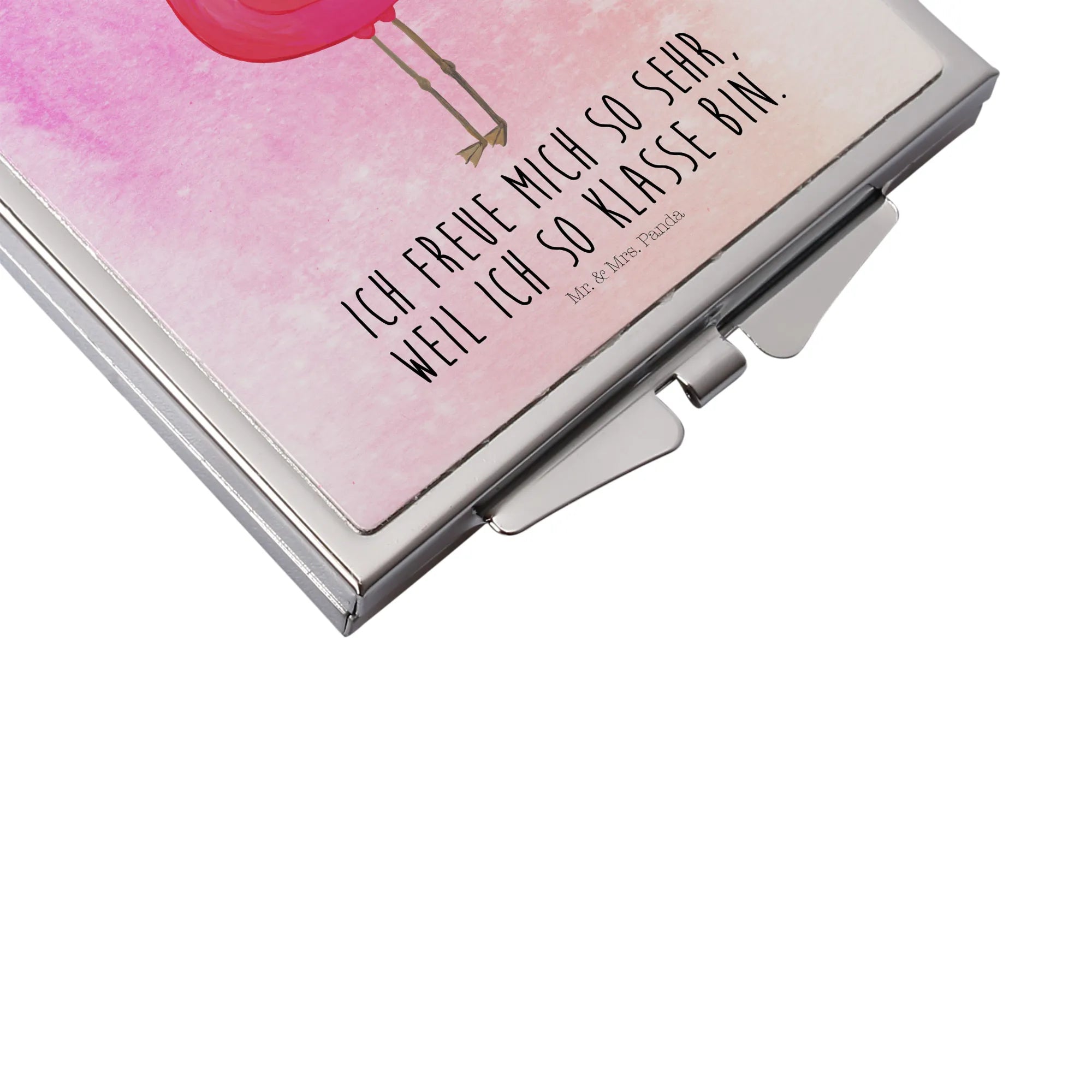 Step into elegance with the enchanting Handbag Mirror from Mr. & Mrs. Panda! This square mirror, sized 60 mm x 60 mm x 8 mm, features delightful motifs and cheerful quotes that elevate any moment. Crafted from top-quality glass with an aluminum metal frame, this durable yet graceful piece is adorned with a shiny silver plating for a classy finish. Its compact, square design means it easily fits into your handbag or backpack, making it the ideal accessory for your on-the-go lifestyle. The secure folding closure prevents scratches and damages, keeping your mirror pristine. Whether it's for a quick touch-up, a spontaneous selfie, or as a thoughtful gift, this mirror will surely bring joy to every recipient. With just a simple wipe using a damp cloth, it remains sparkling clean for all your beauty needs. Bring the Mr. & Mrs. Panda charm into your daily routine with this lovely handbag mirror!