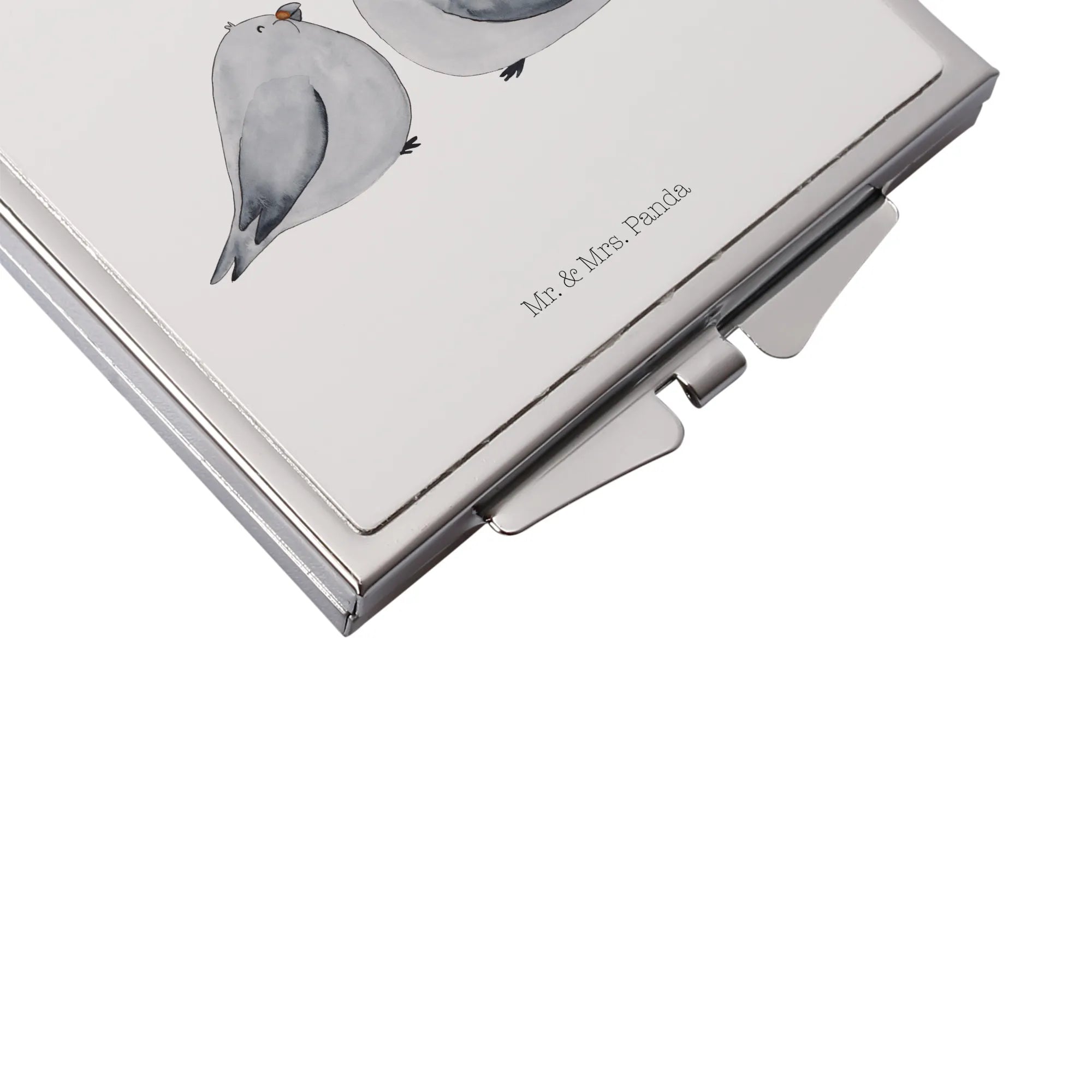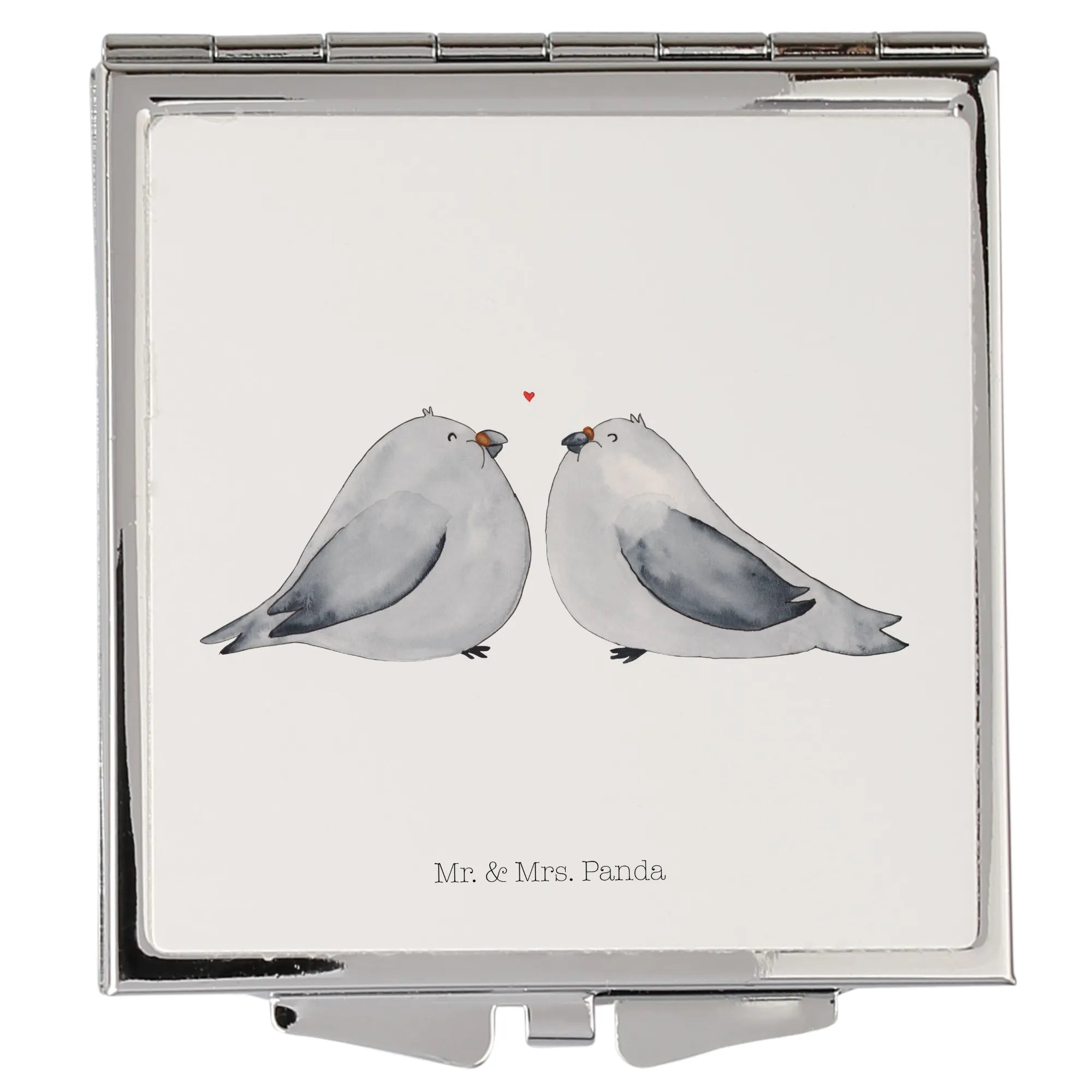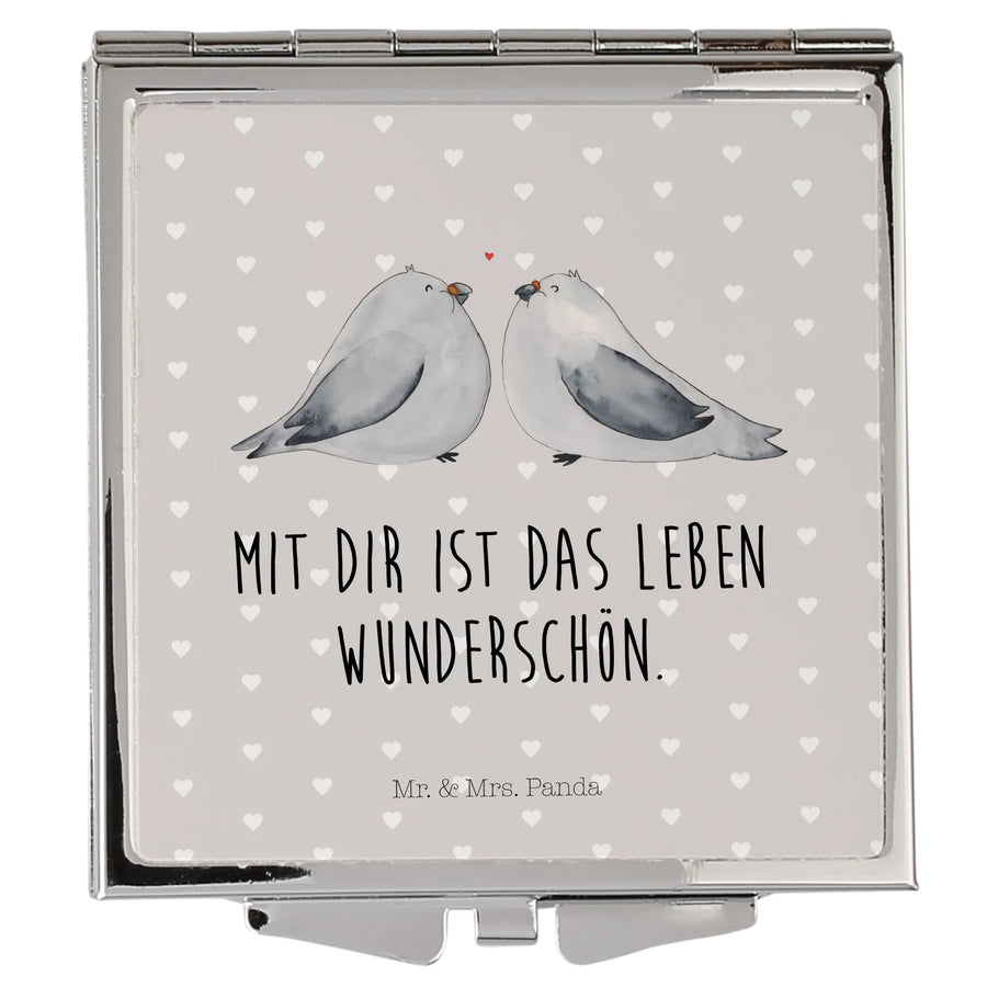 Handbag mirror Turtledoves in love - with saying - Grey Pastel