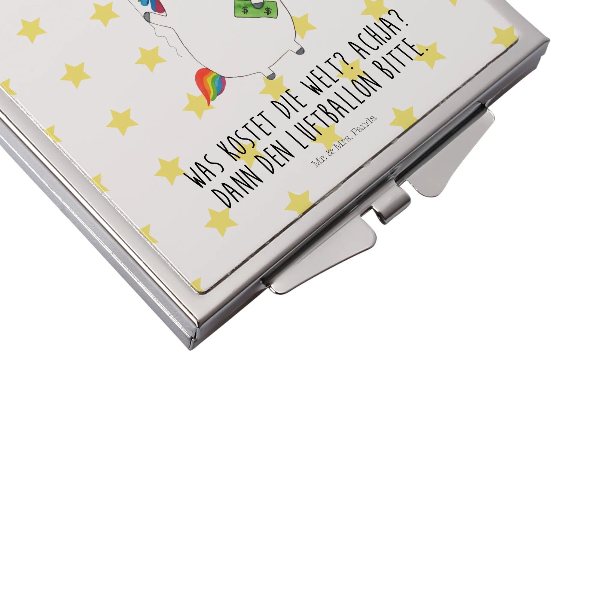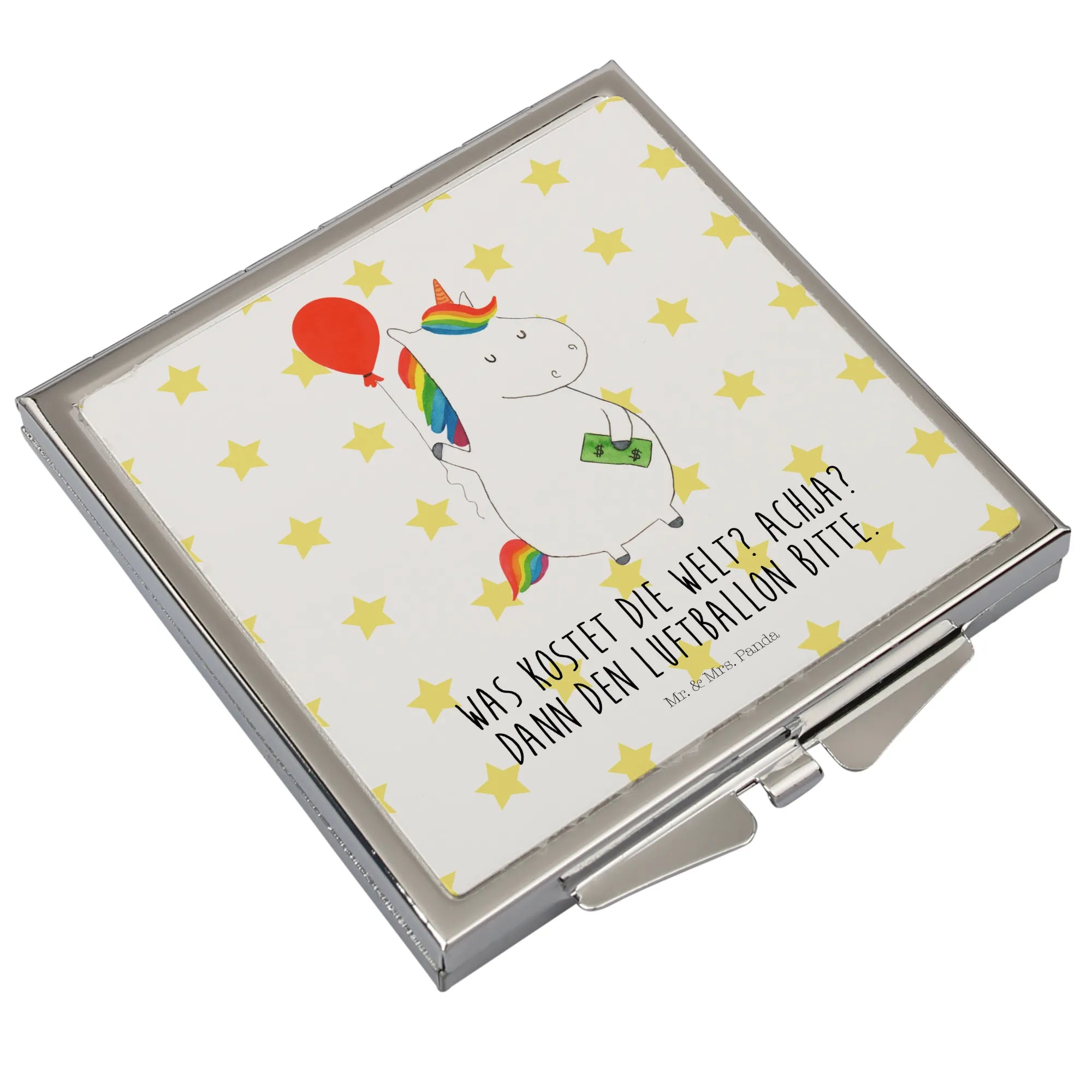 Handbag mirror unicorn balloon - with a saying - Red Pastel