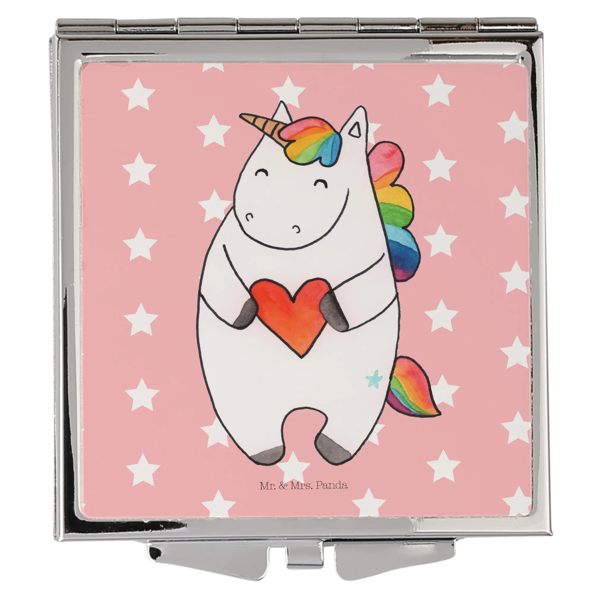 Handbag mirror unicorn Heart - with saying - Pastel Red