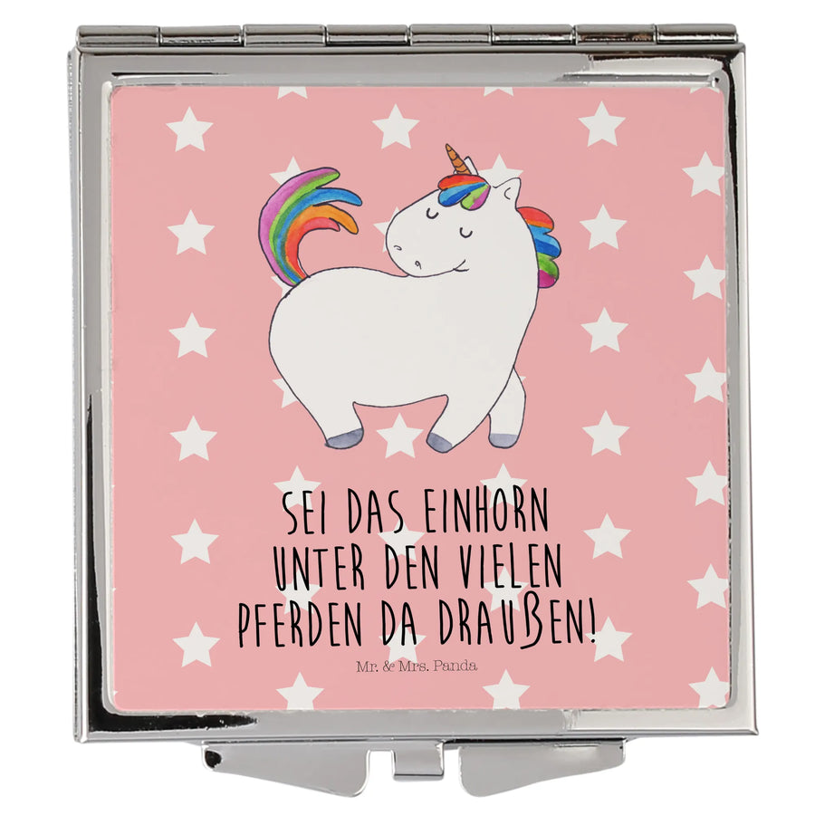 Zauberhaft, praktisch und voller Persönlichkeit: Unser quadratischer Handtaschenspiegel „Einhorn stolzierend“ von Mr. & Mrs. Panda macht jeden Blick in den Spiegel zu einem kleinen Glücksmoment. Das liebevoll handgezeichnete Einhorn-Motiv aus der Einhorn - Kollektion ist mit dem motivierenden Spruch „Sei das Einhorn unter den vielen Pferden da draußen!“ versehen und erinnert dich daran, einzigartig zu sein.
