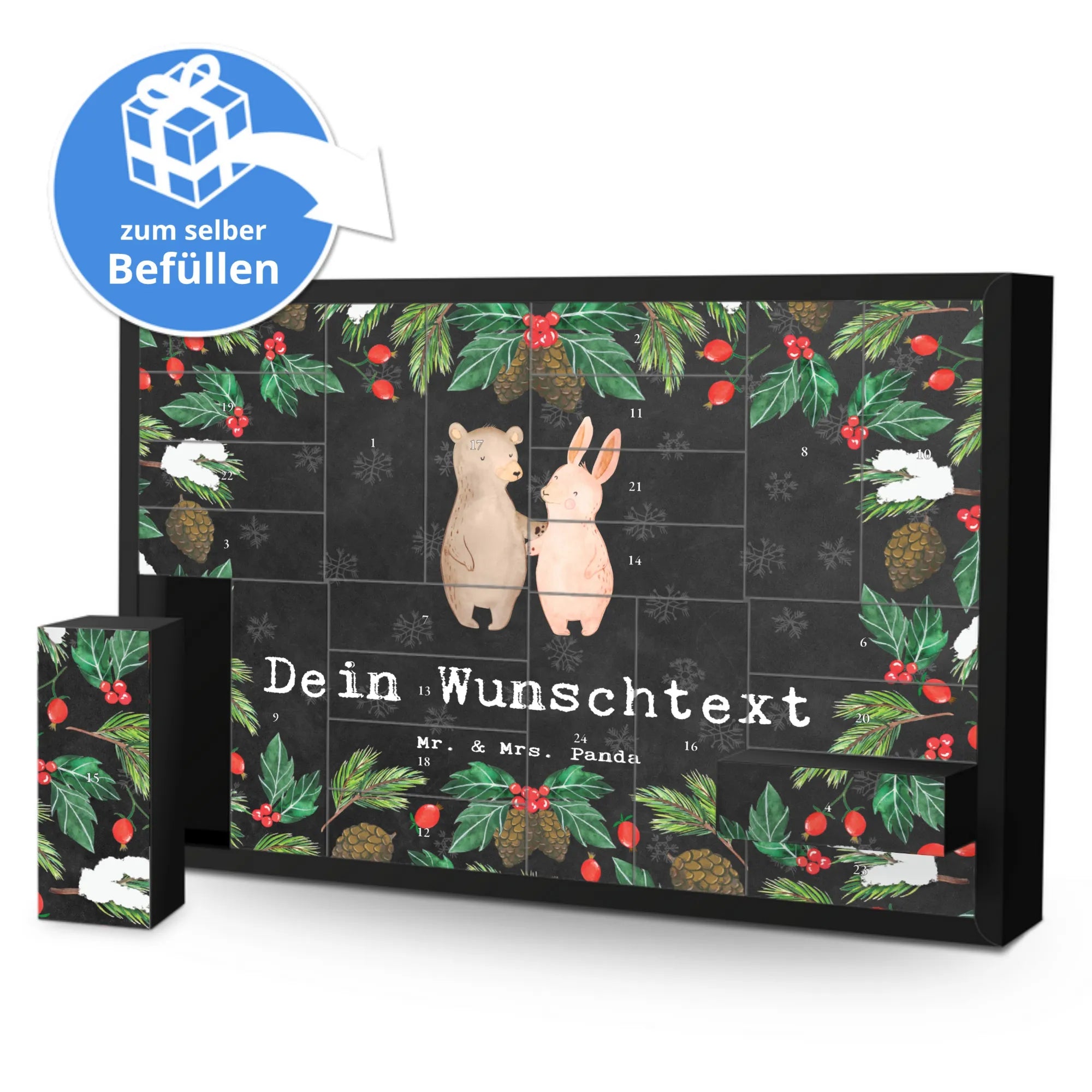 🐼 PERSONALISIERT BEFÜLLBAR ADVENTSKALENDER: 24 Fächer, seidenmatt, personalisierbar.