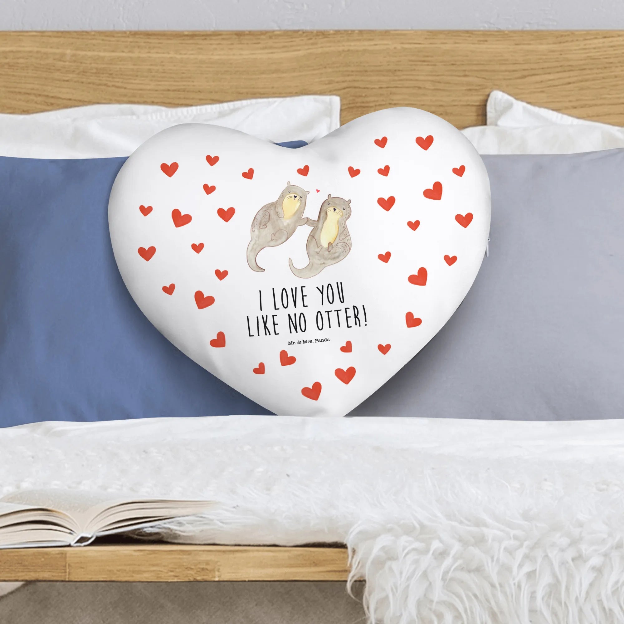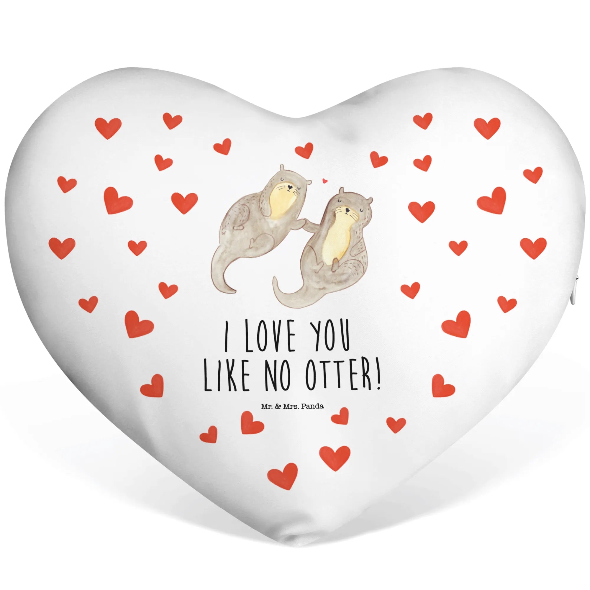 Welcome to the adorable world of Mr. & Mrs. Panda, where love is always in the air – or should we say, in the water! Meet our enchanting Heart Cushion featuring two delightful otters holding paws, drifting gracefully through the water. It’s the perfect representation of love and companionship!