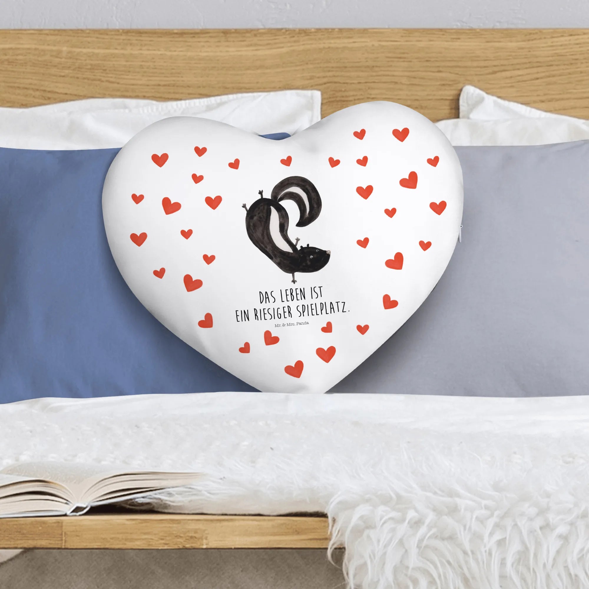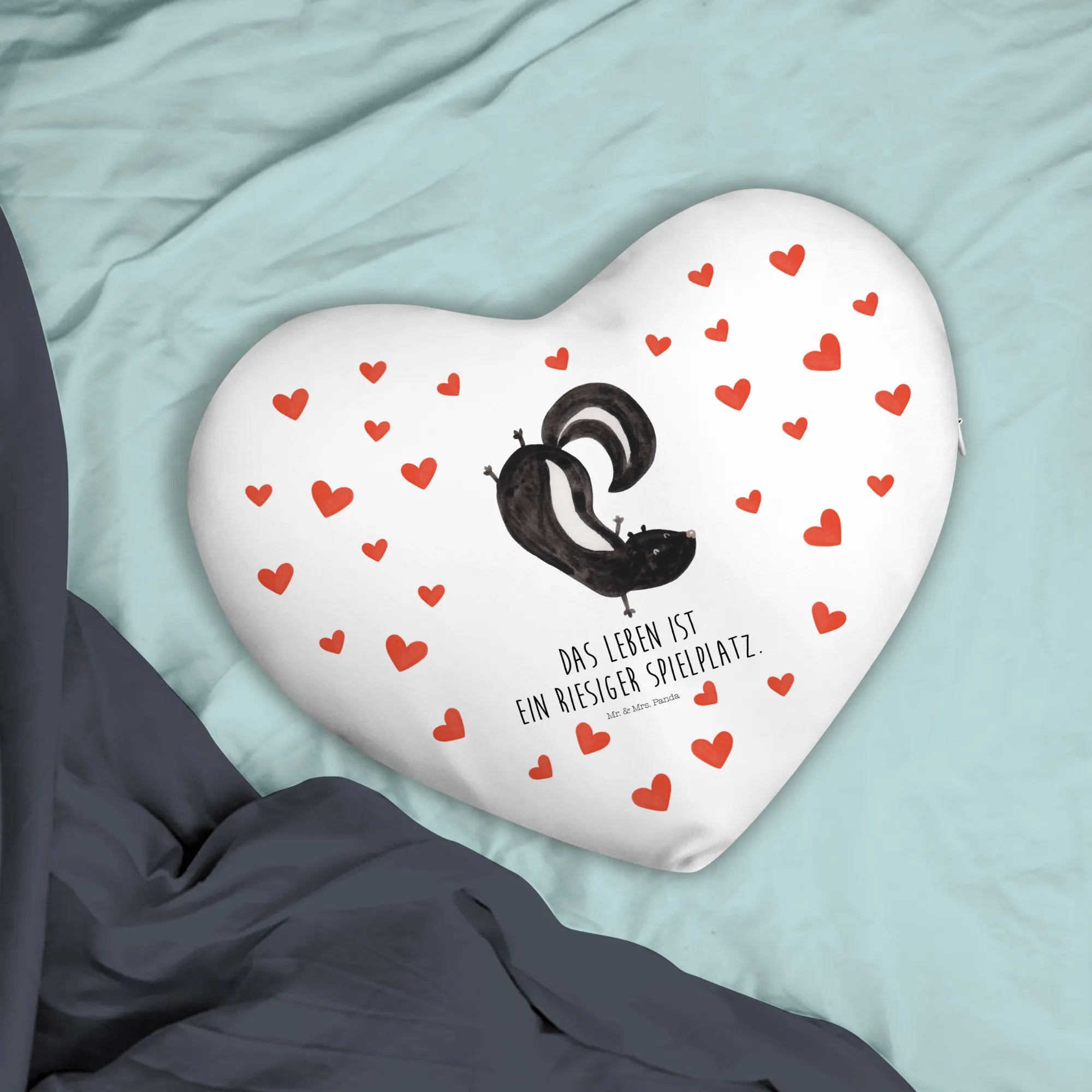 Introducing the charming Skunk Handstand Heart Cushion from the delightful Skunk Collection by Mr. & Mrs. Panda! This unique heart-shaped cushion is not just another home accessory; it’s a wonderful representation of love, joy, and a dash of playful spirit. Perfect for children who delight in whimsical creatures or for heartwarming gifts, this cushion brings a sense of fun to any space.