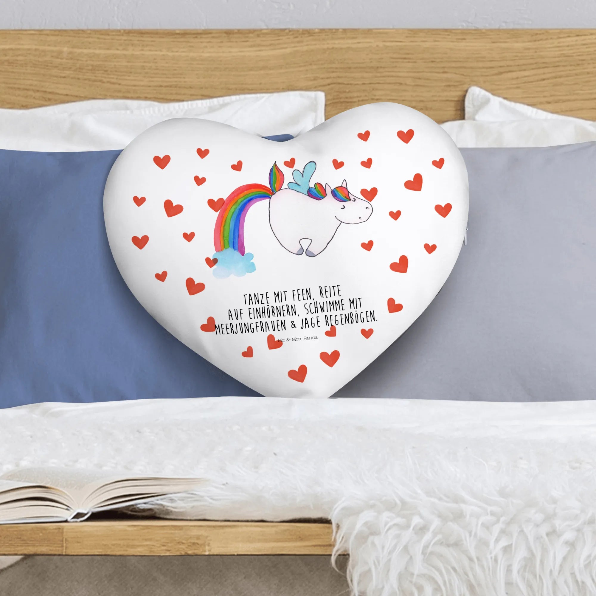 Perfect for any occasion, this heart cushion is an ideal gift for birthdays, holidays, or simply as a surprise for your little unicorn lover. Not only does it serve as a stunning decor piece, but it also sparks conversations and inspires creativity with the enchanting motif that says, 'Dance with fairies, ride unicorns, swim with mermaids & chase rainbows.' Its charm fits seamlessly into nurseries, playrooms, or any magical corner of a child's space.