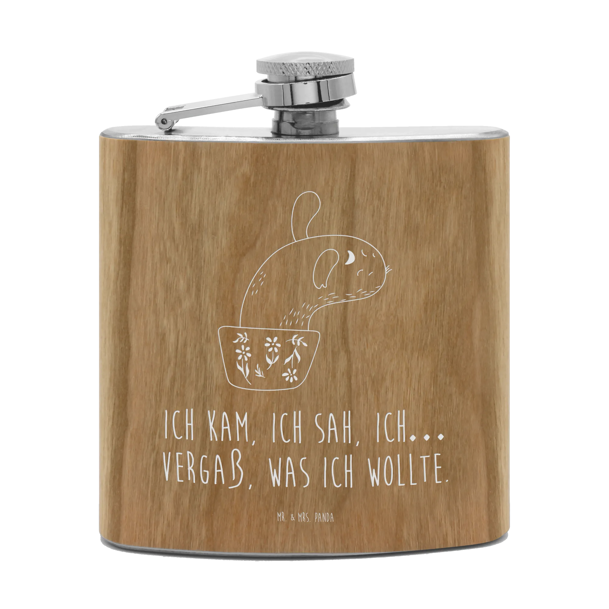 Say hello to your new favorite Mr. & Mrs. Panda Hipflask! Made from premium stainless steel and wrapped in a stylish wood laminate, this flask is designed for both elegance and practicality. With a capacity of 150 ml (5 oz) and measuring 109 mm (4 inch) high, 93 mm (4 inch) wide, and 22 mm (1 inch) deep, it's perfect for any outing. Adorned with charming engravings that feature witty phrases and cute designs, this hipflask will surely brighten your day! Great for bachelor and bachelorette parties or hikes, this lightweight flask is easy to hold and comes with a secure screw cap to ensure no spills. For a quick clean-up, simply rinse with hot water since it’s not dishwasher safe. Embrace your adventurous side with the Mr. & Mrs. Panda Hipflask and take your favorite drinks anywhere!