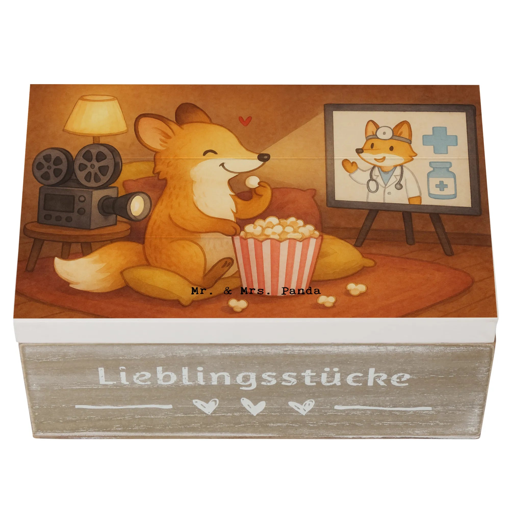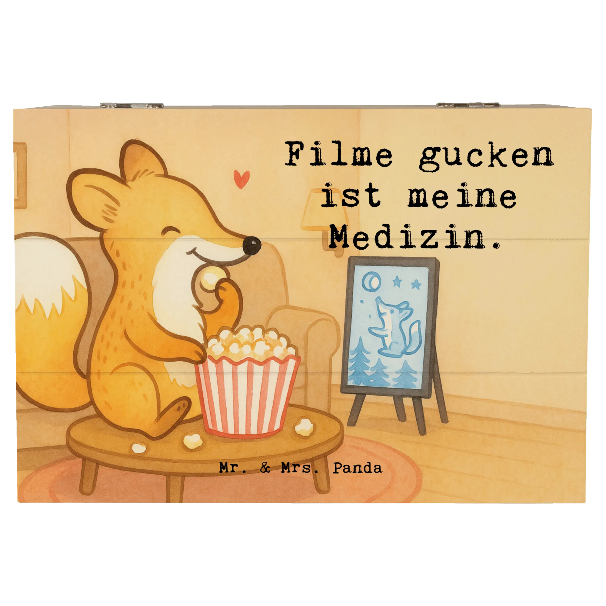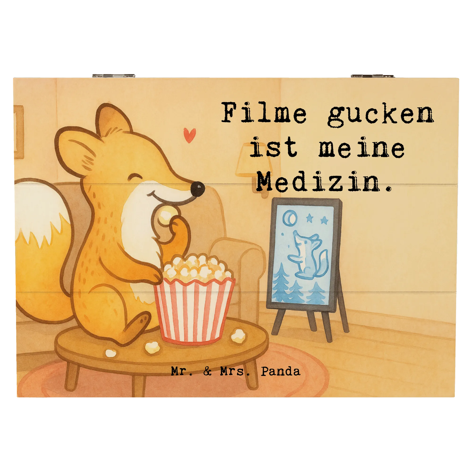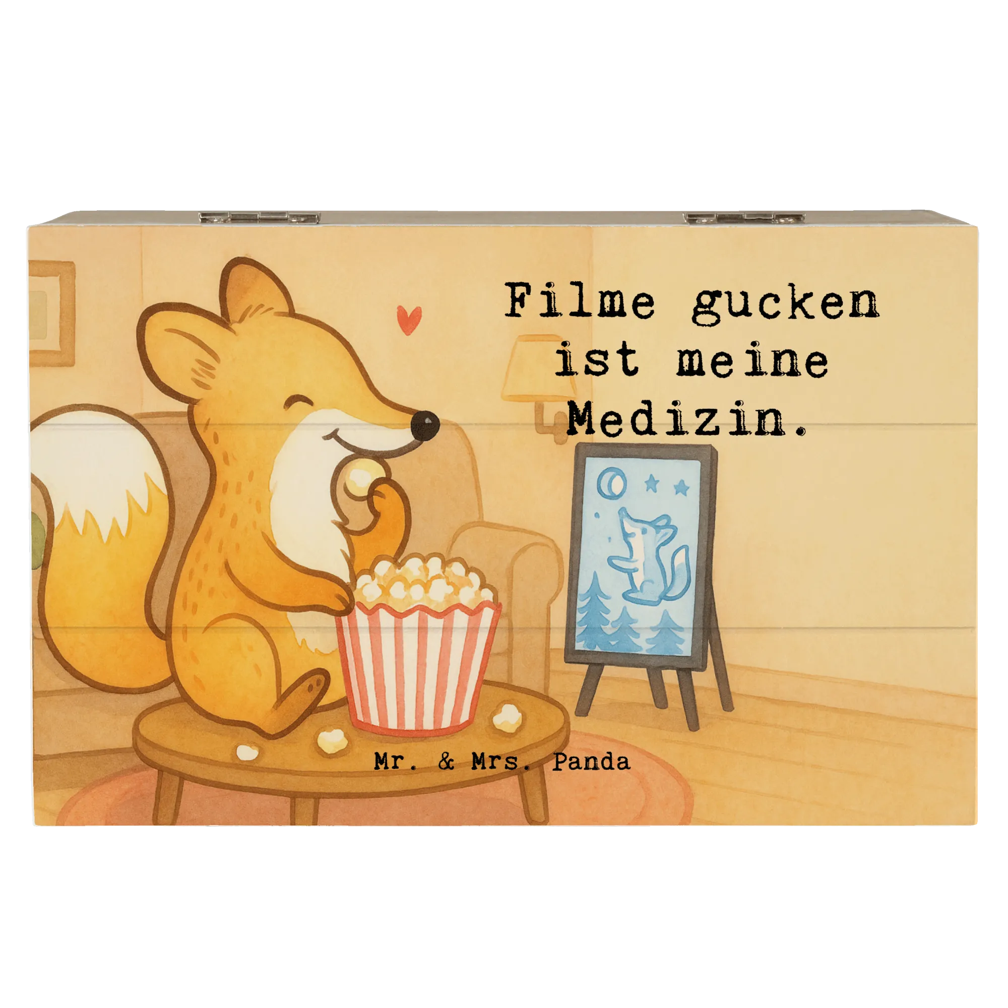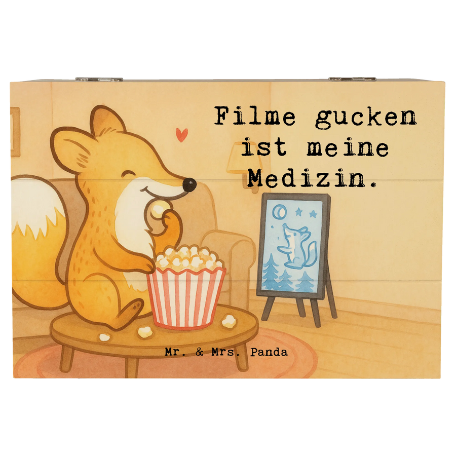 Holzkiste Fuchs Filme gucken Design - 22 x 15 cm - mit Spruch