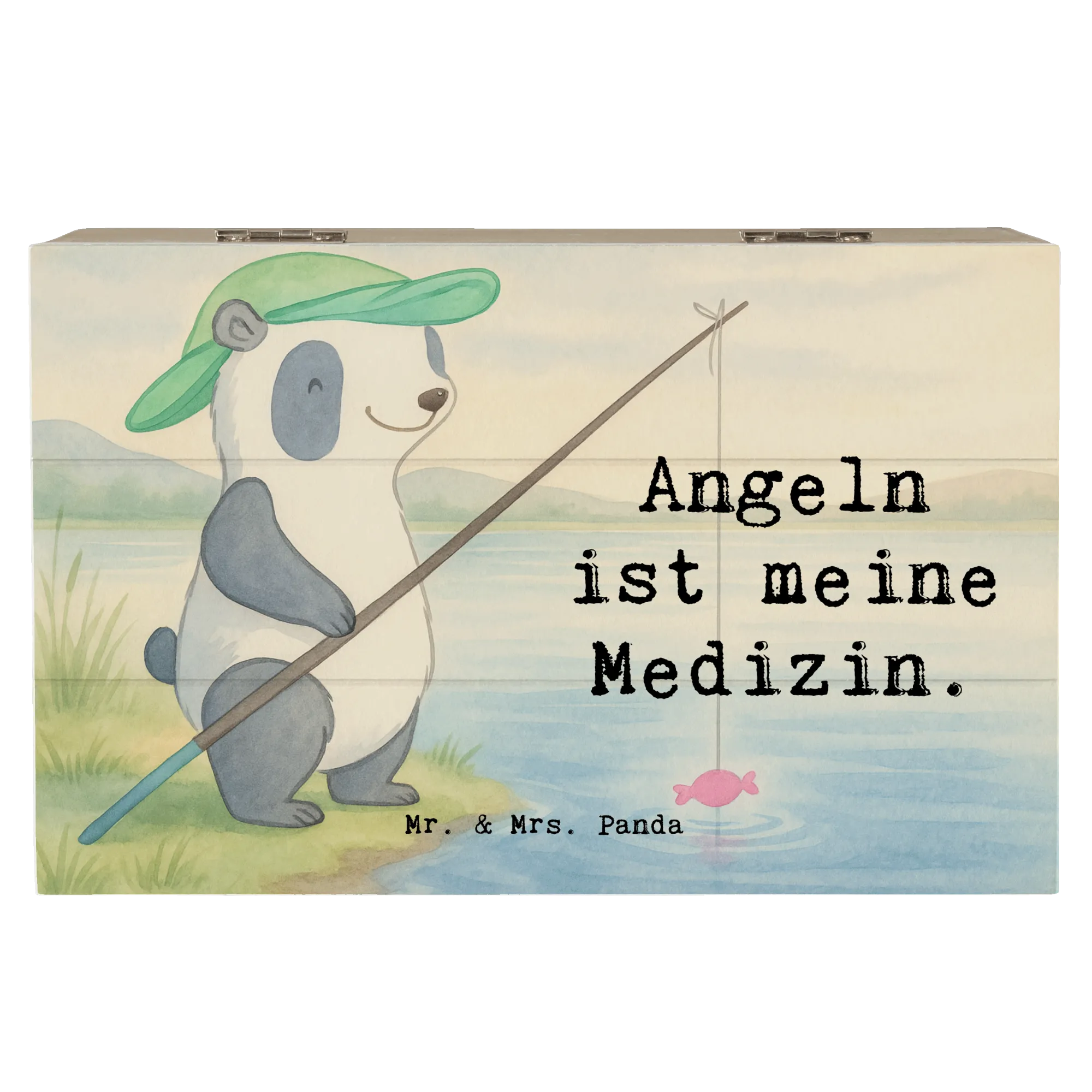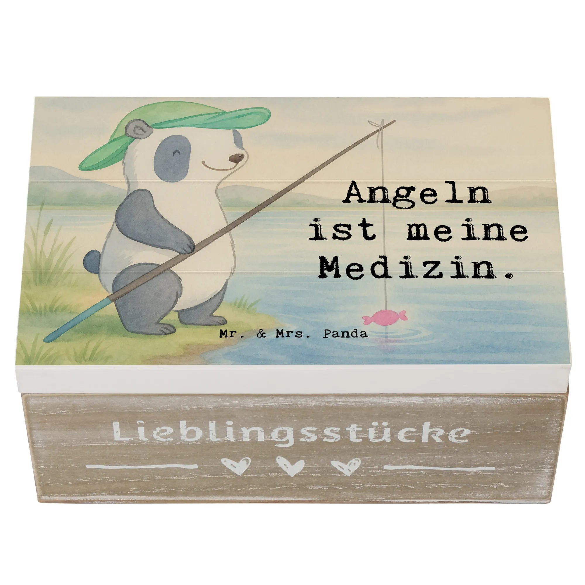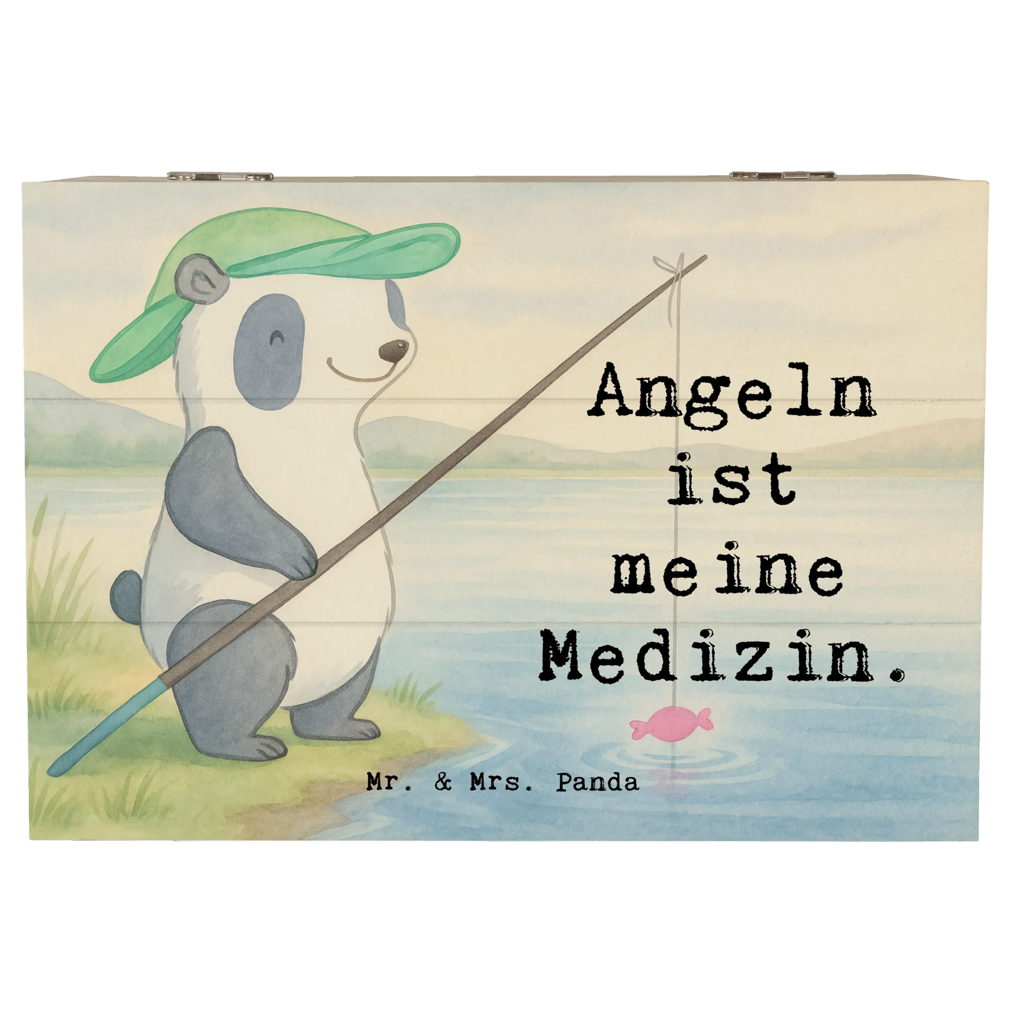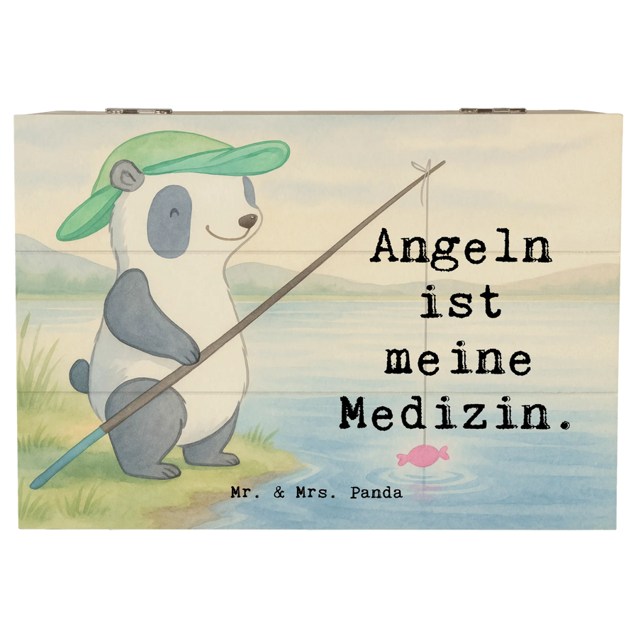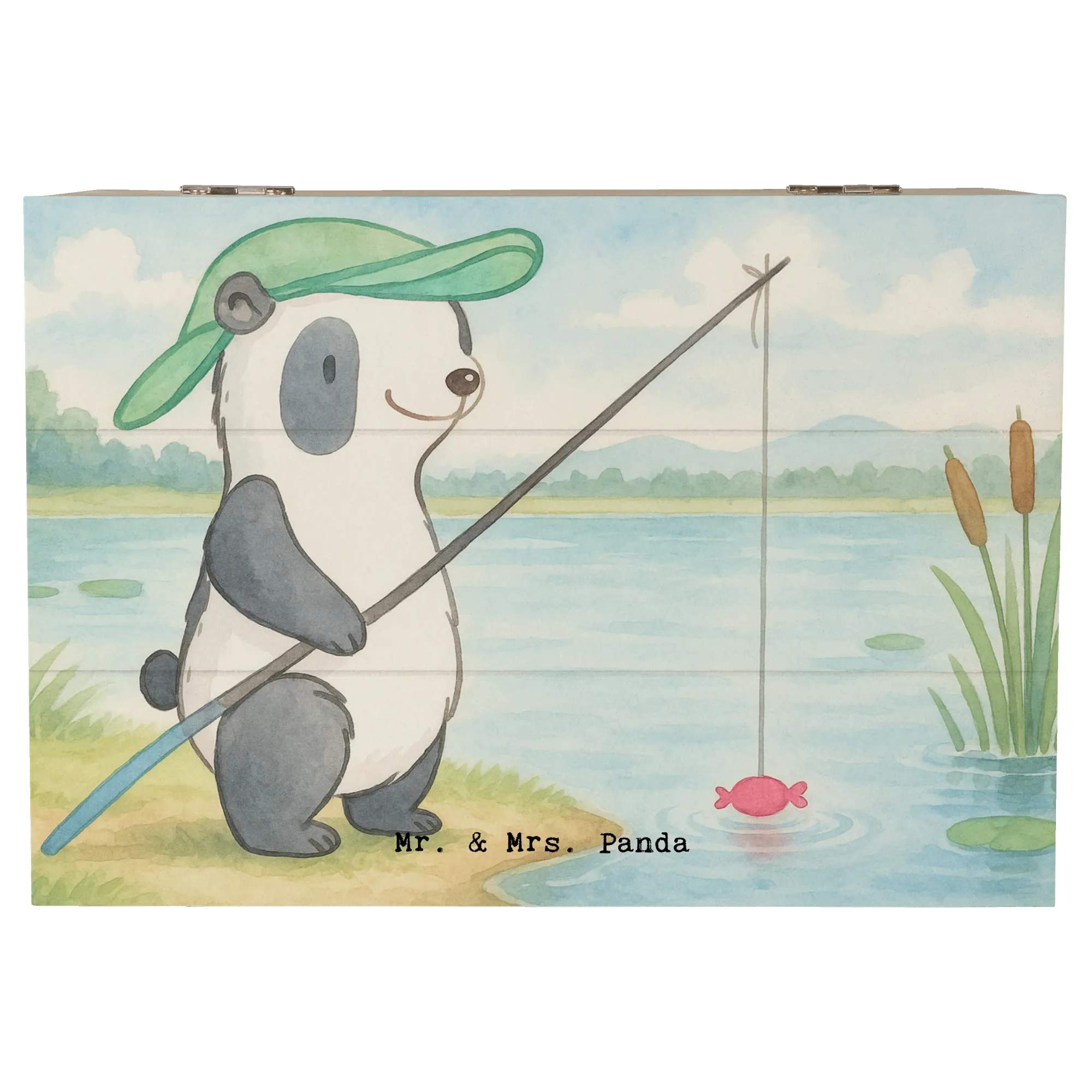 Holzkiste Panda Angeln Design - 22 x 15 cm - mit Spruch